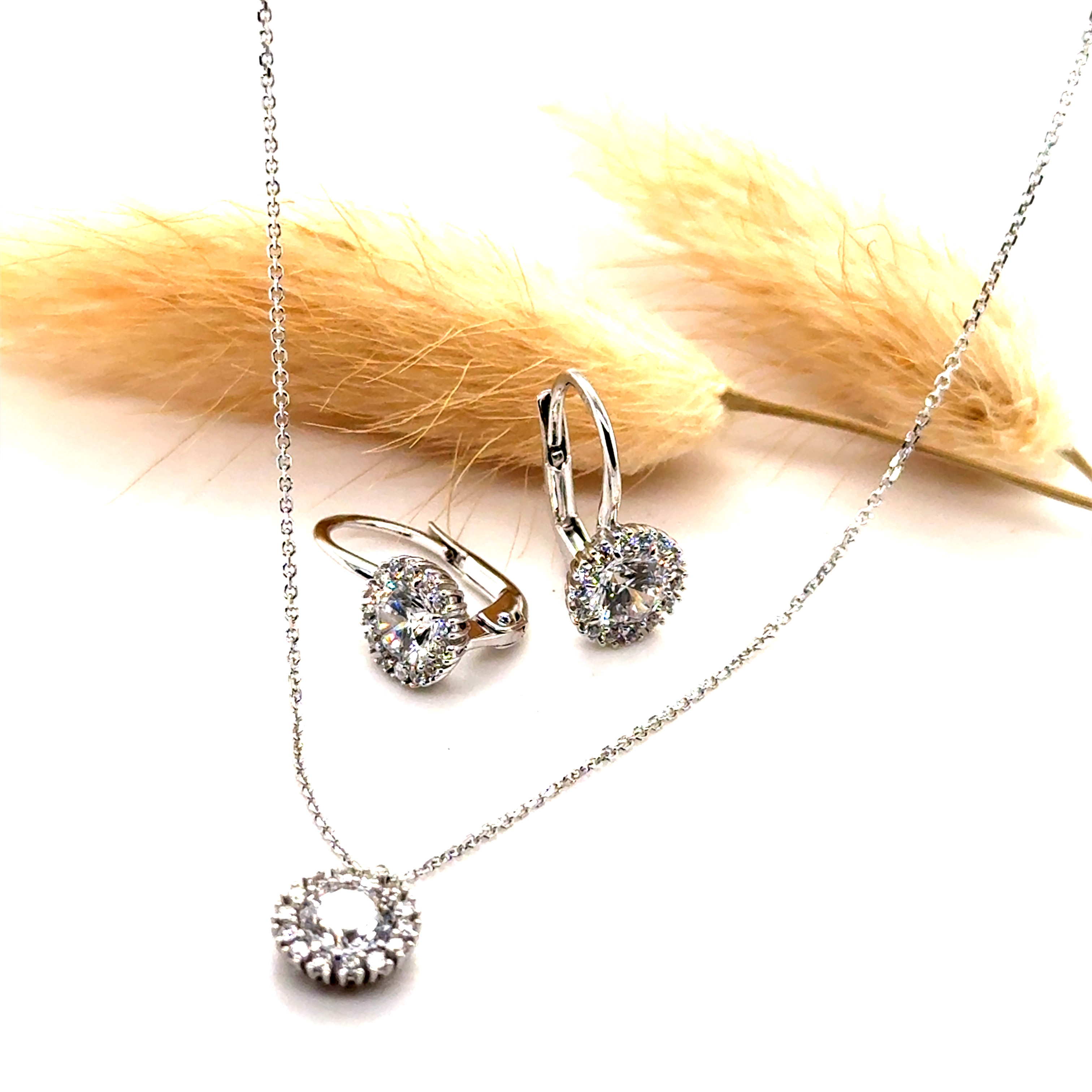 Комплект от “Jacklin hugasian” в бяло злато с циркони
