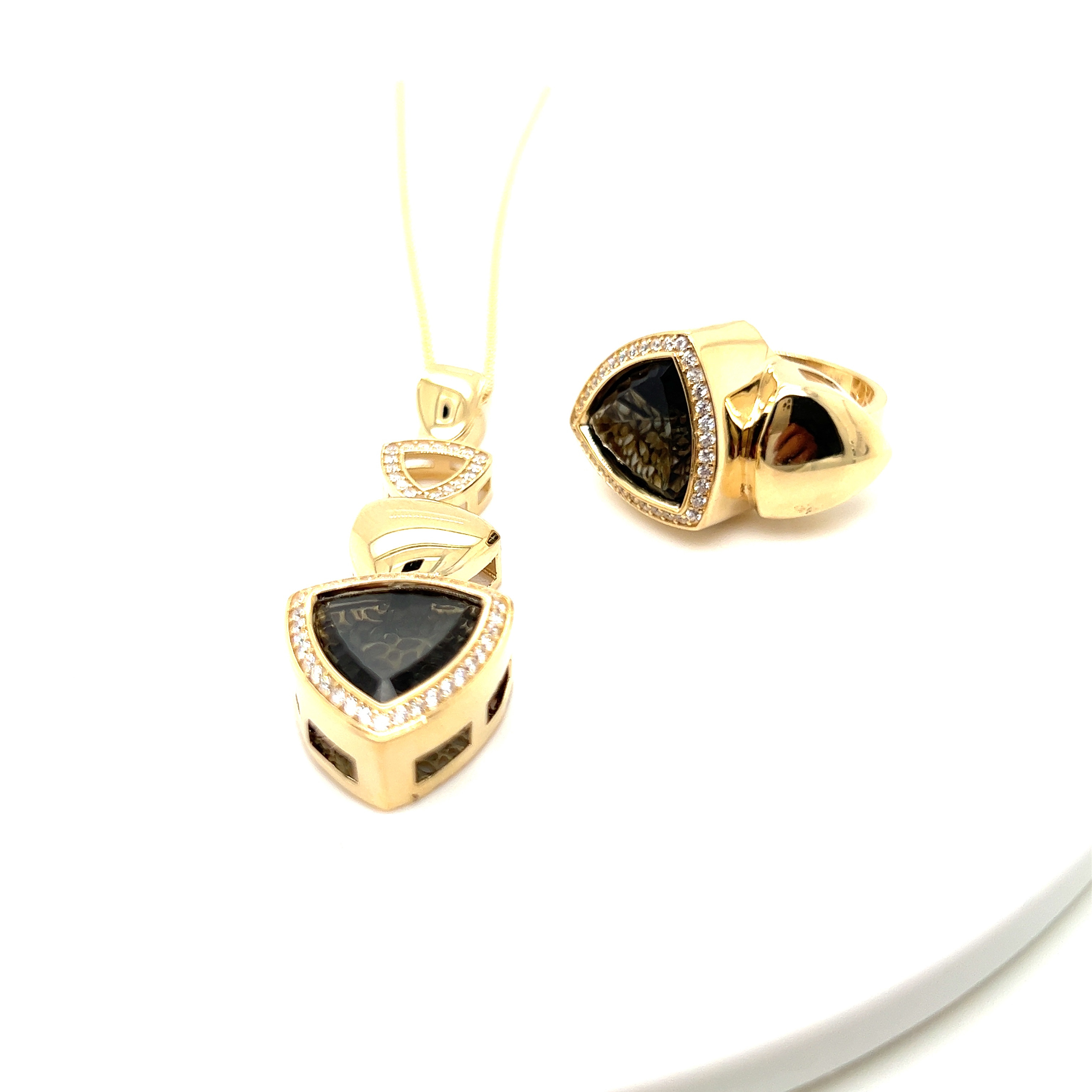 Комплект пръстен и медальон от “ Jacklin hugasian “ в жълто злато с топаз и цирконии.