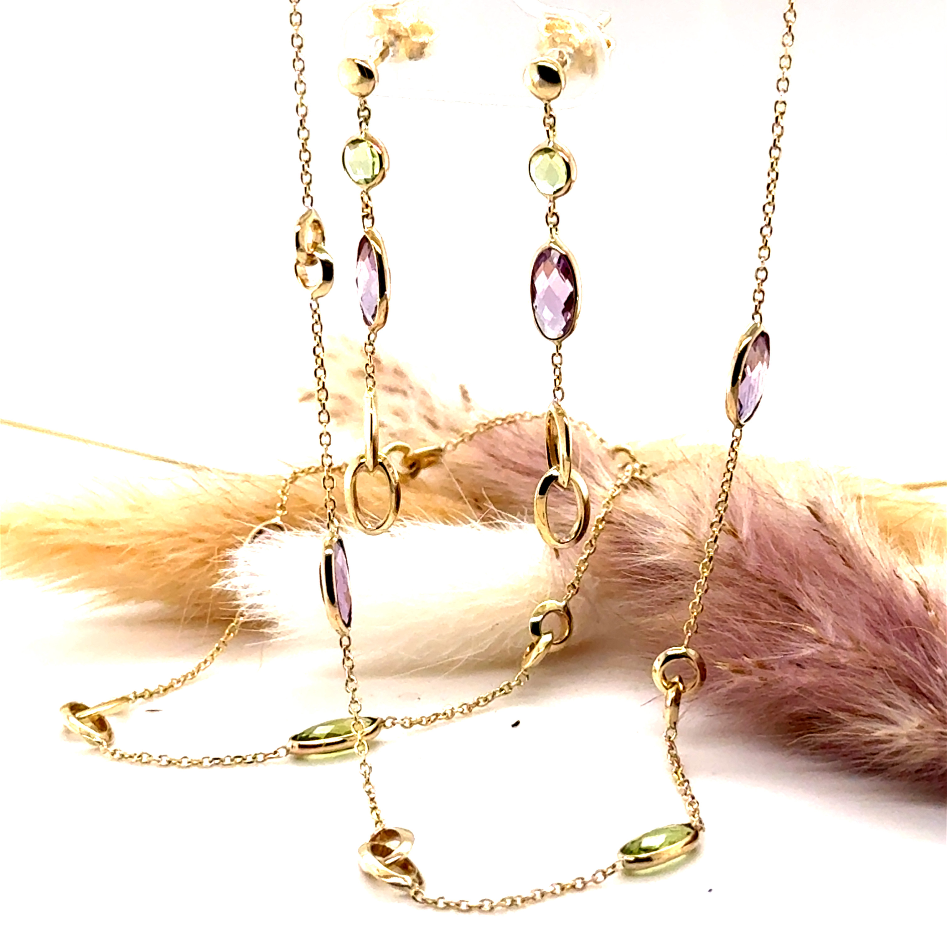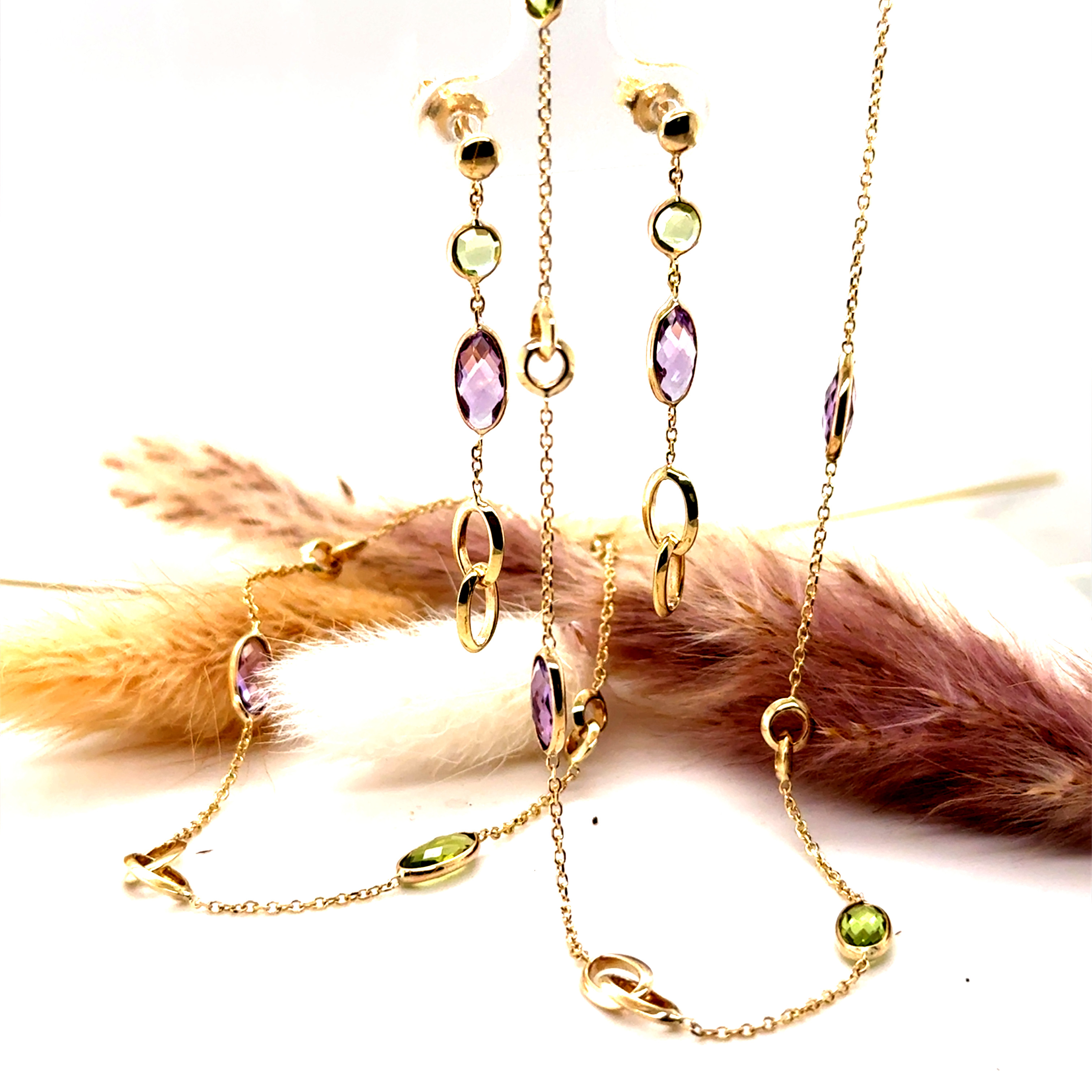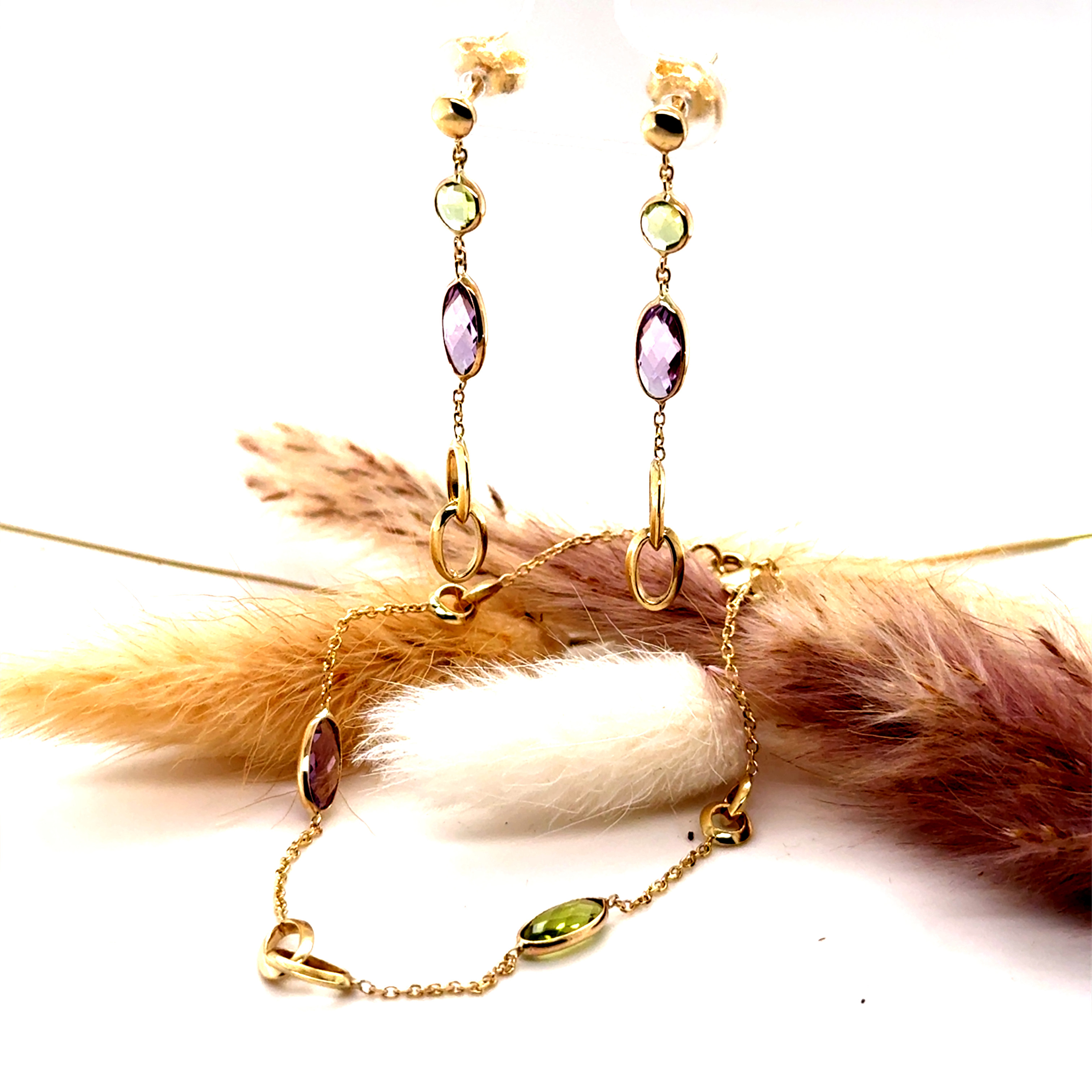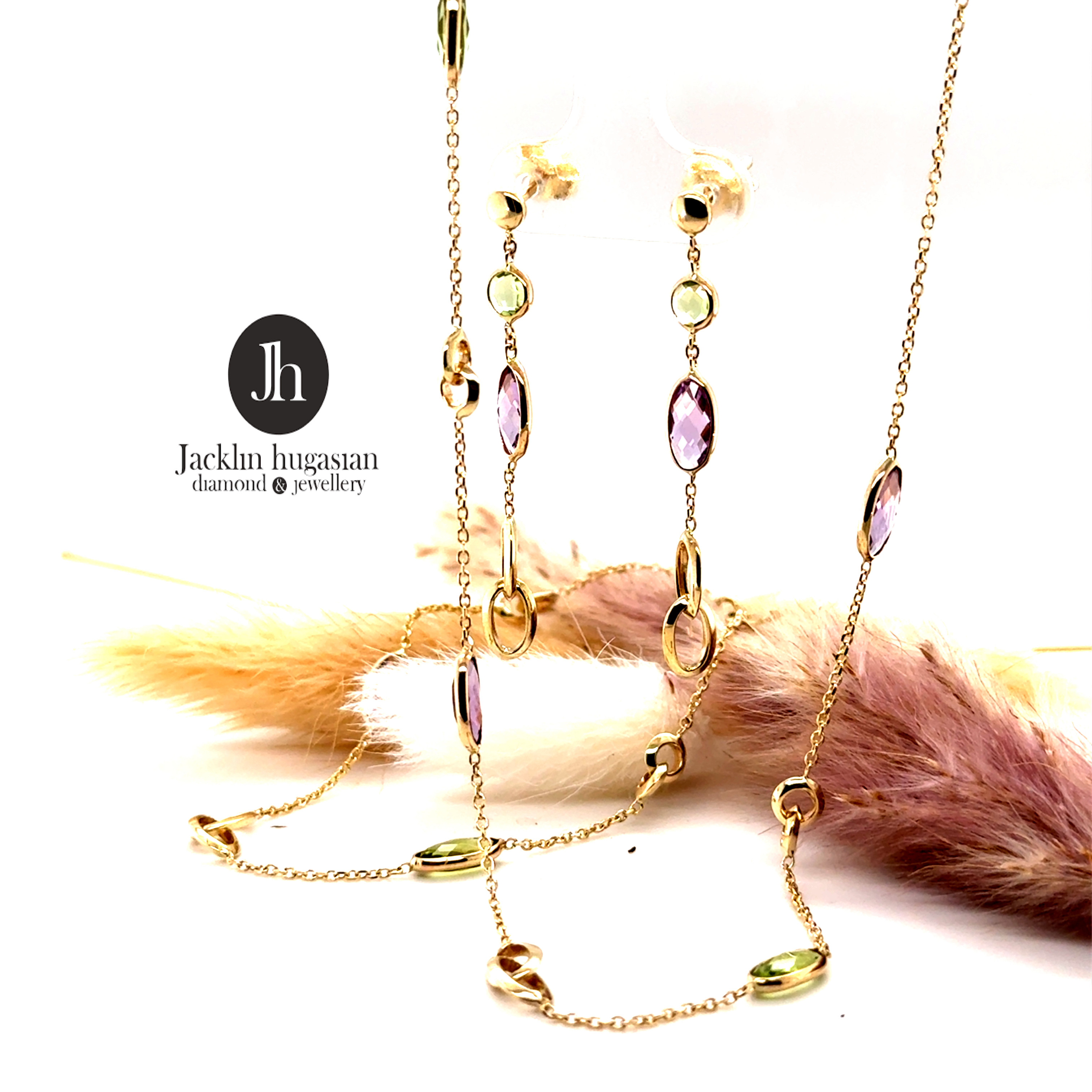 Комплект от “Jacklin hugasian” вжълто злато с перидот и аметист