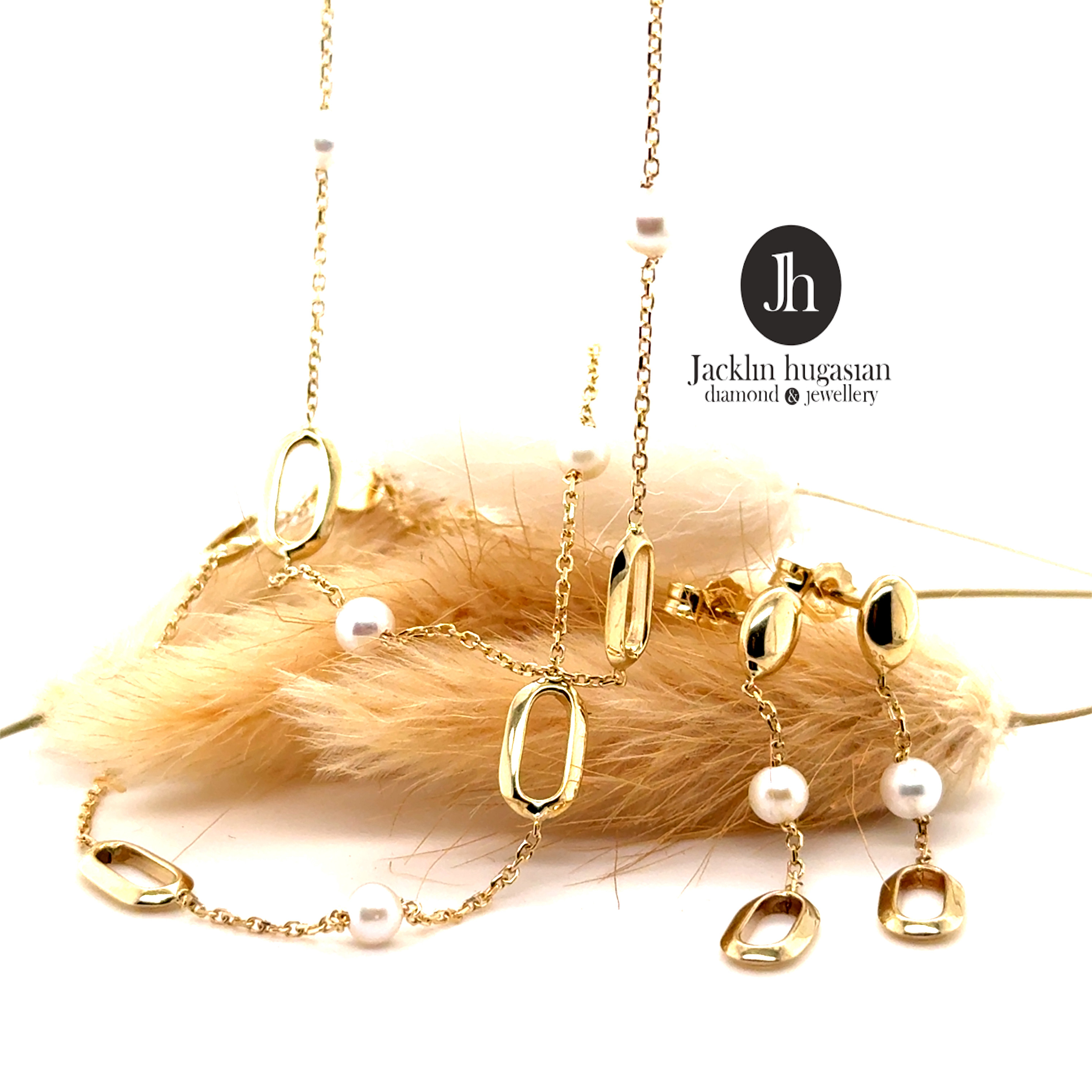 Комплект от “Jacklin hugasian” вжълто злато с естествени перли