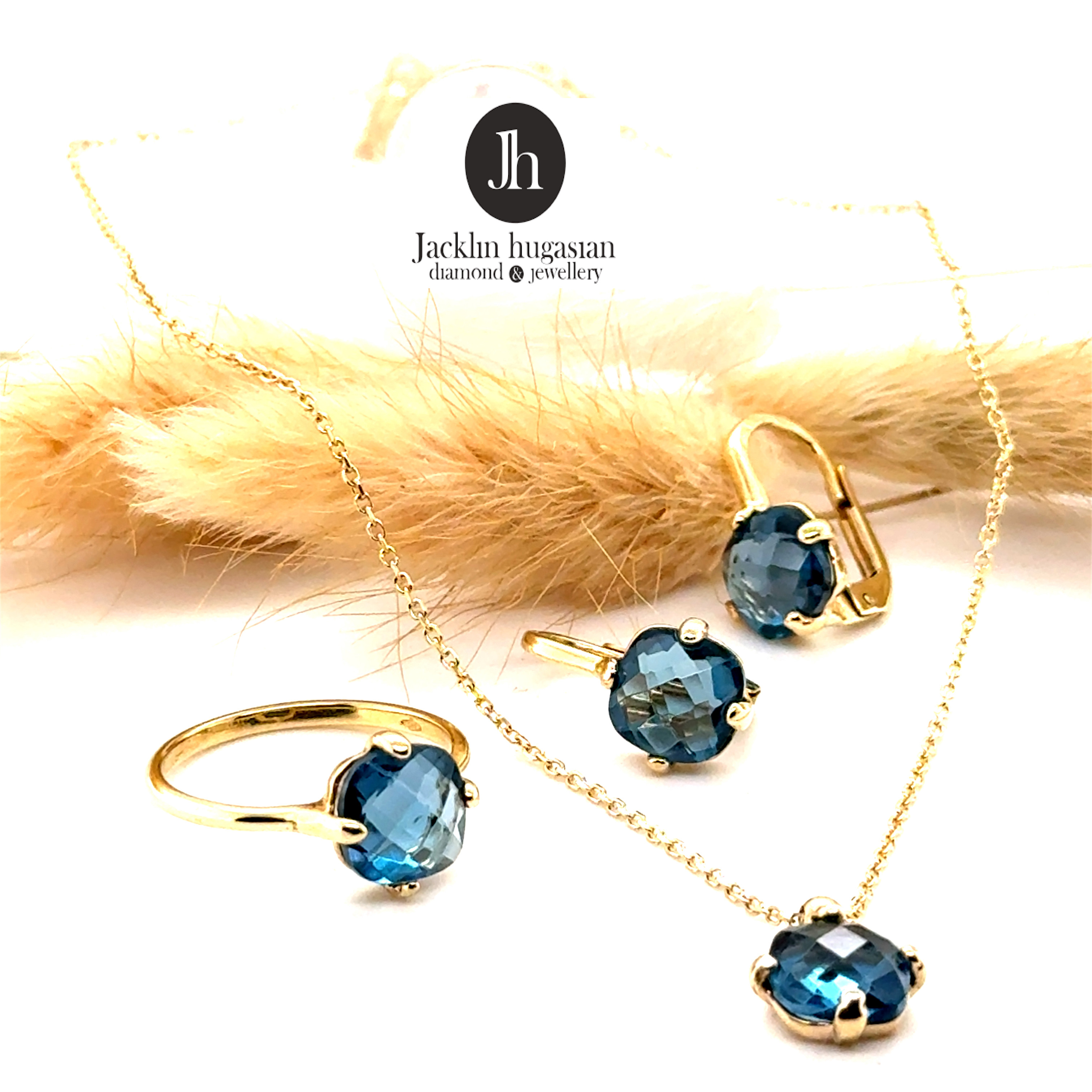 Комплект от “Jacklin hugasian” в жълто злато с лондон топаз