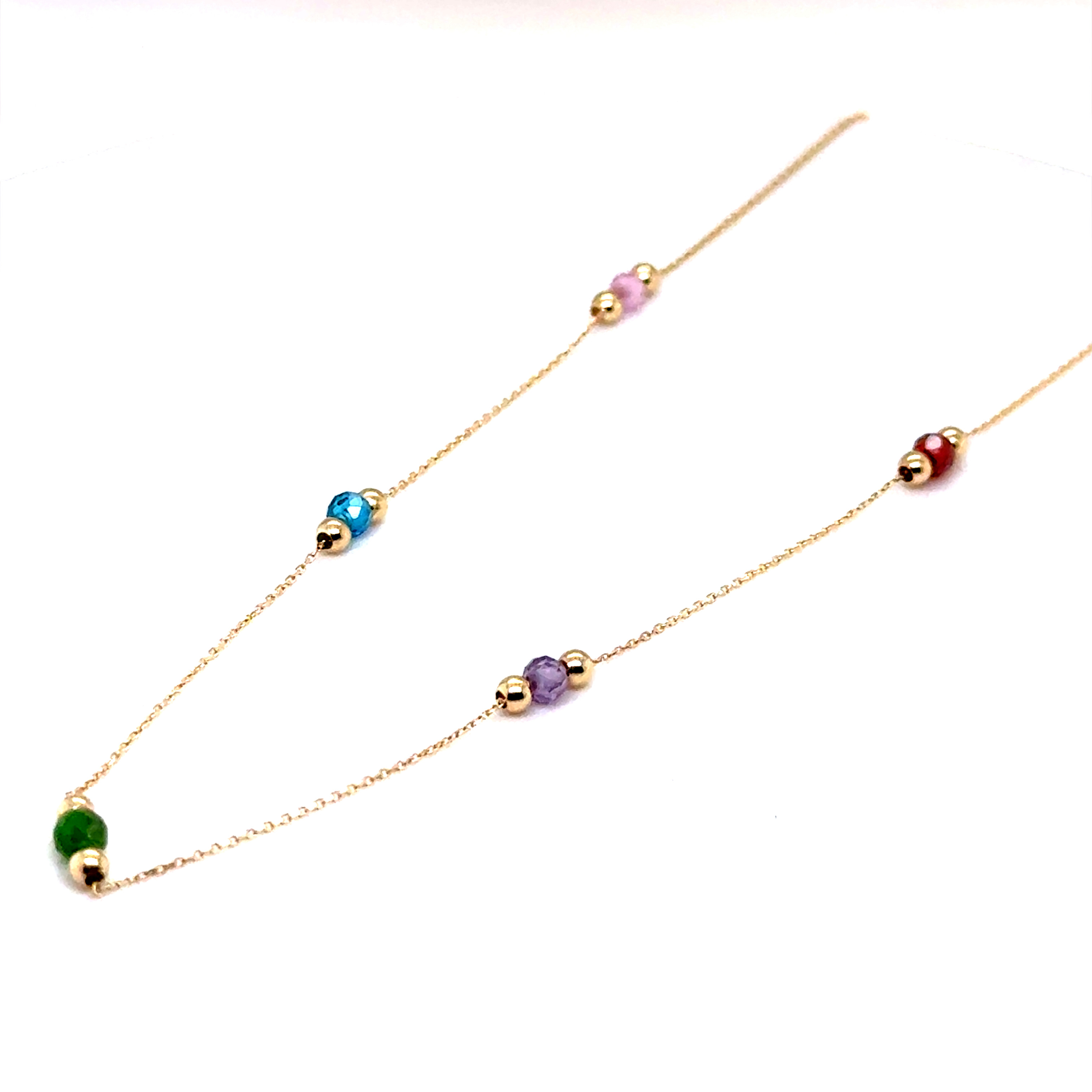 Колие от “Jacklin hugasian” в жълто злато с гранат,аметист,изумруд,топаз и розов кварц.