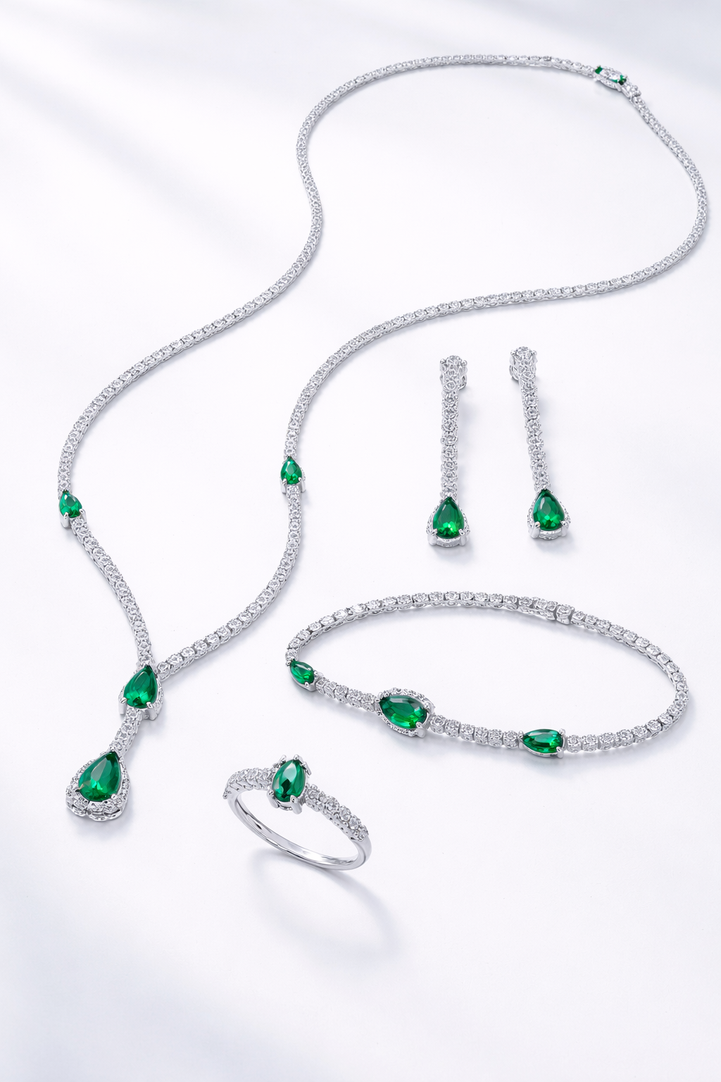 Комплект колие, обеци , пръстен и гривна от “Jacklin hugasian” в сребро с циркони.