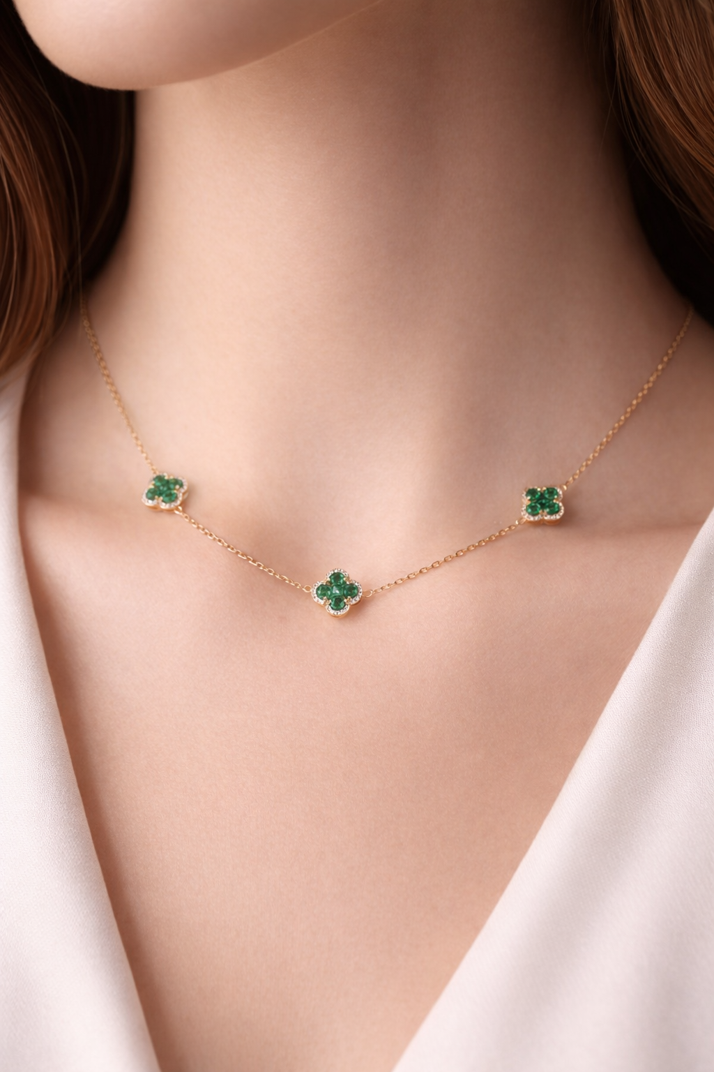 Колие от “Jacklin hugasian” в жълто злато с диаманти и изумруди.