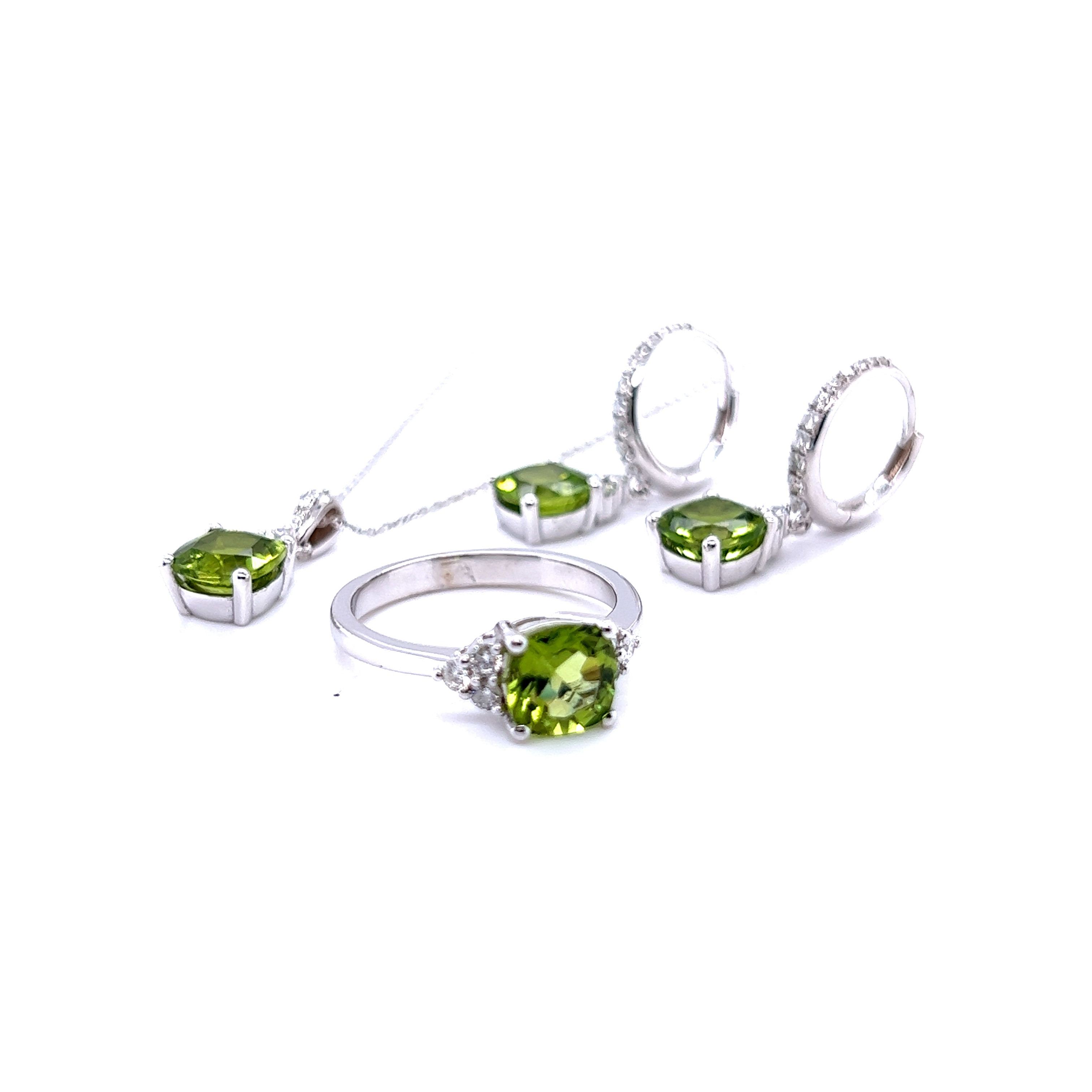 Комплект от “Jacklin hugasian” в бяло злато с диаманти и перидот.