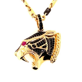 Висулка от " Jacklin hugasian " в жълто и оксидирано злато, с рубин и оникс