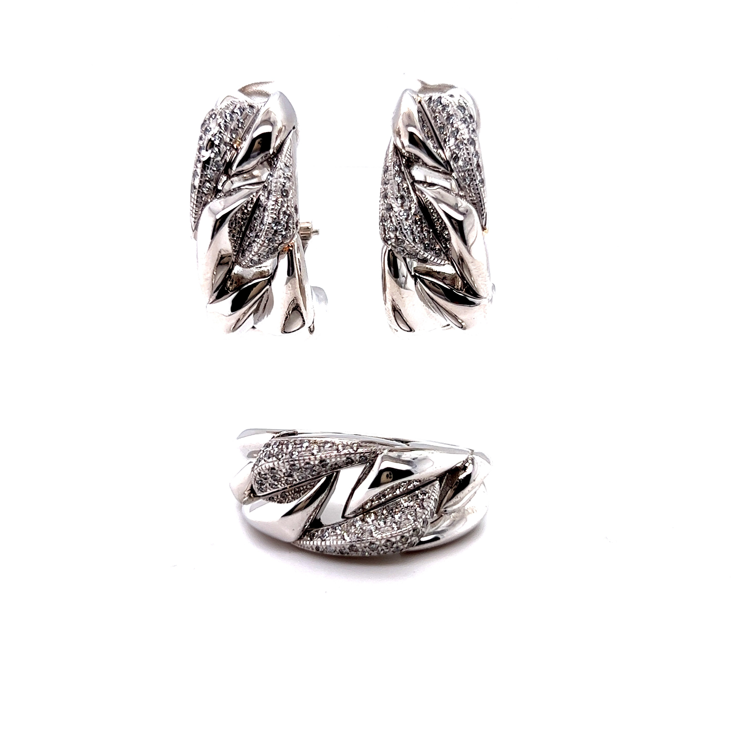 Комплект пръстен и обеци от “Jacklin hugasian” в бяло злато с циркони.