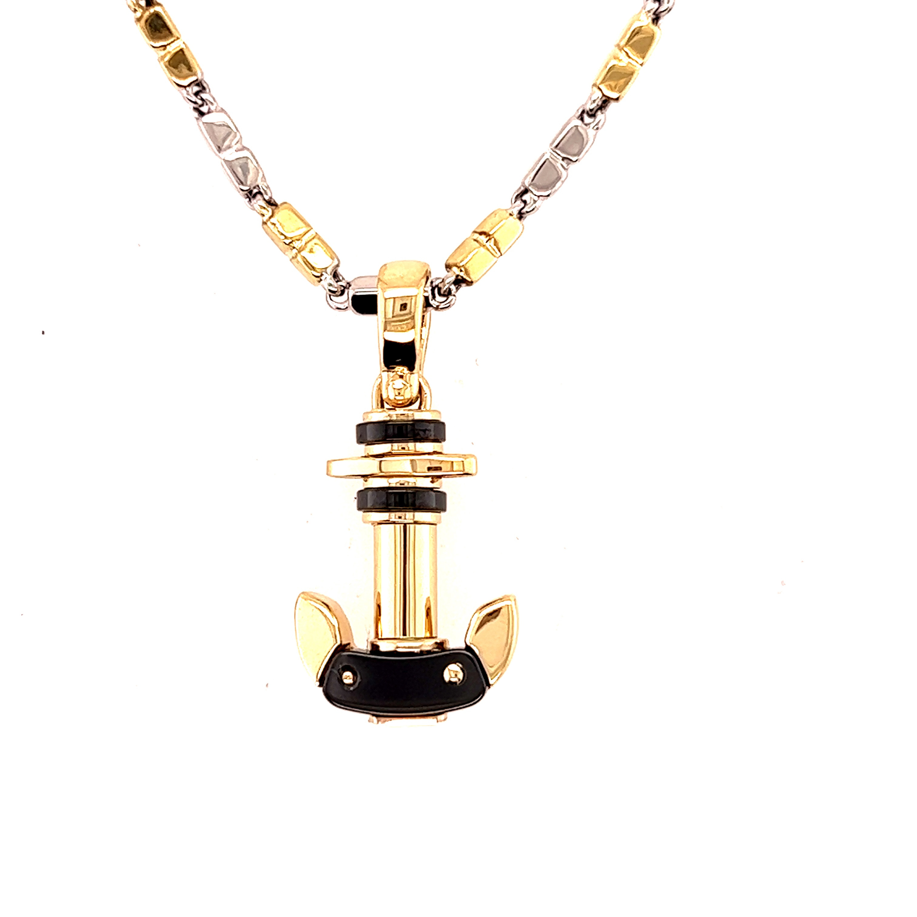 Медальон от " Jacklin hugasian " в жълто и бяло злато с оникс.