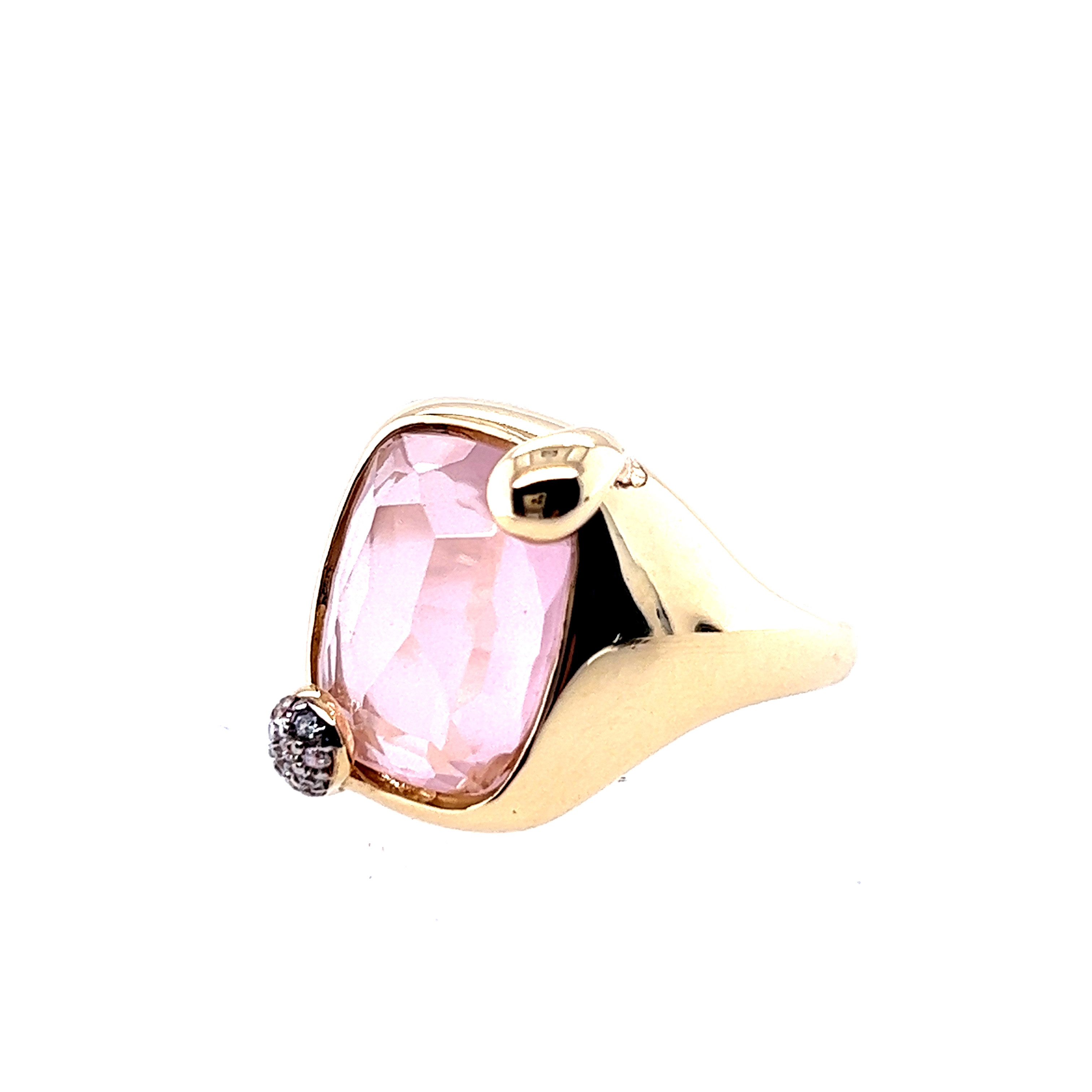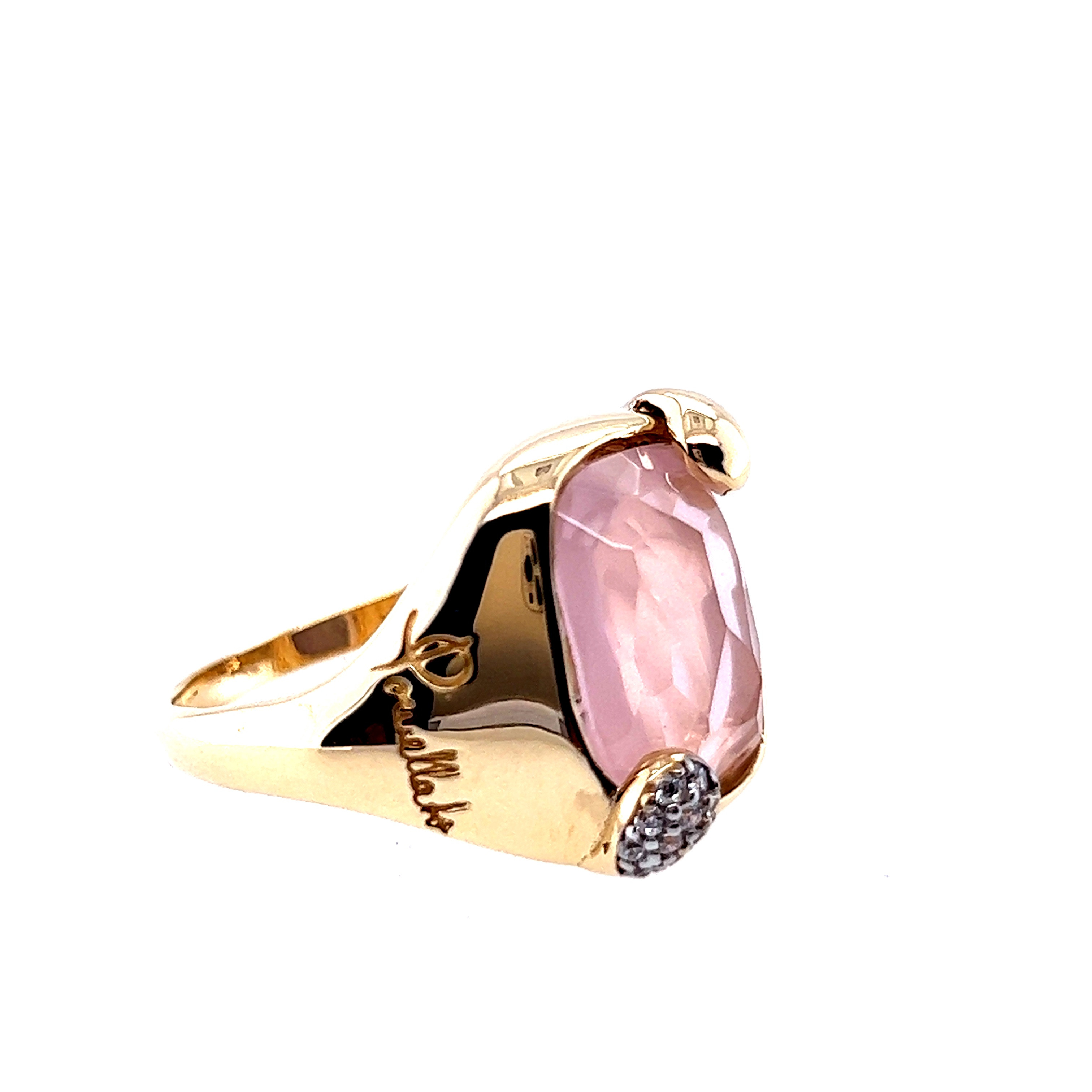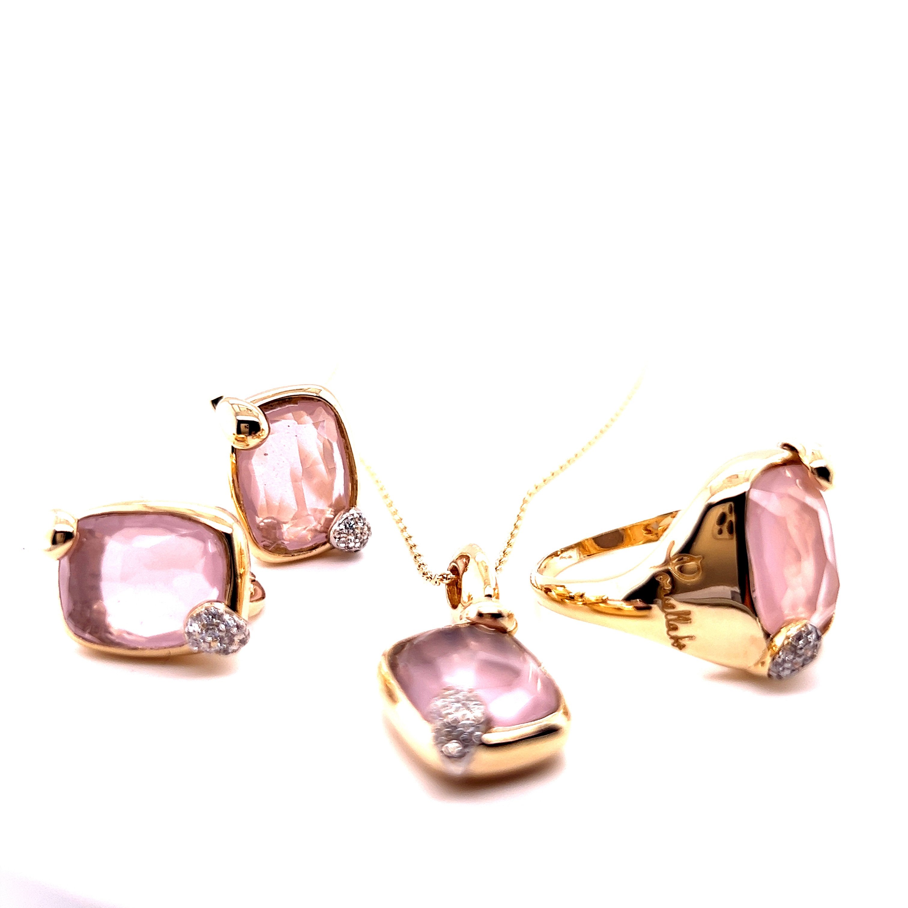 Комплект от “Jacklin hugasian” в жълто злато с розов кварц и циркони.