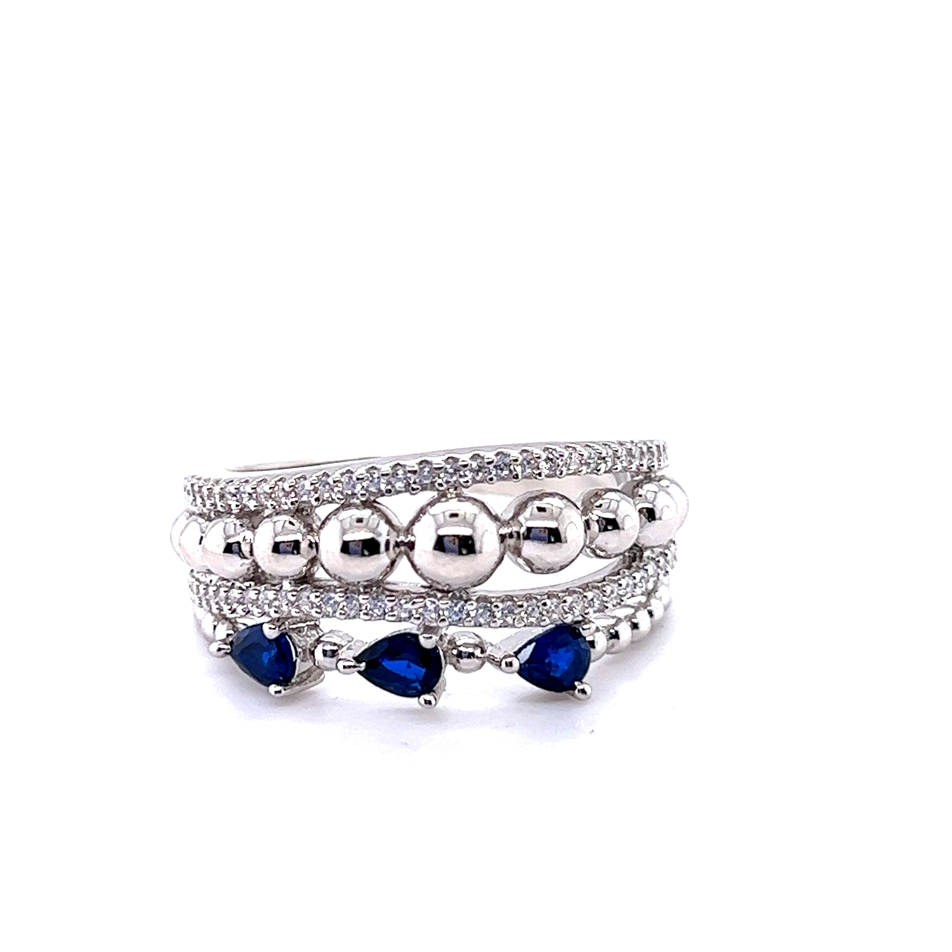 Пръстен от “Jacklin hugasian” в сребро със сапфир и циркони.