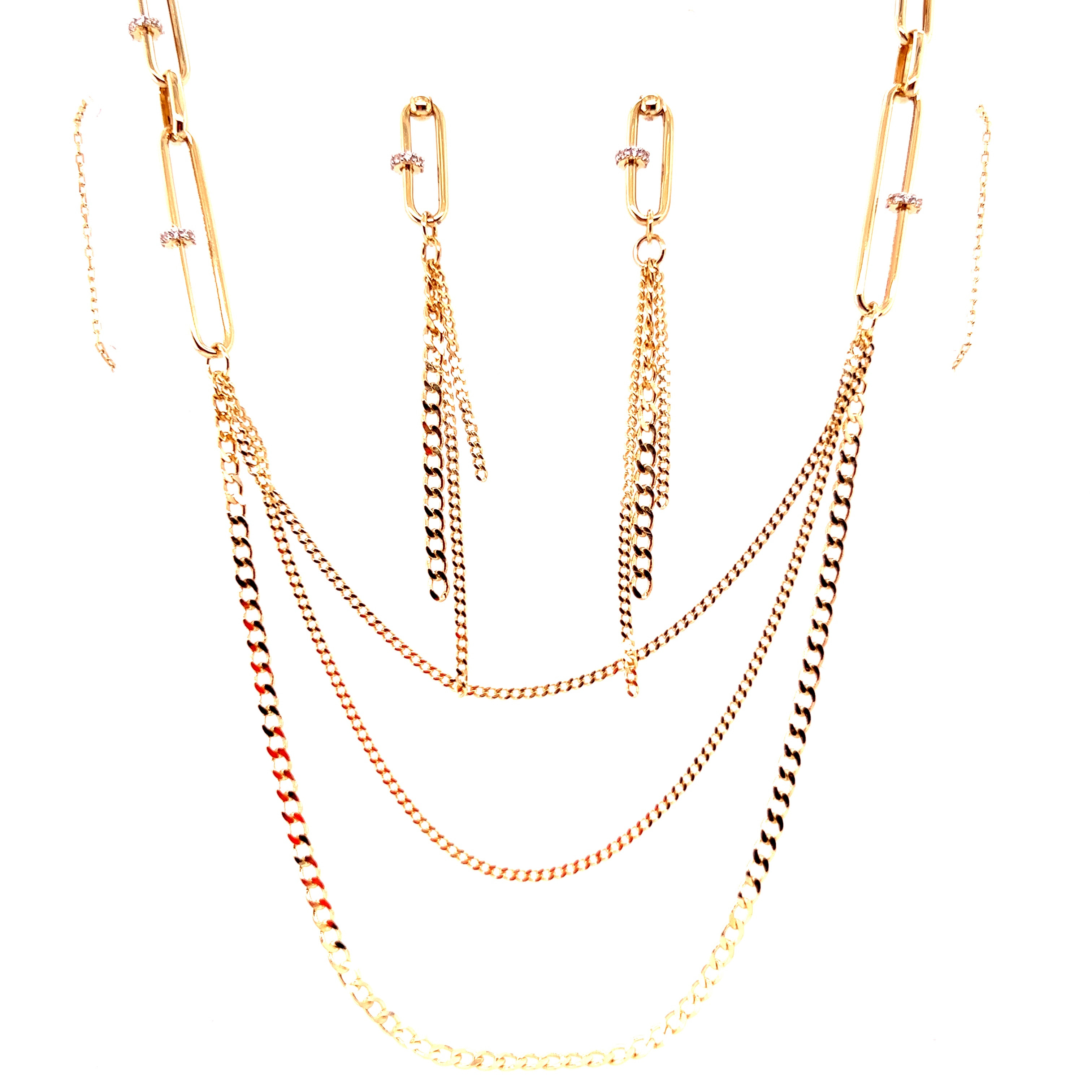 Колие от “Jacklin hugasian” в жълто злато гланц с циркони.