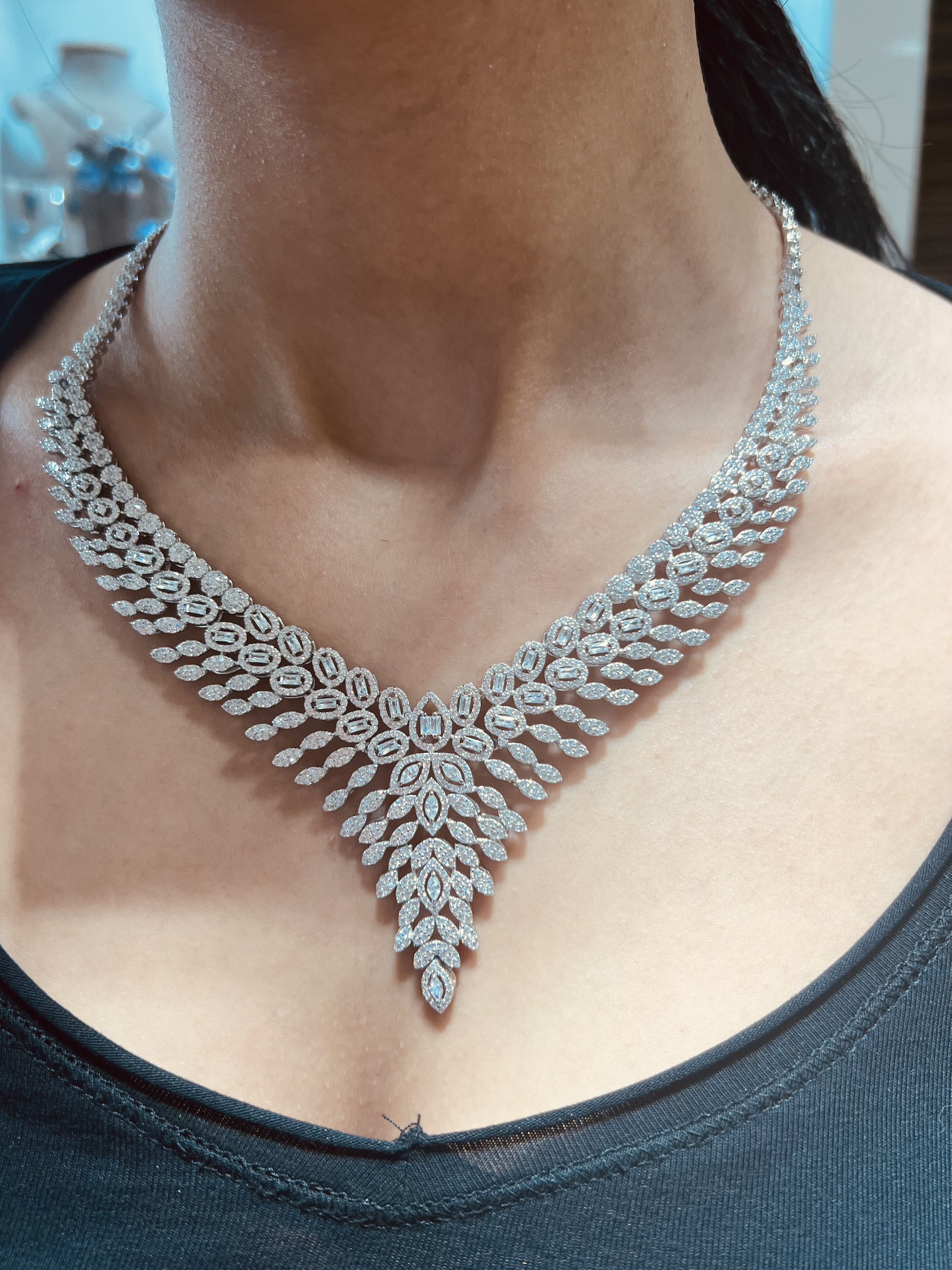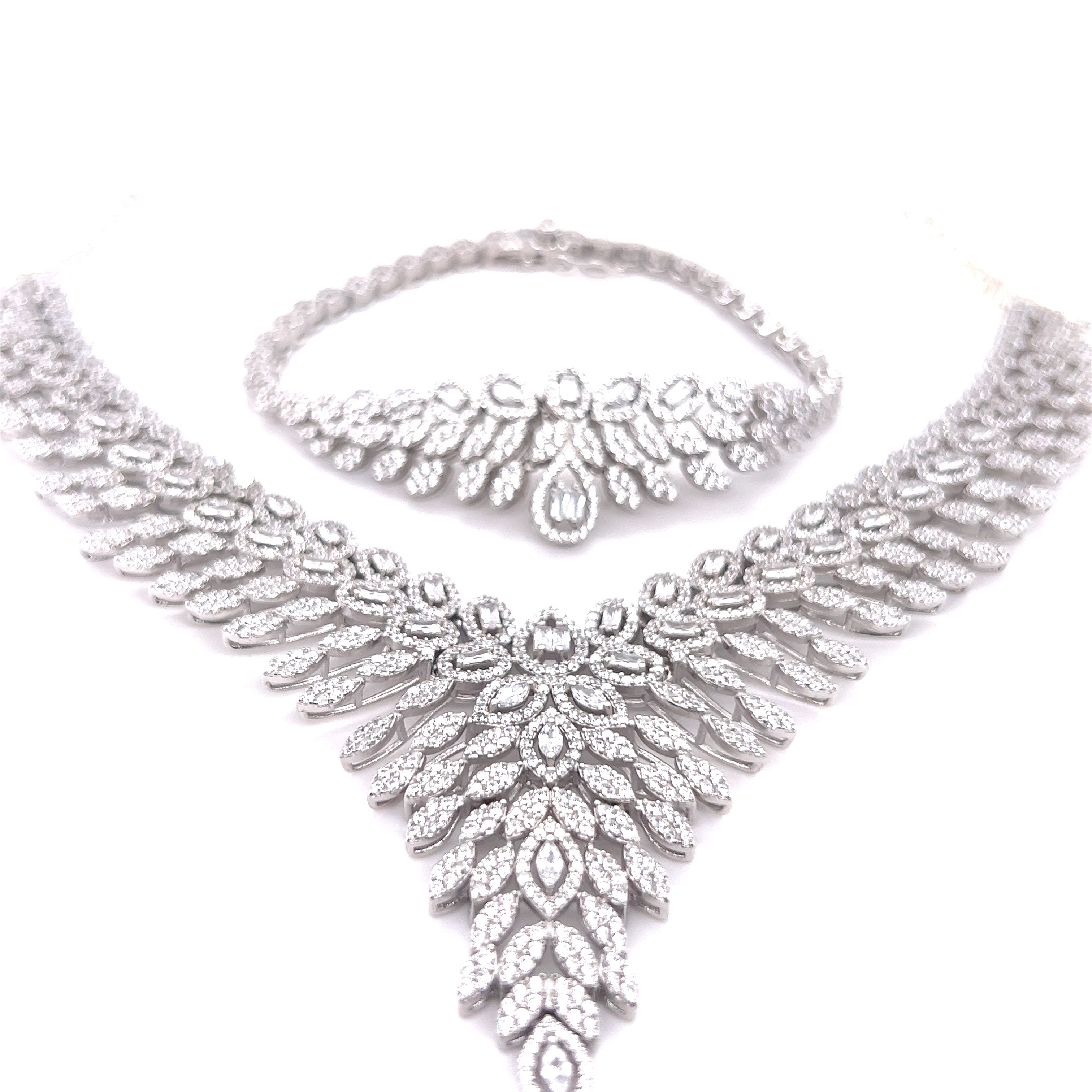 Комплект колие, обеци , пръстен и гривна от “Jacklin hugasian” в сребро със цирконии.