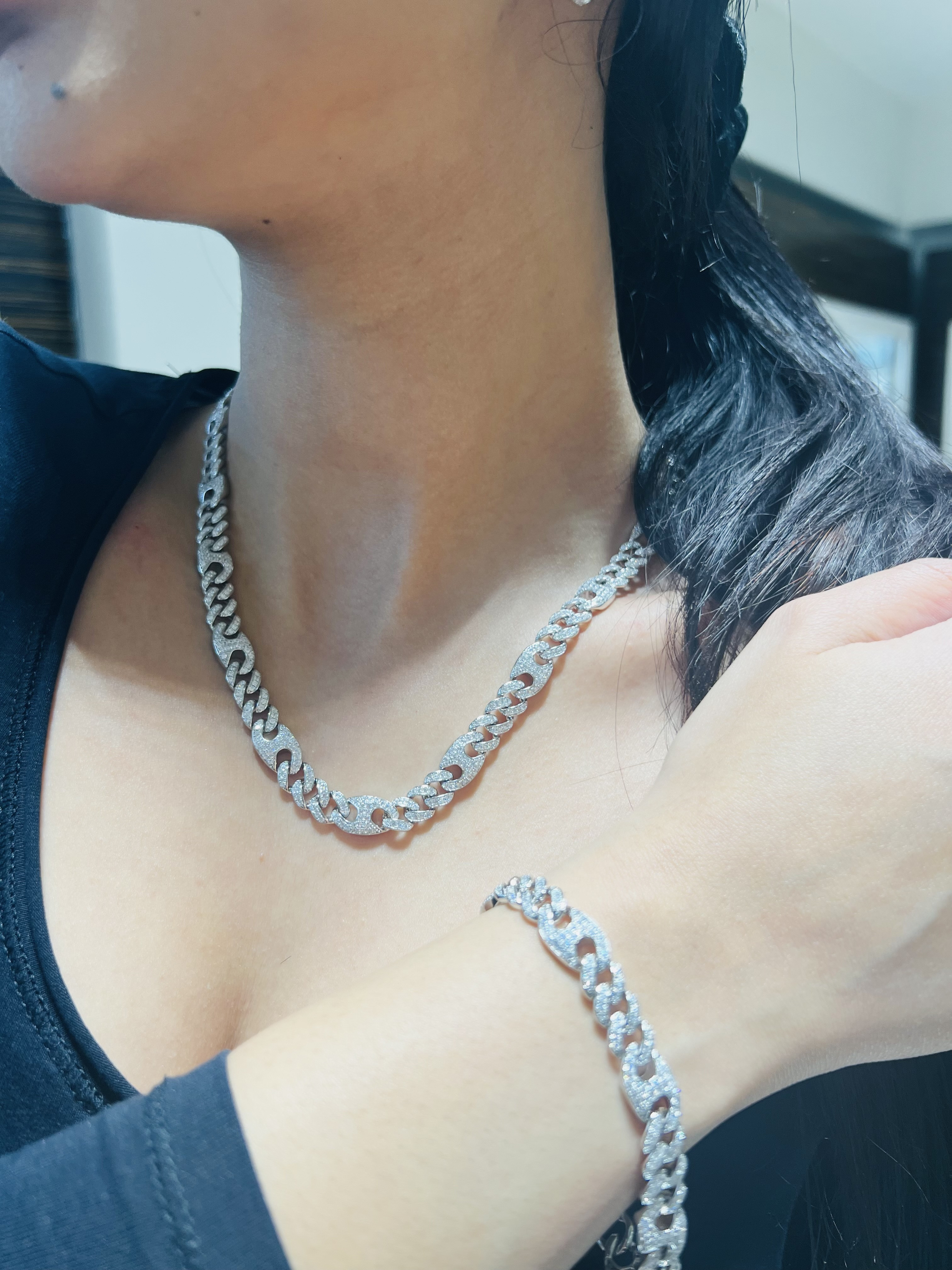 Комплект колие, обеци и гривна от “Jacklin hugasian” в сребро със цирконии.