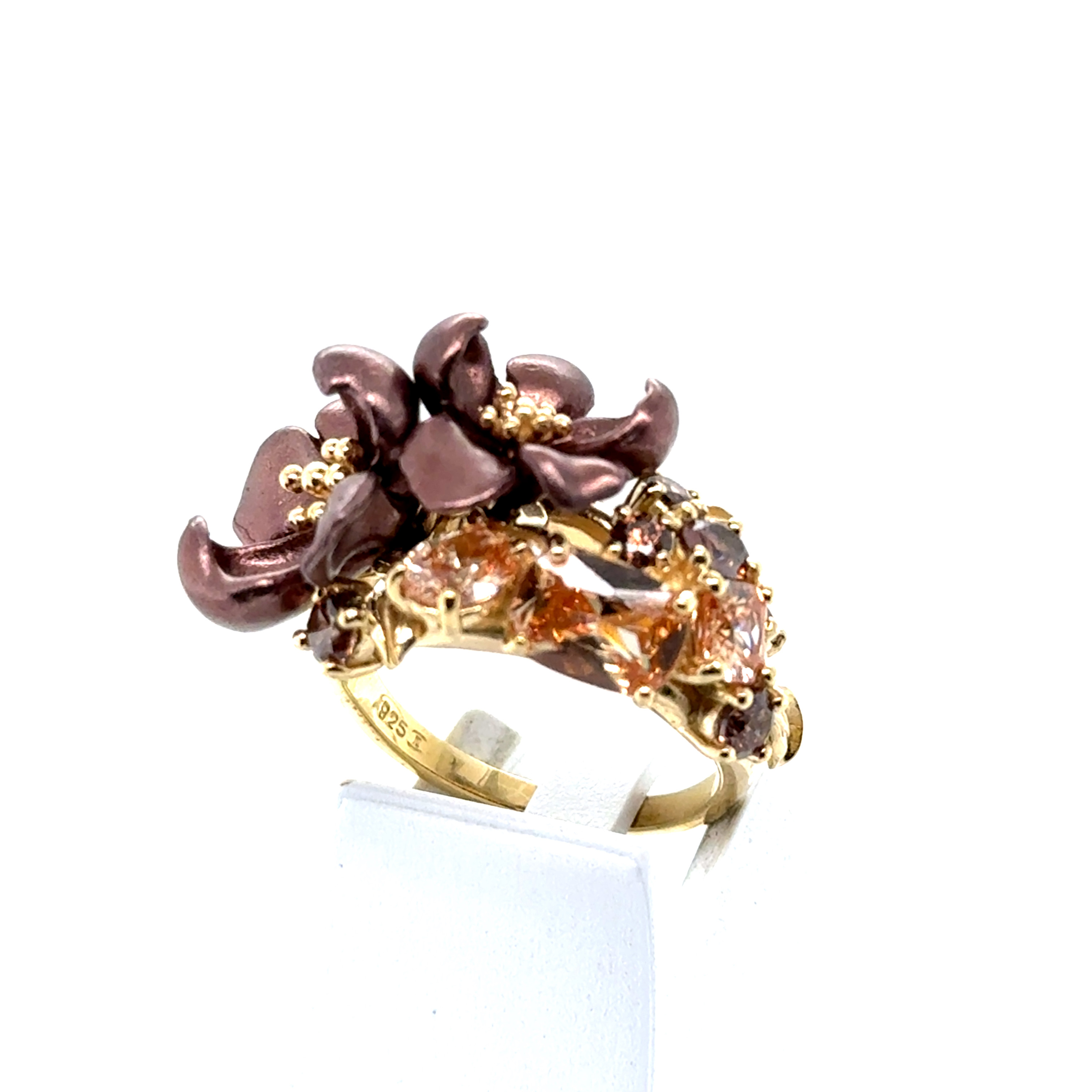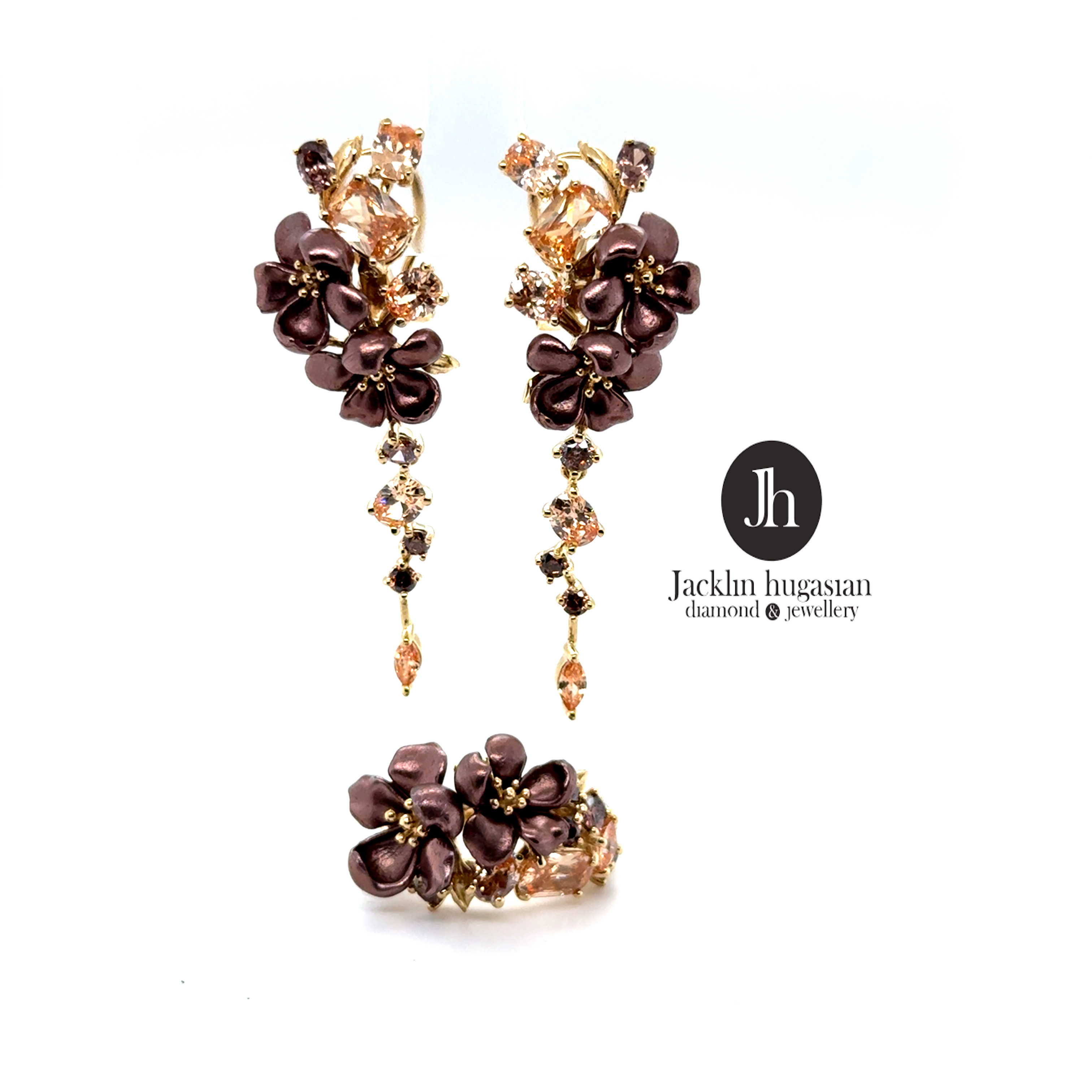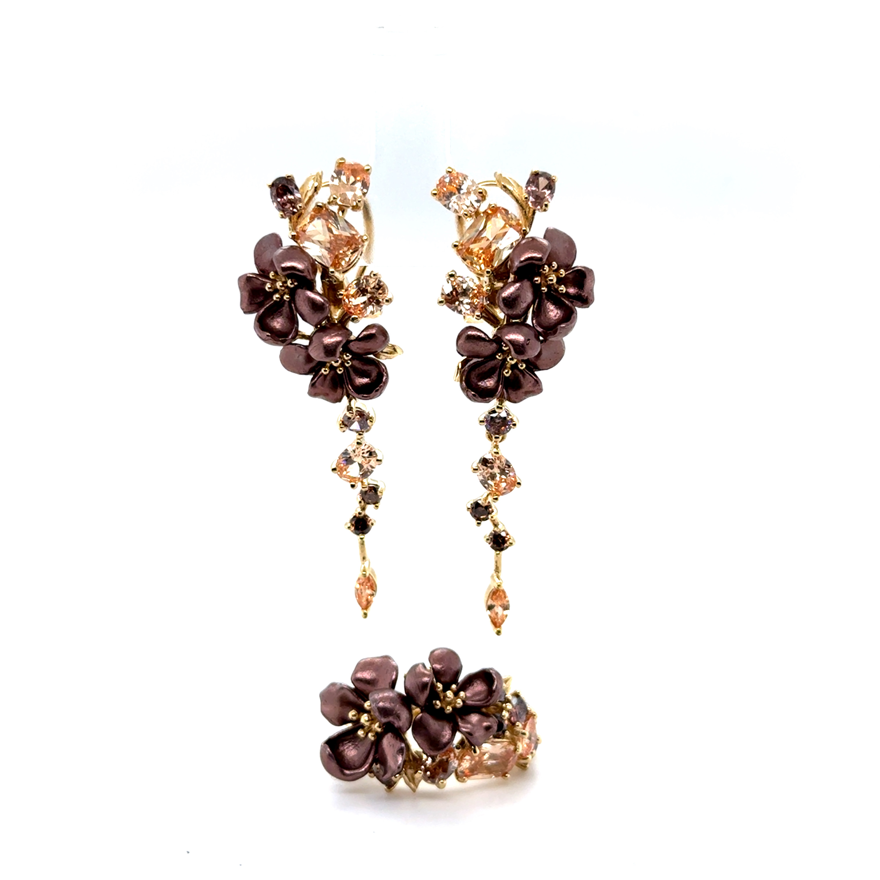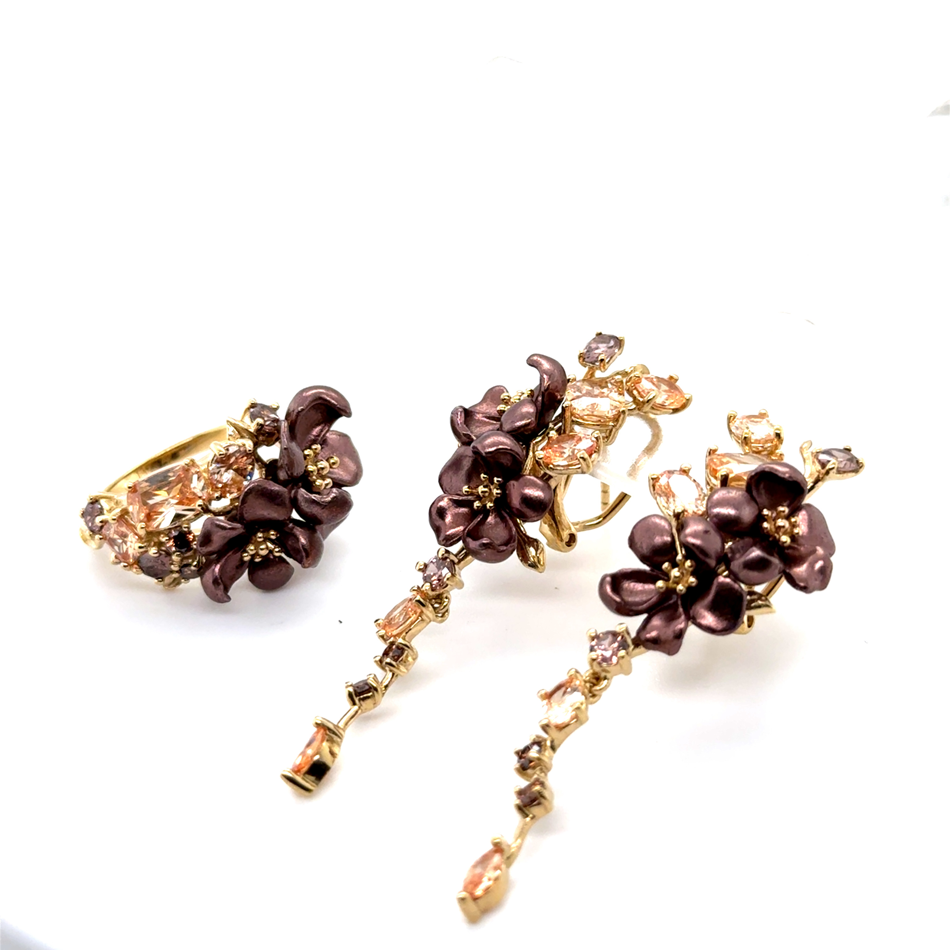 Комплект, обеци и пръстен от “Jacklin hugasian” в цветно сребро , позлата, опушен и златист топаз