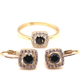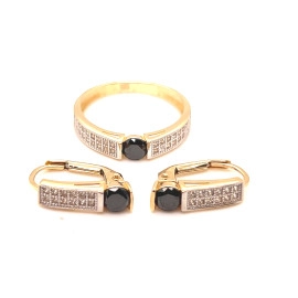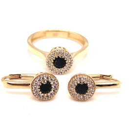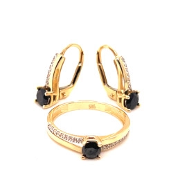 Пръстен от “Jacklin hugasian” в жълто злато с оникс и циркони.