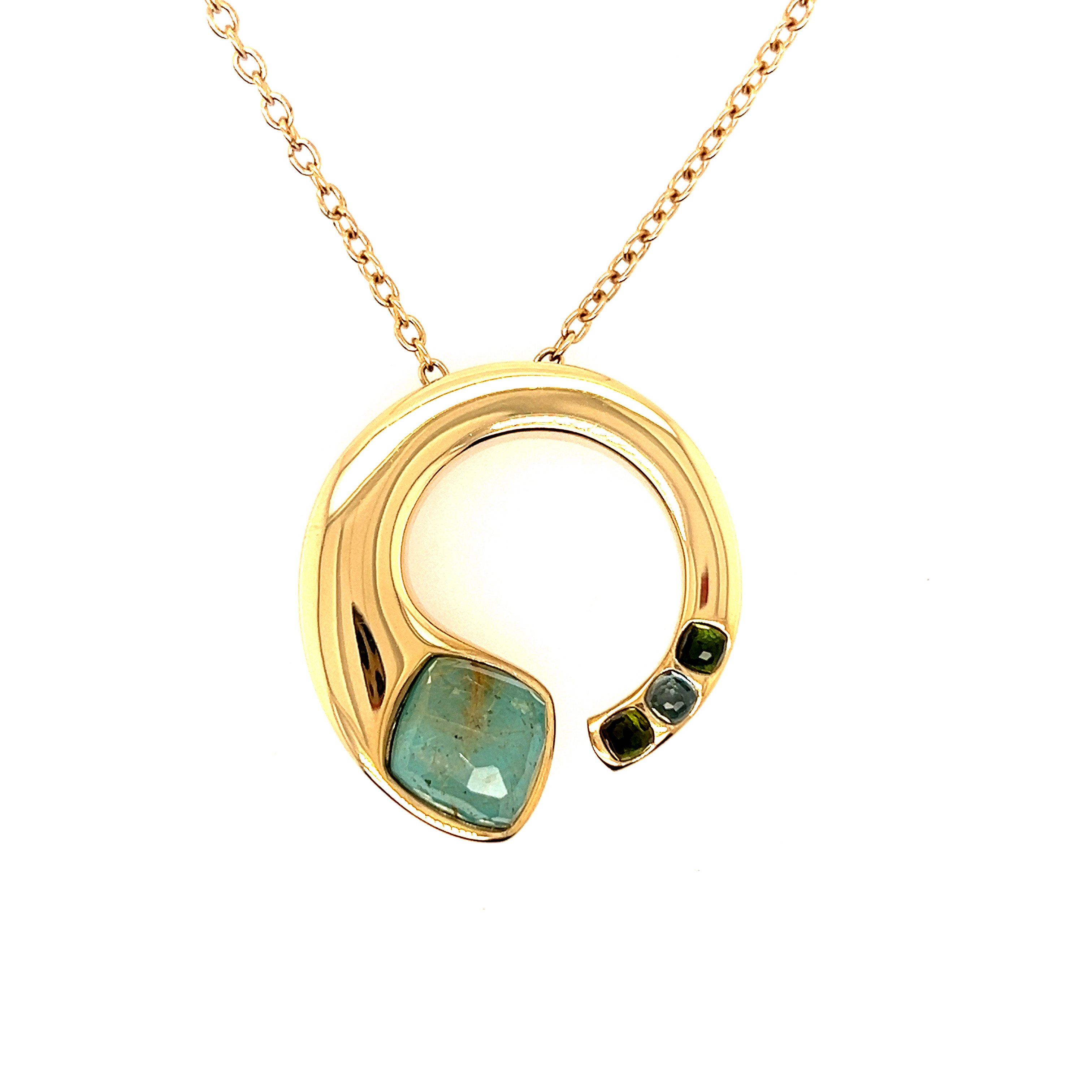 Колие от “Jacklin hugasian” в жълто злато с "Косите на Венера",перидот и топаз