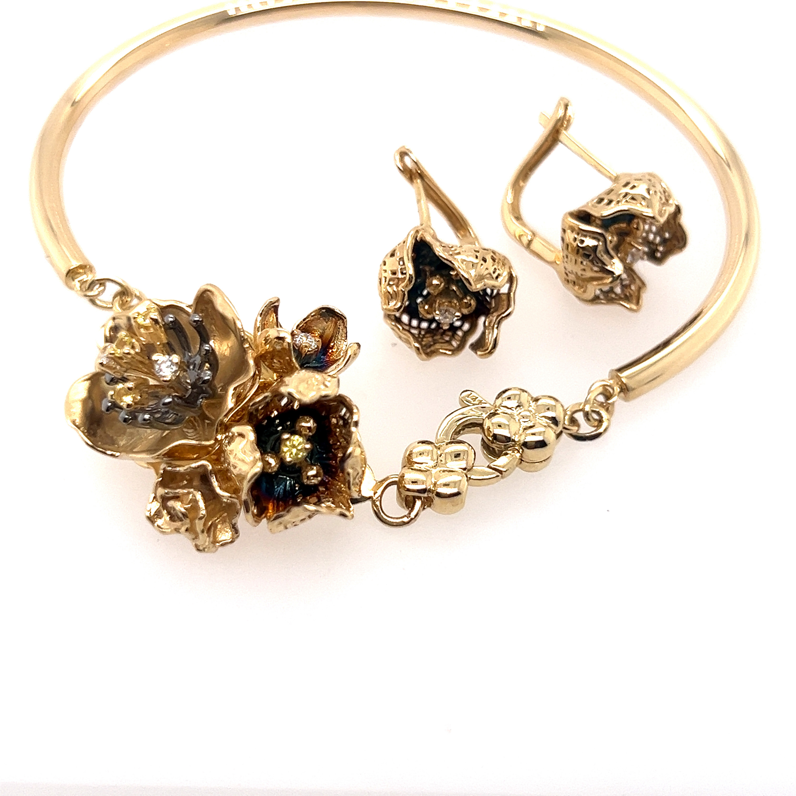 Комплект от “Jacklin hugasian” в жълто злато с диаманти.
