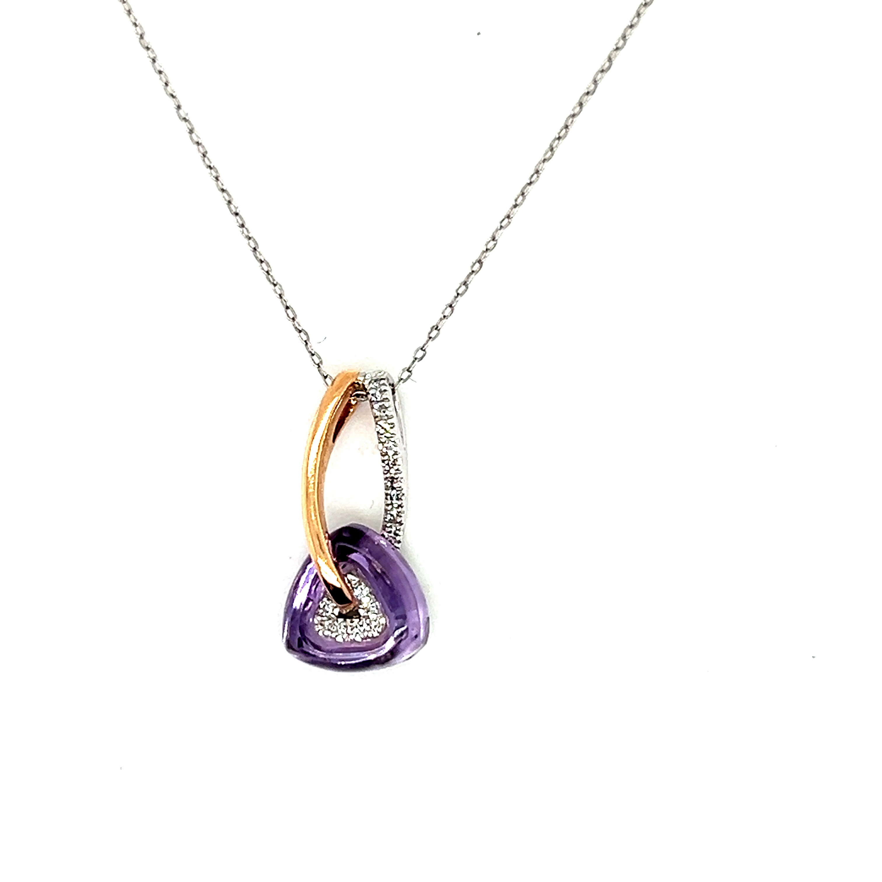 Колие от “Jacklin hugasian” в бяло и розово злато, с аметист и диаманти