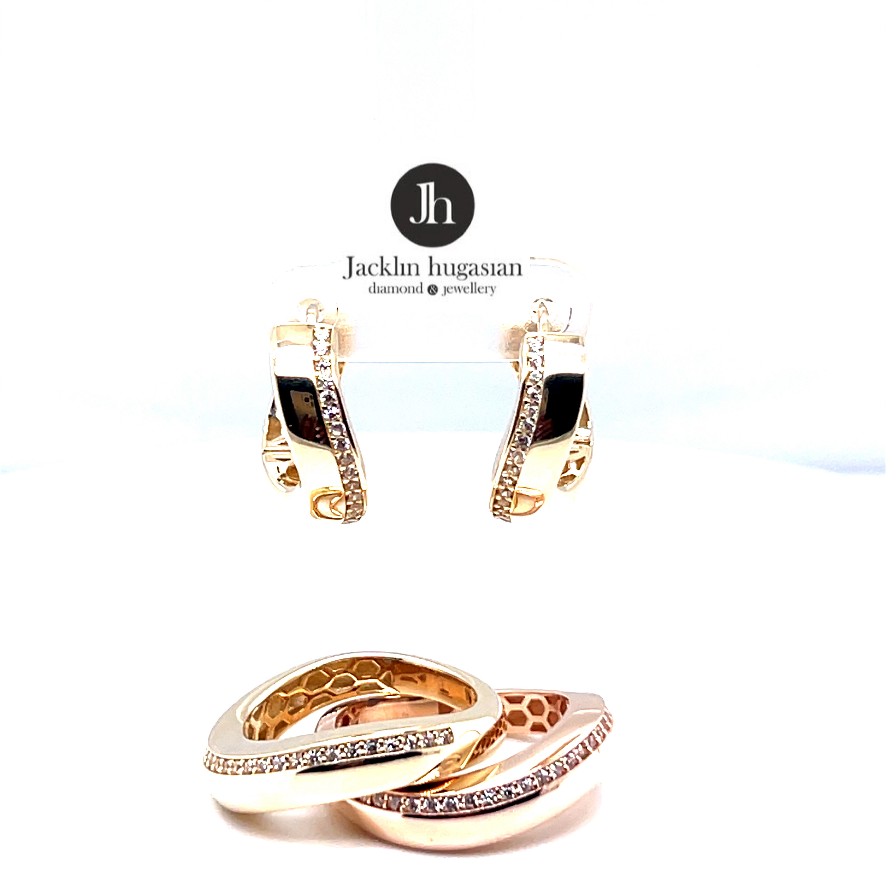 Пръстен от “Jacklin hugasian” в жълто злато с циркони.