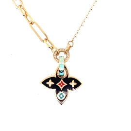 Колие от “Jacklin hugasian” в жълто злато с цветен емайл.