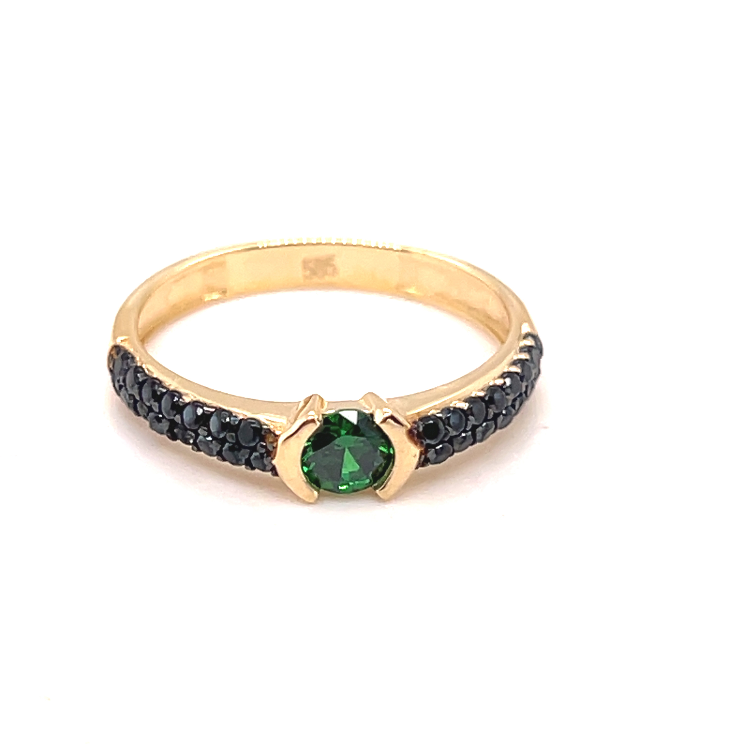 Комплект обеци и пръстен от “Jacklin hugasian” в жълто злато с оникс и синтетичен изумруд