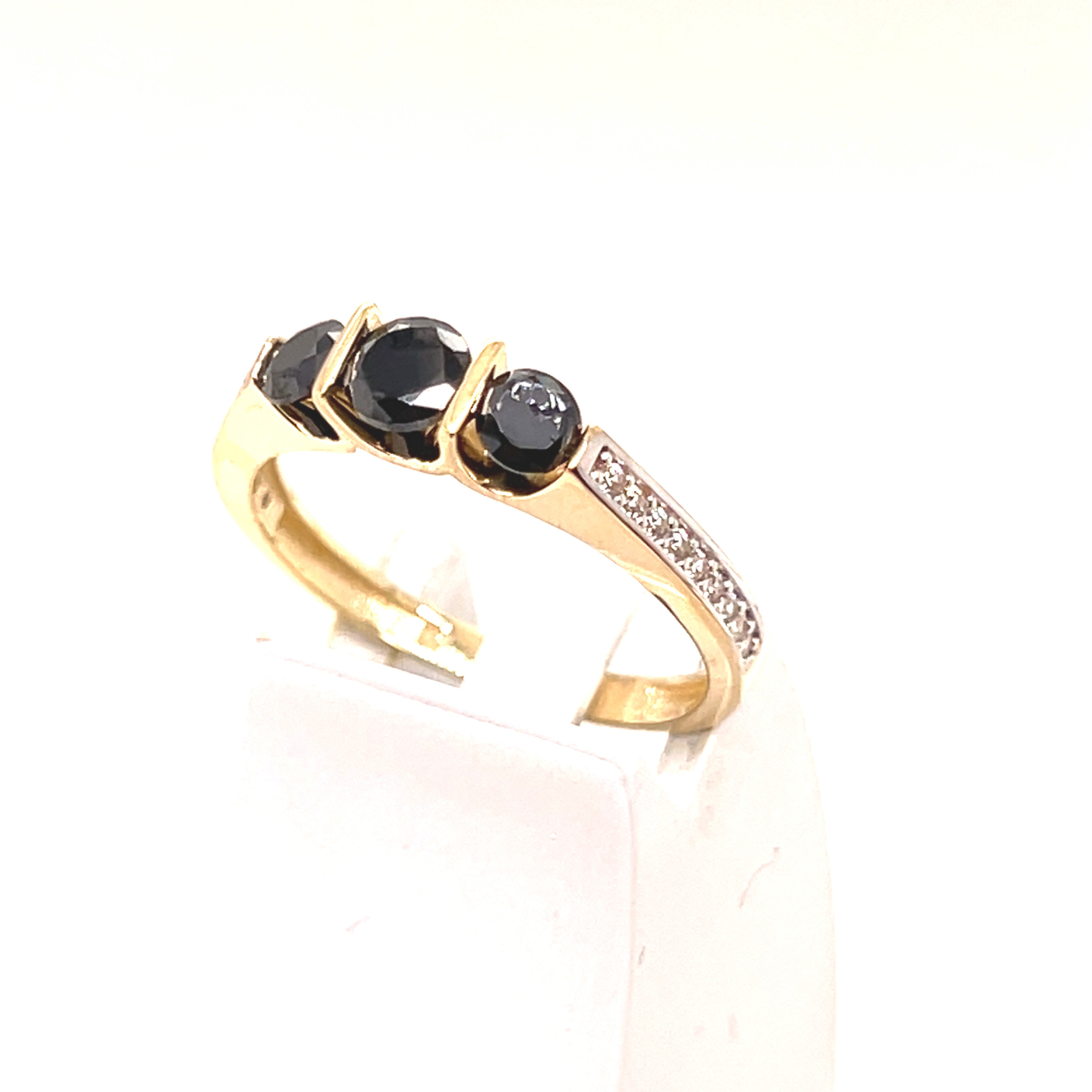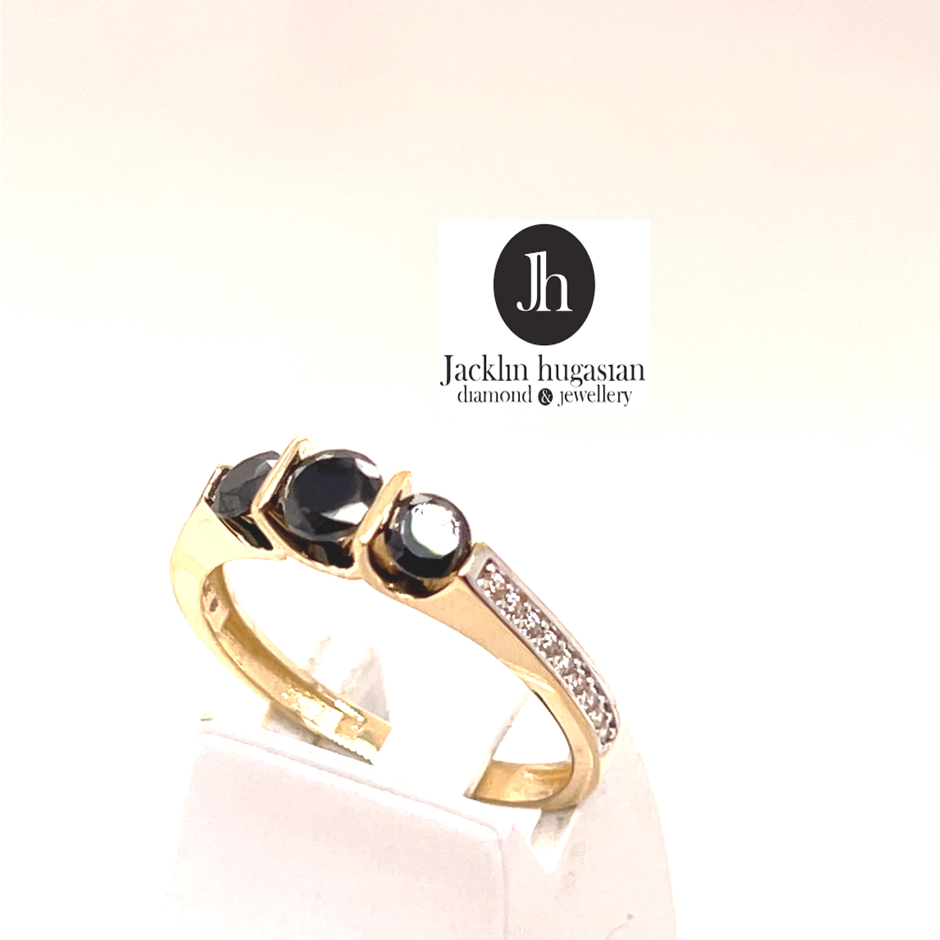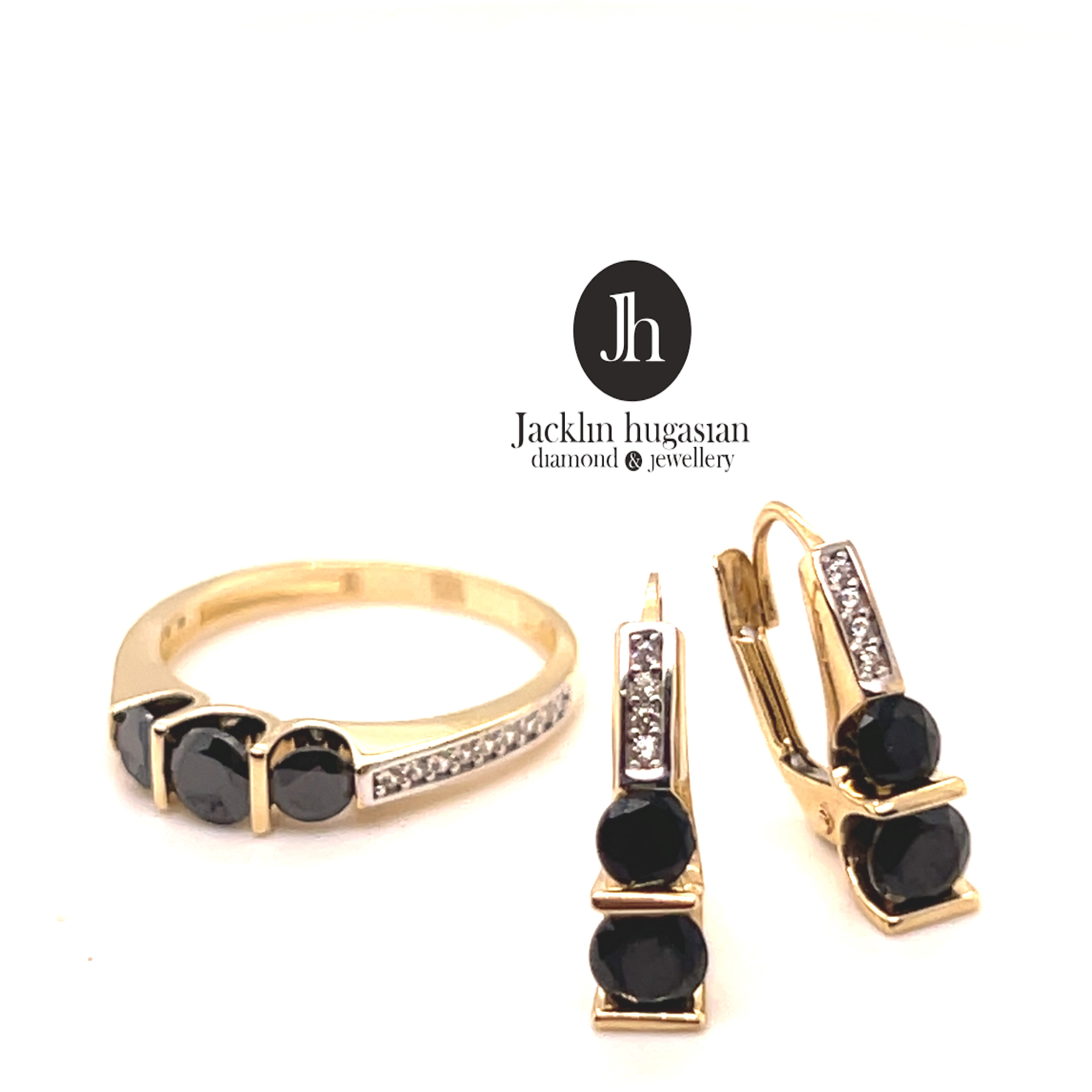 Комплект обеци и пръстен от “Jacklin hugasian” в жълто злато с оникс и циркони