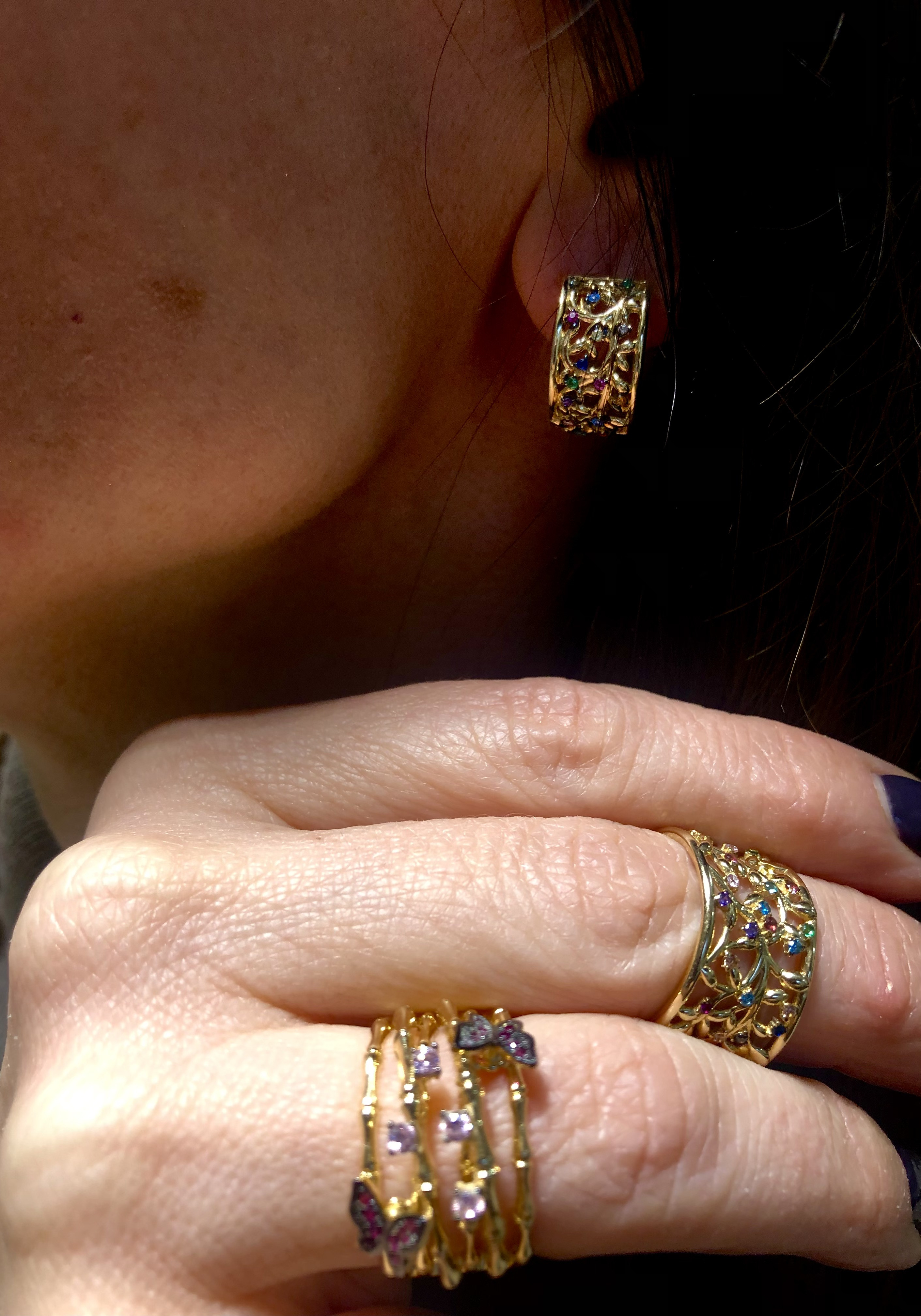 Комплект от “Jacklin hugasian” в жълто злато с разноцветни камъни