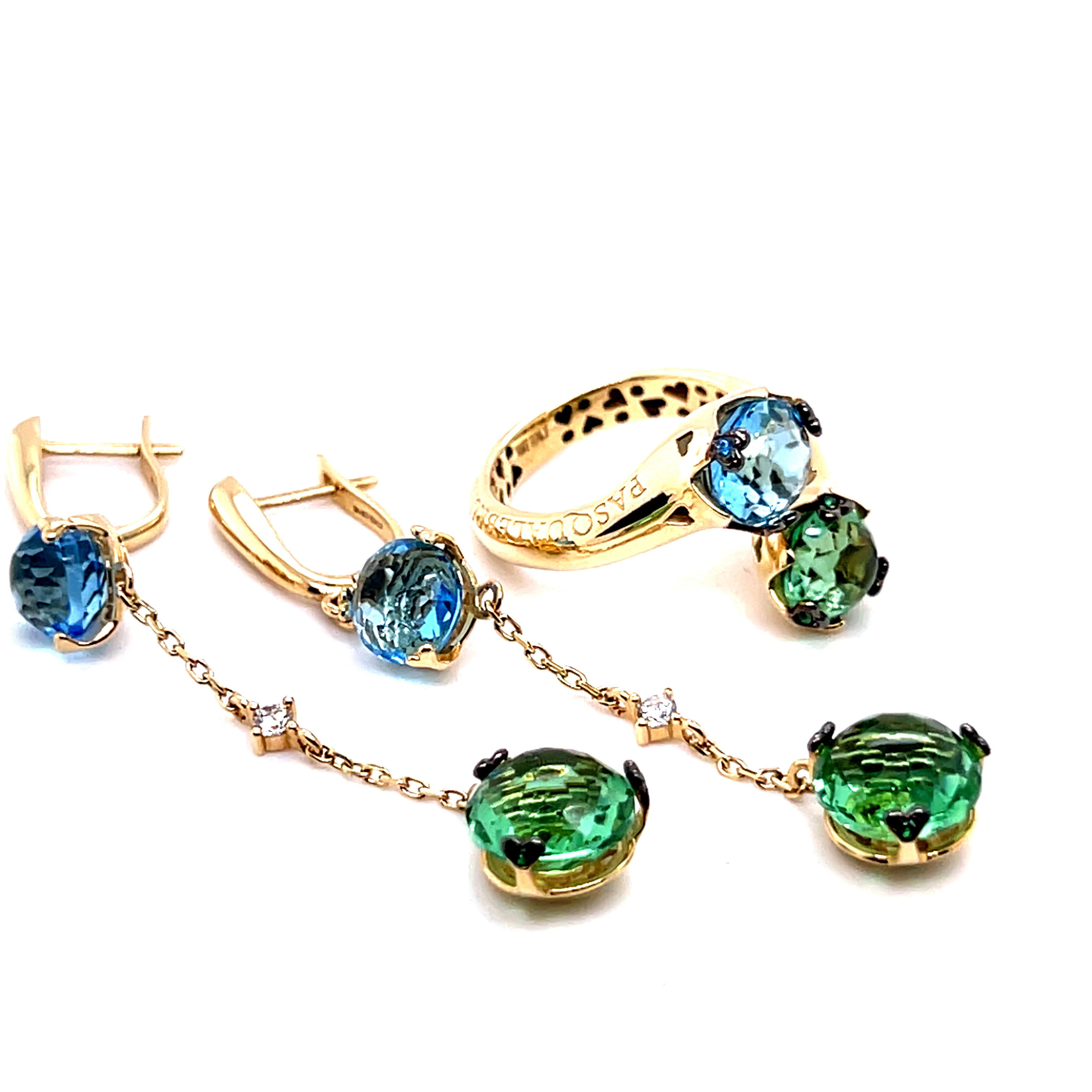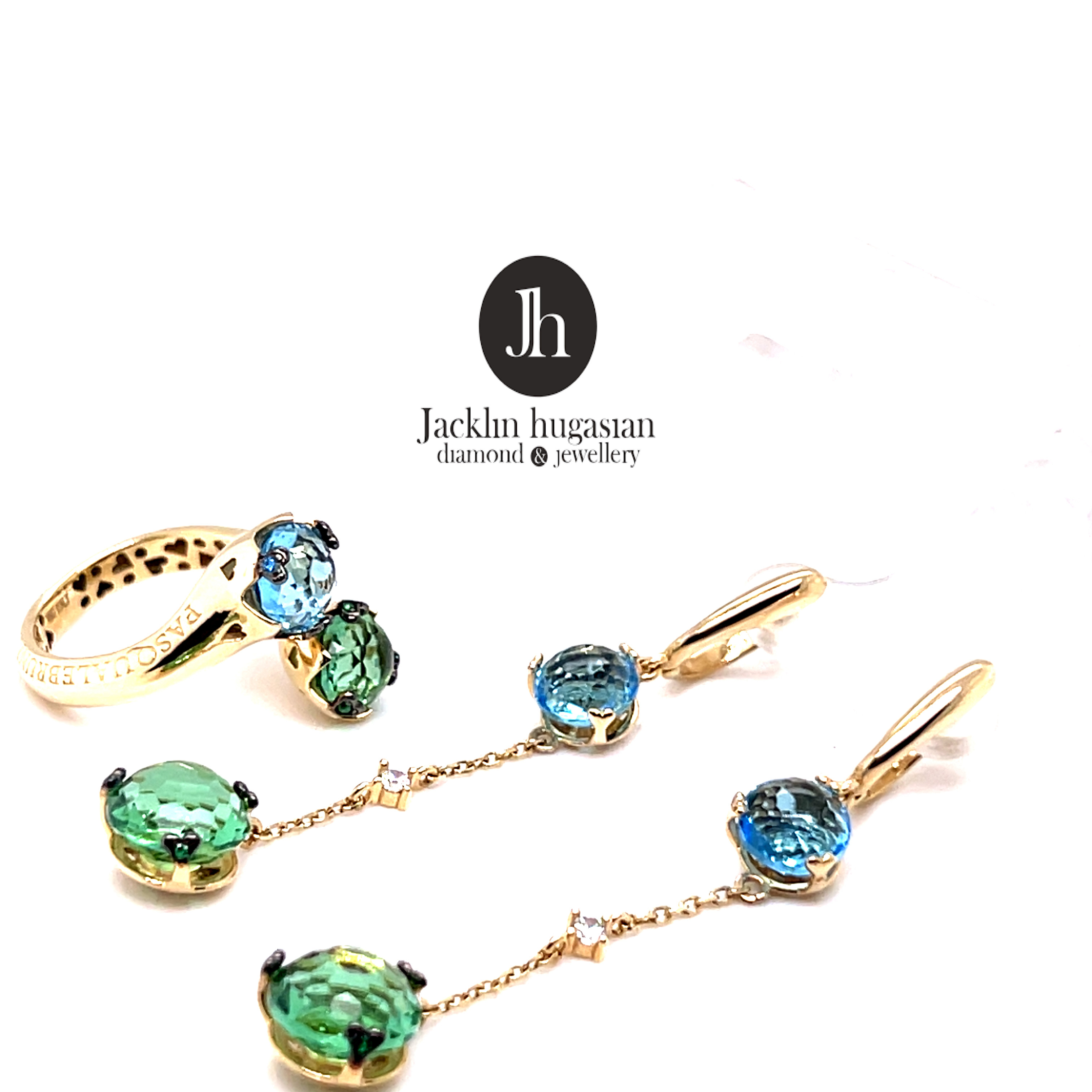 Комплект от “Jacklin hugasian” в жълто злато с топаз и перидот