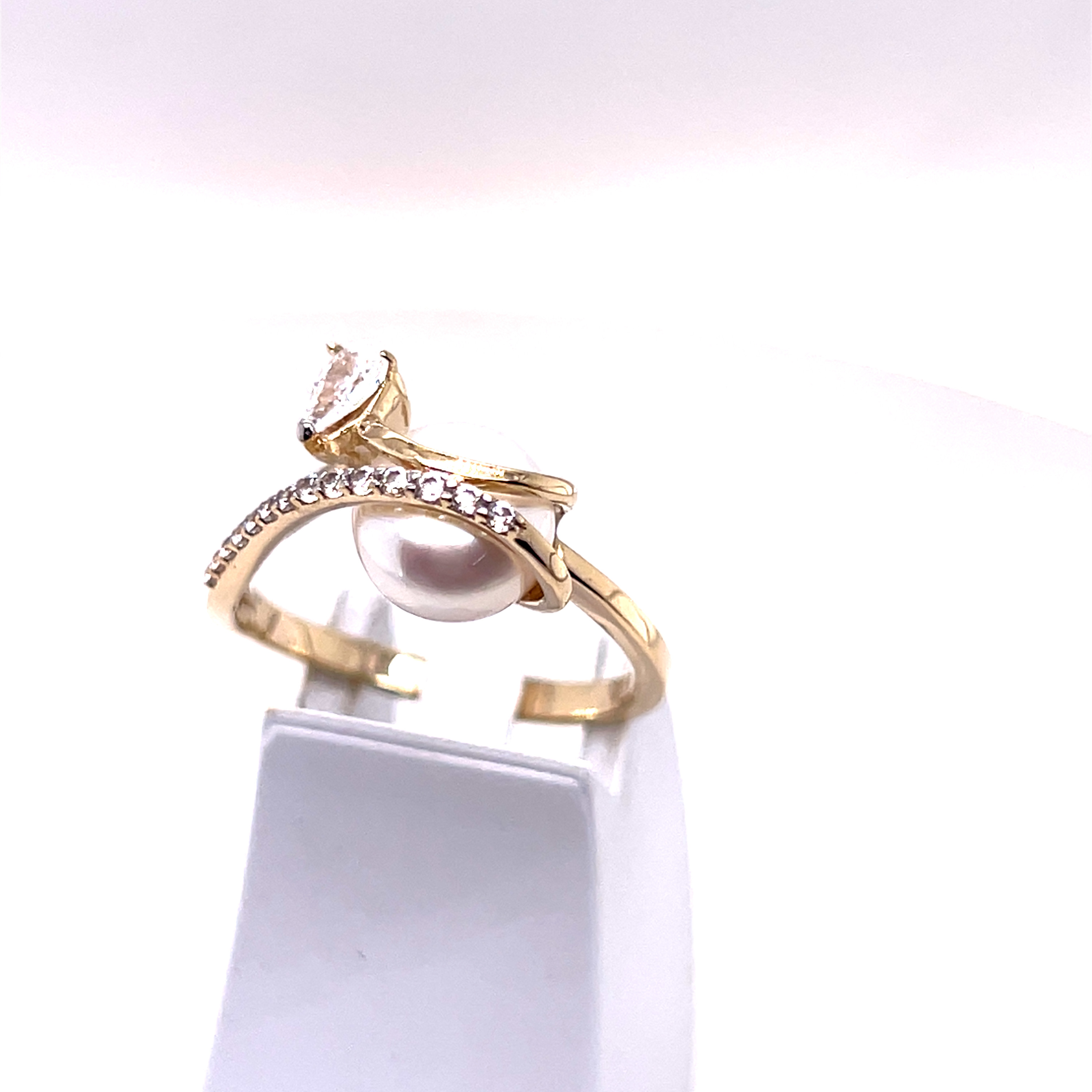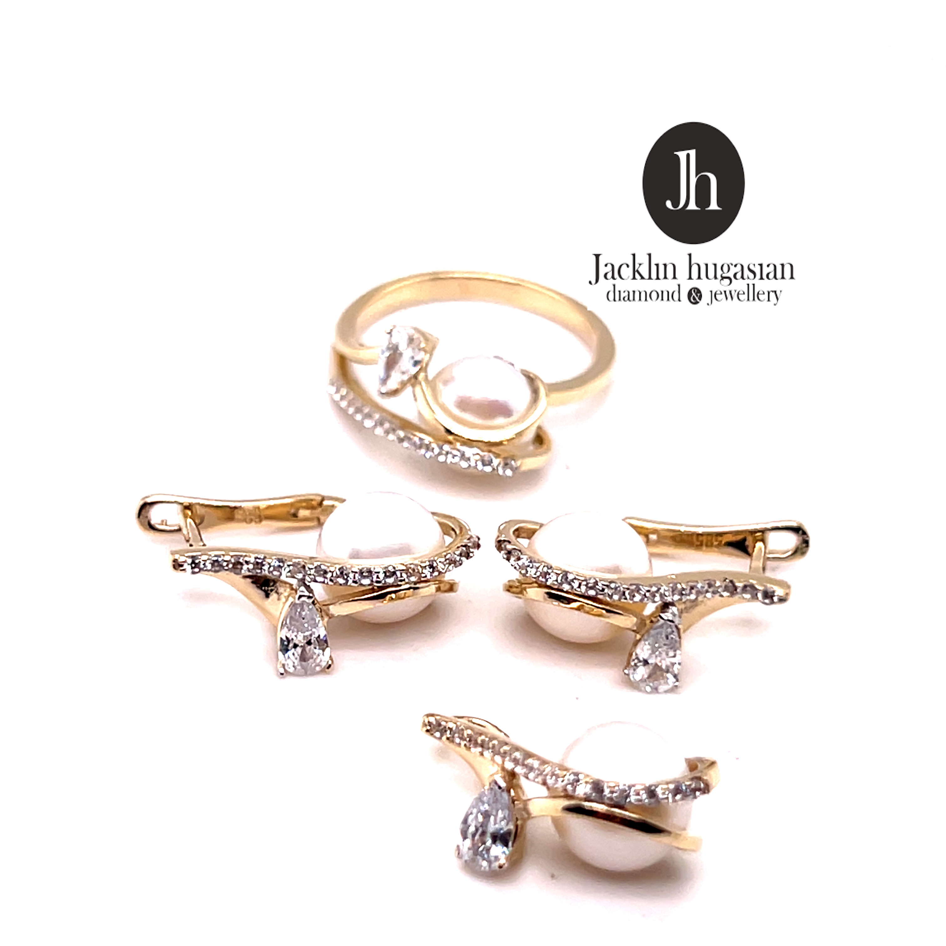 Комплект от “Jacklin hugasian” в жълто злато с перла и циркони.