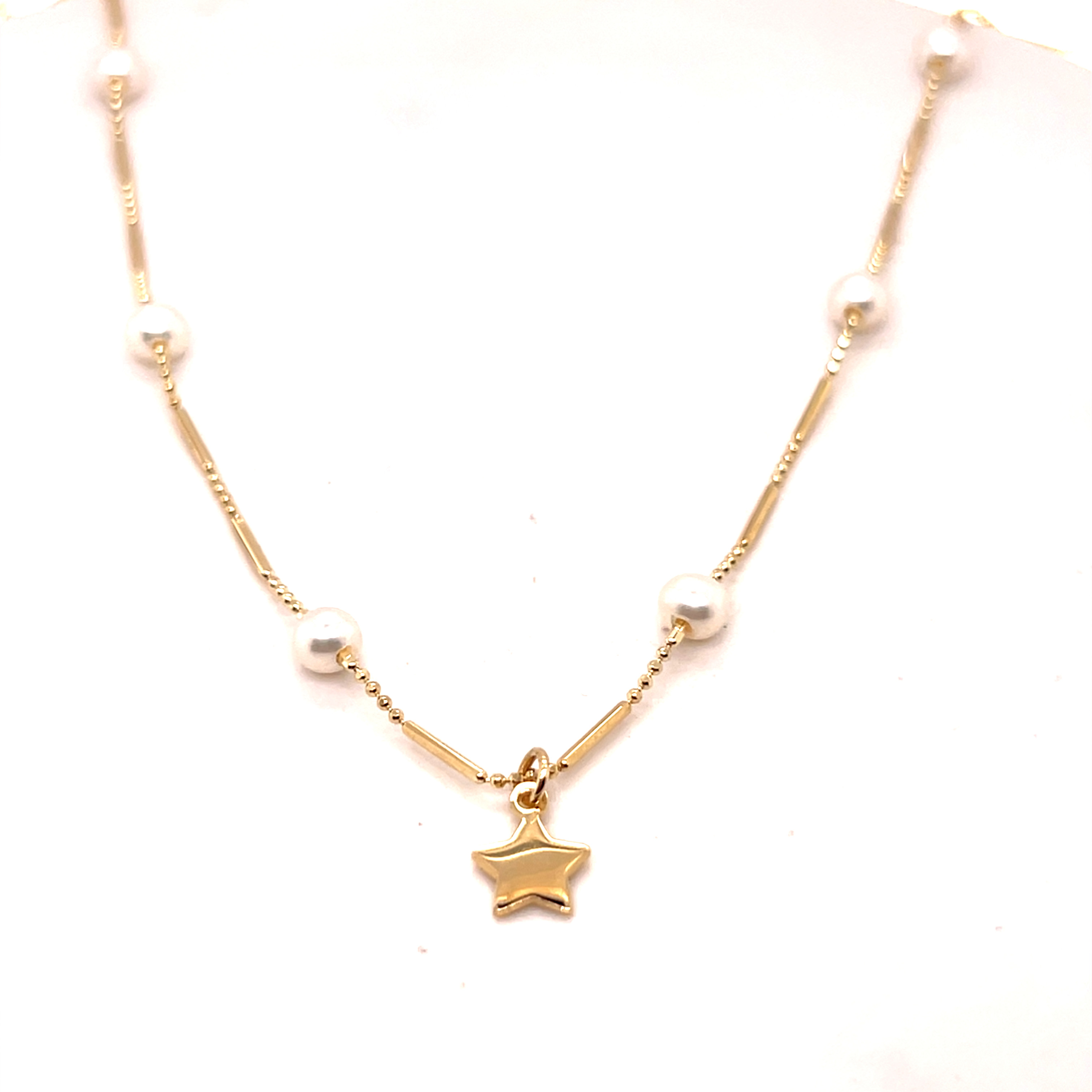 Колие от “Jacklin hugasian” в жълто злато гланц с перла