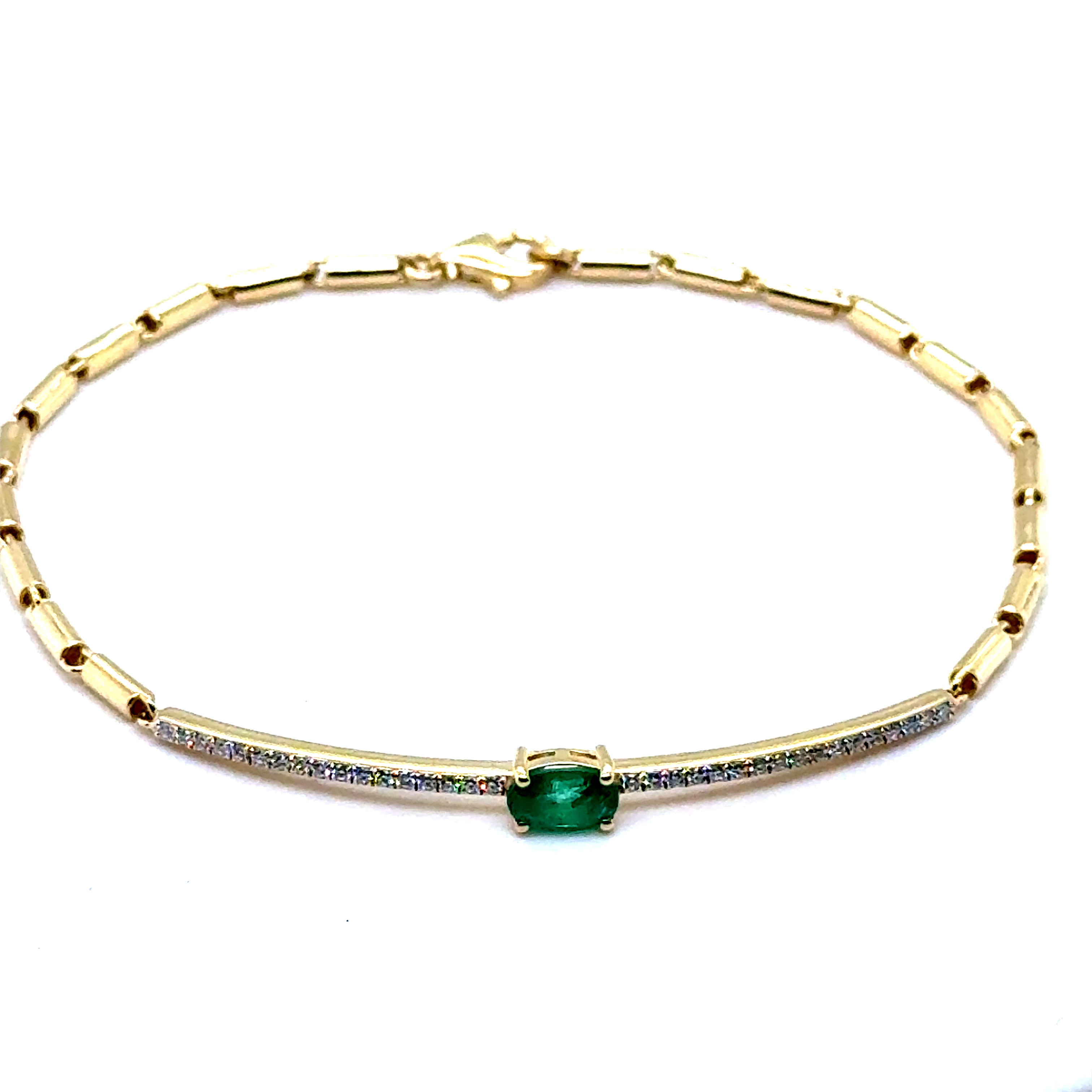 Гривна от "Jacklin hugasian" в жълто злато с естествен изумруд и диаманти.