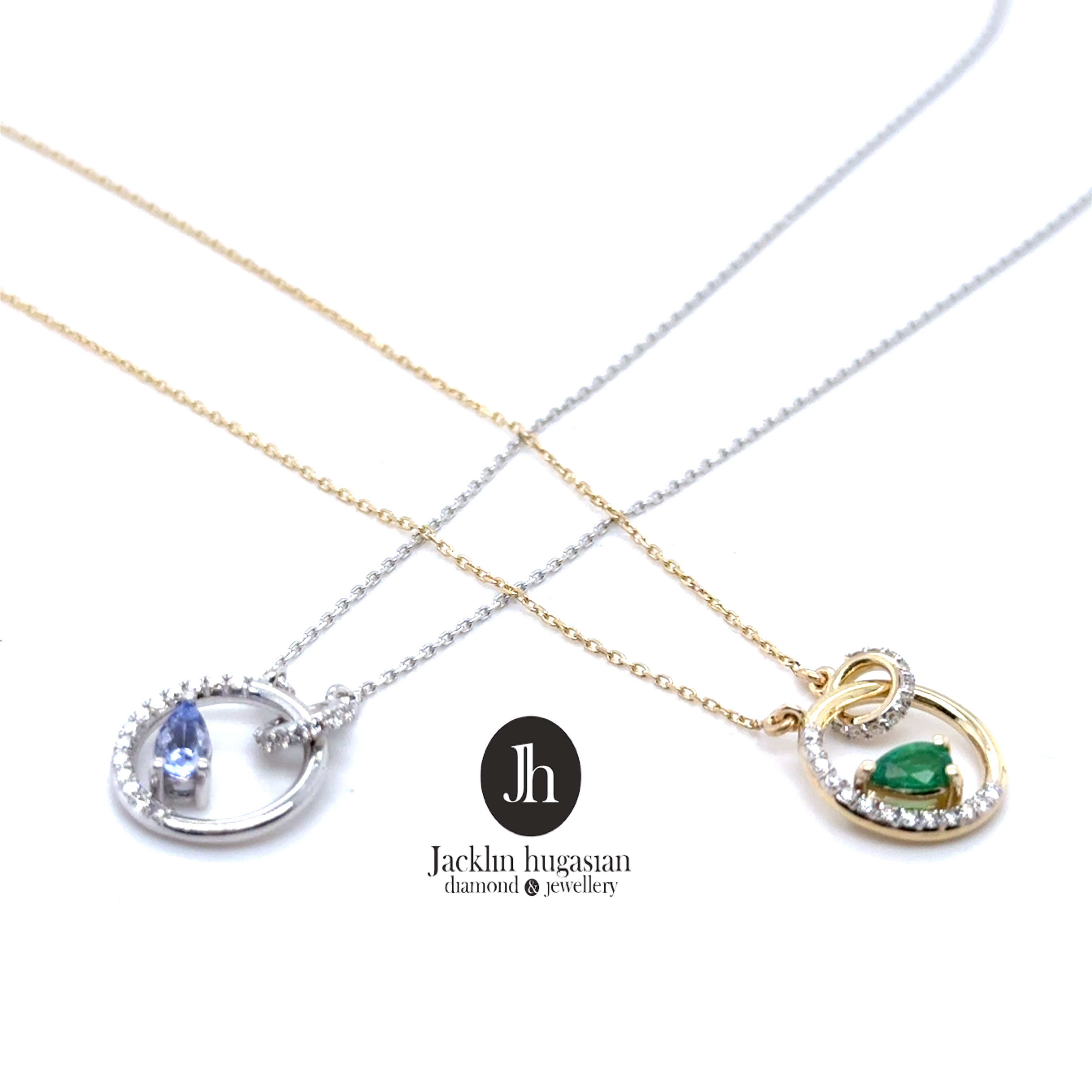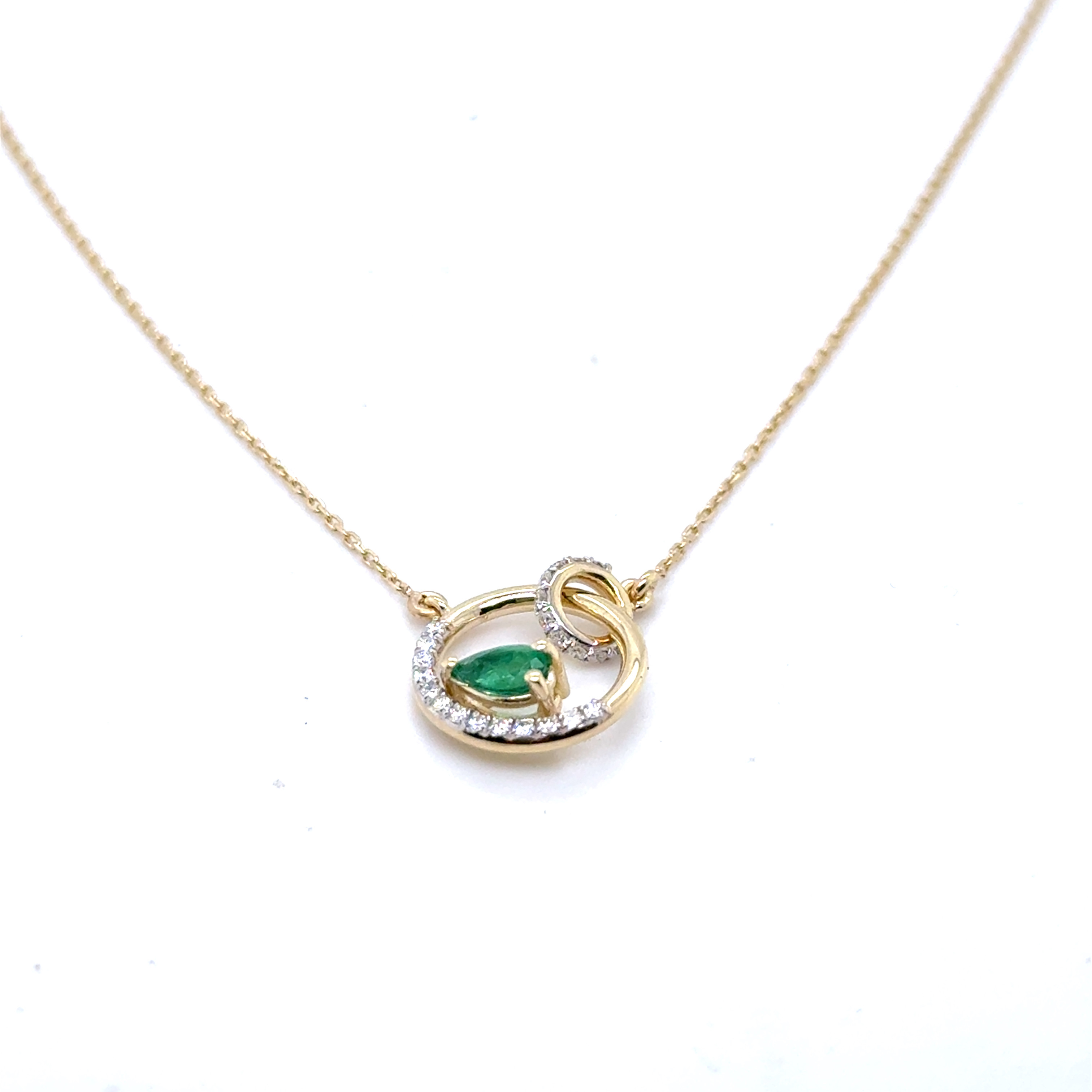 Колие от “Jacklin hugasian” в жълто злато с диаманти и изумруд.