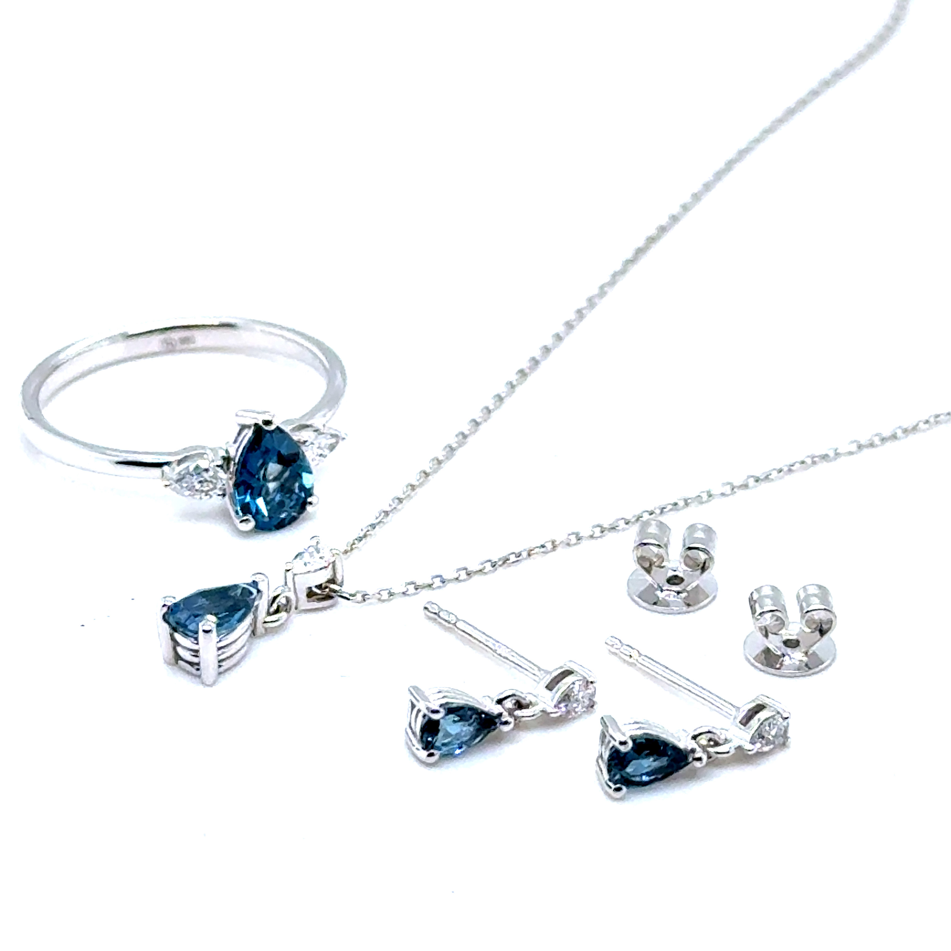 Комплект от "Jacklin hugasian" в бяло злато с лондон топаз и диаманти.