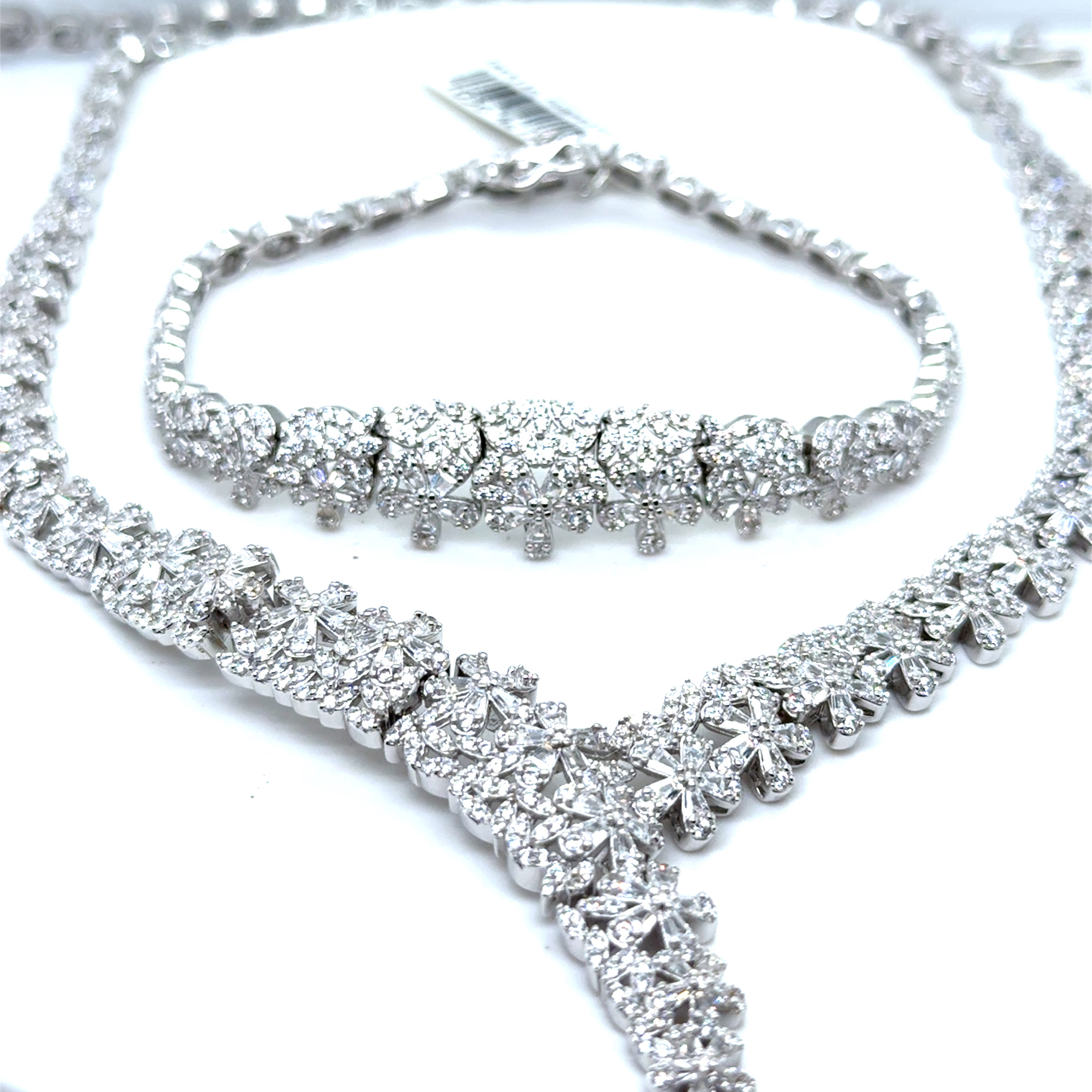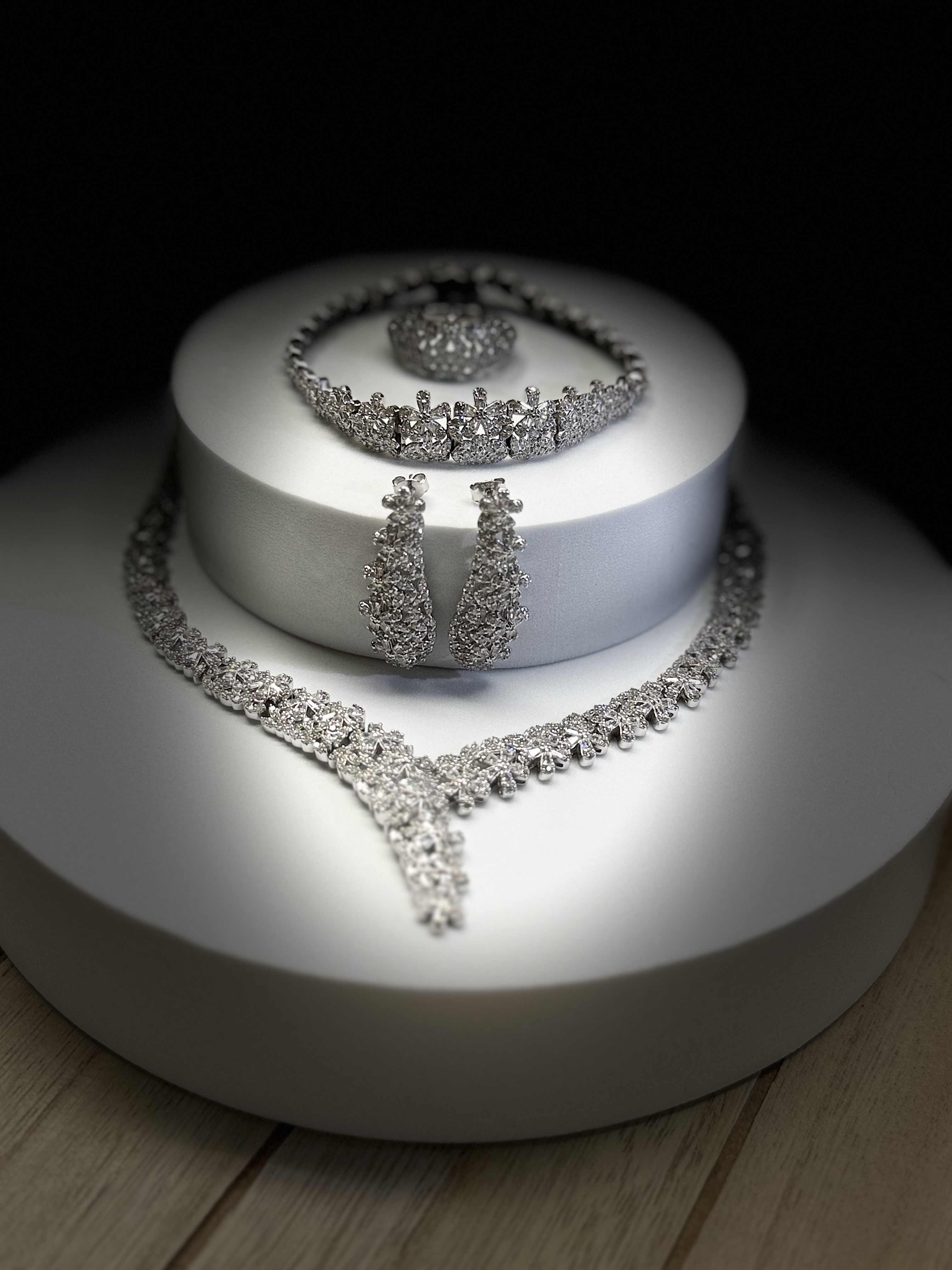 Комплект колие, обеци , пръстен и гривна от “Jacklin hugasian” в сребро с цирконии.