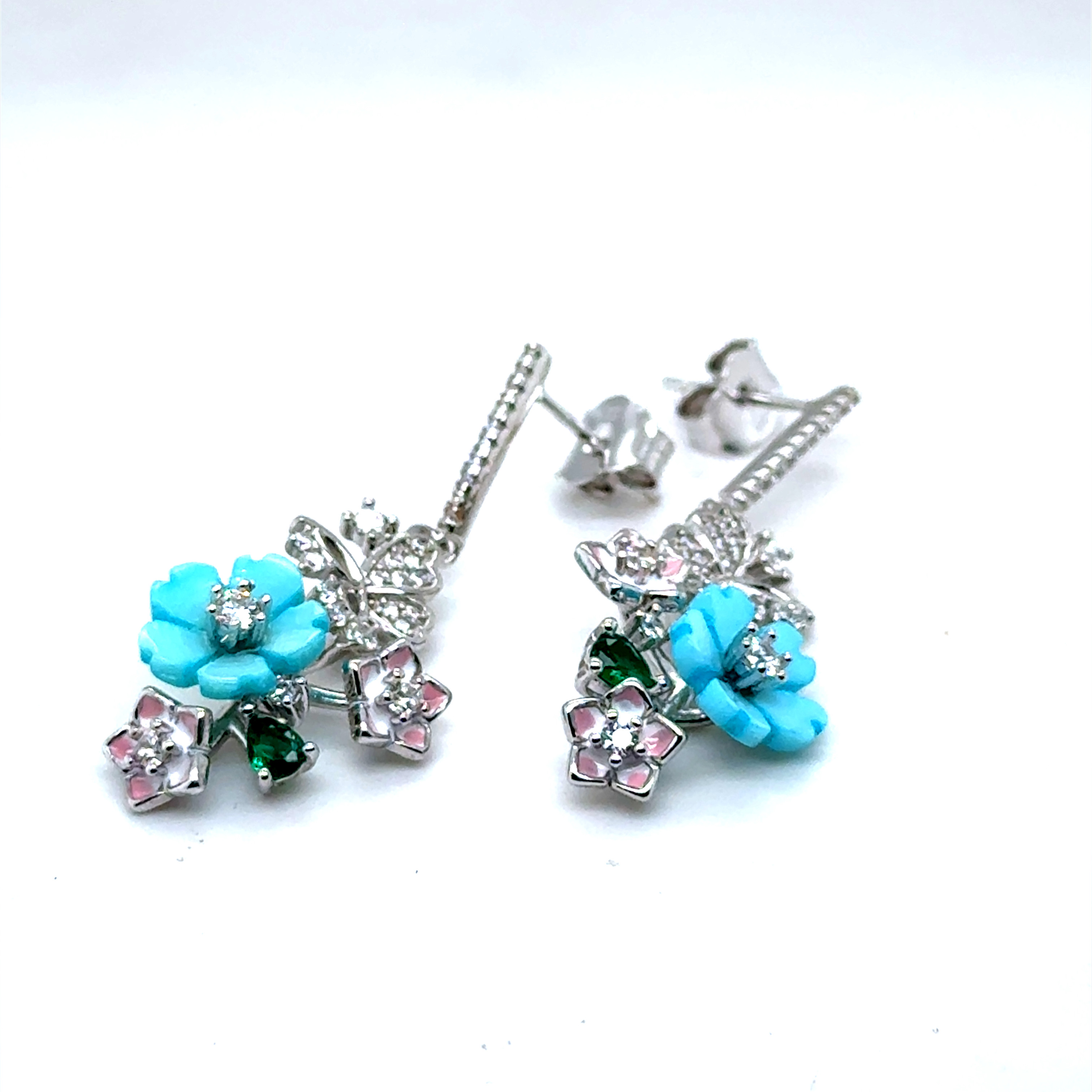 Комплект колие и обеци от “Jacklin hugasian” в сребро с емаѝл, седеф и циркони.