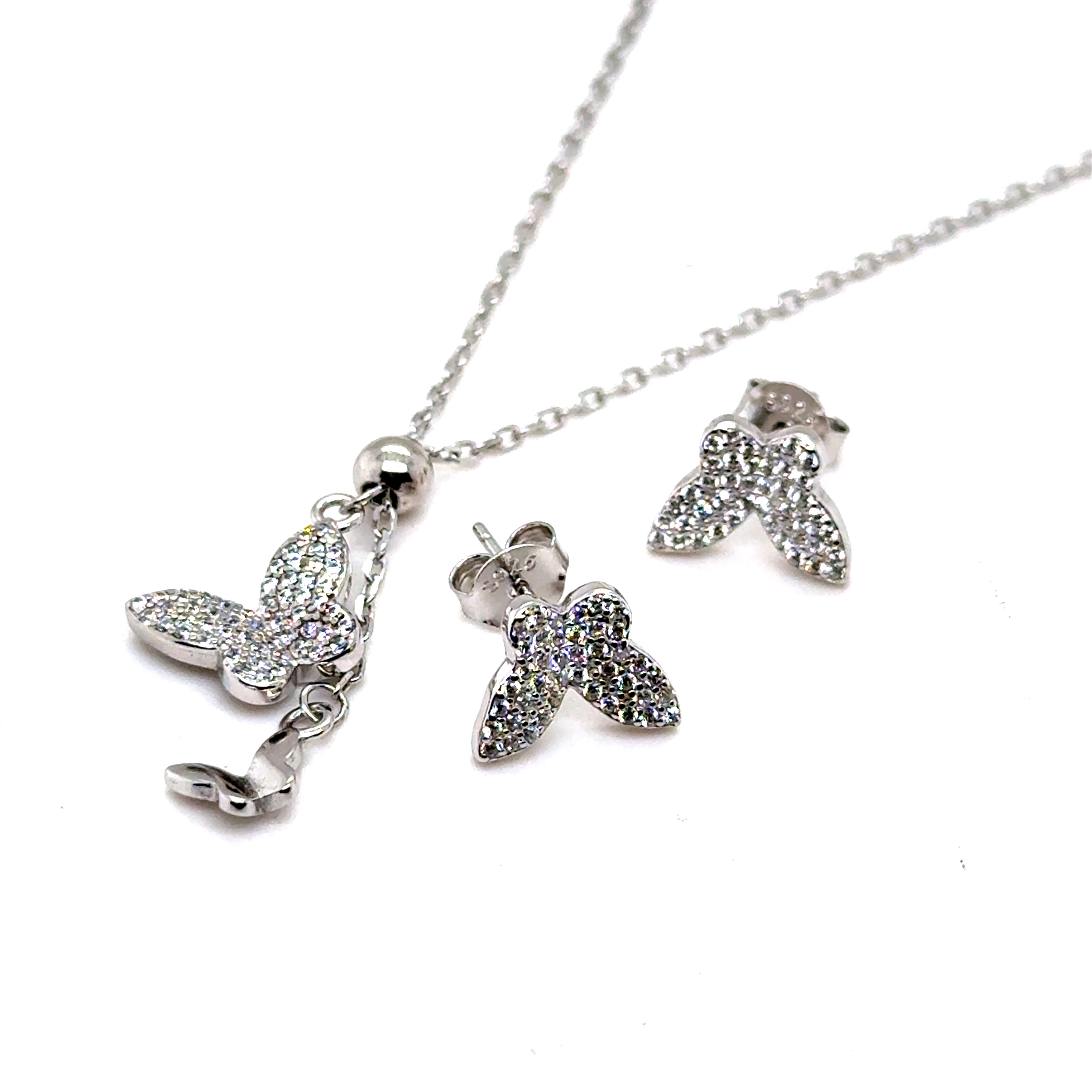 Комплект обеци и колие от "Jacklin hugasian" в сребро с циркони и седеф
