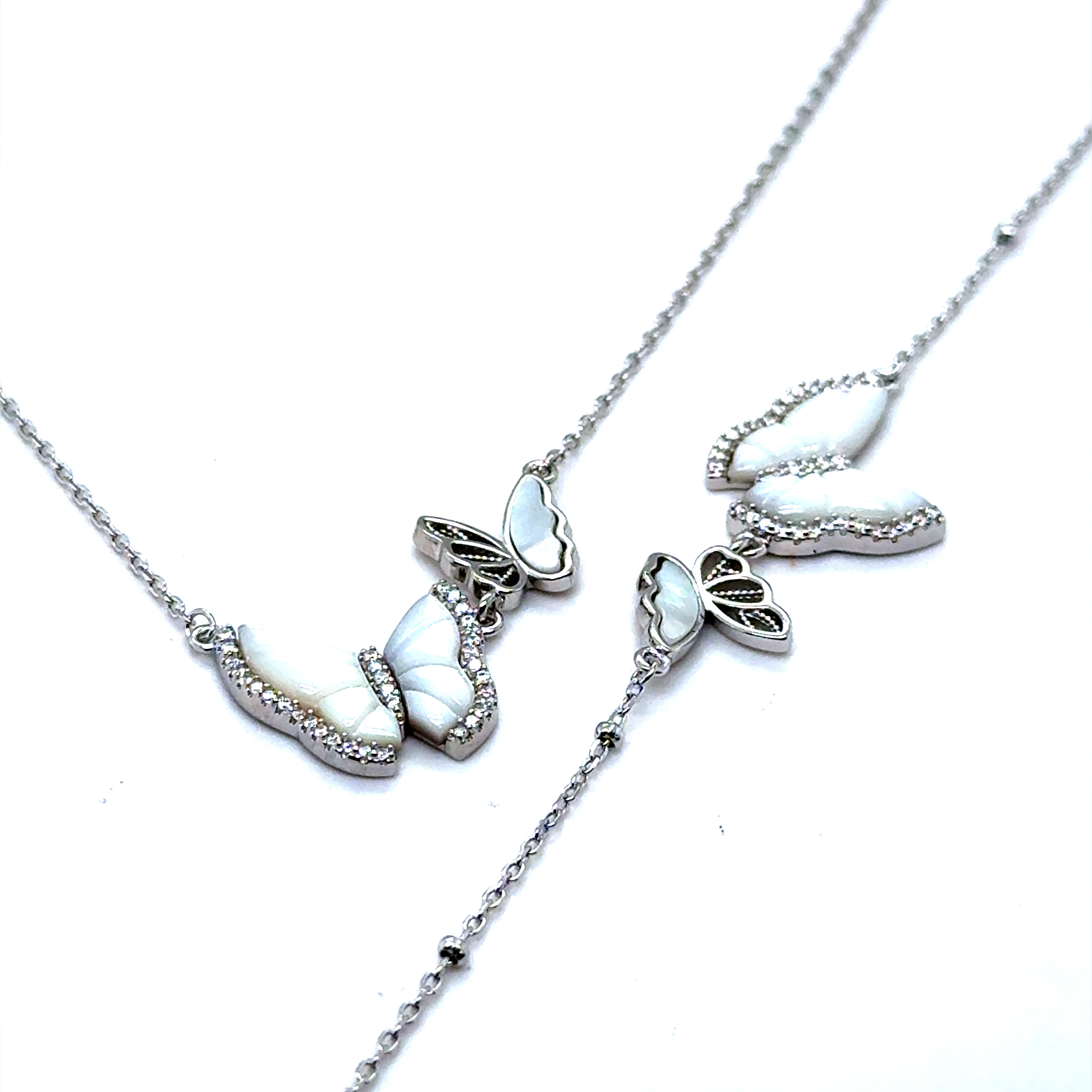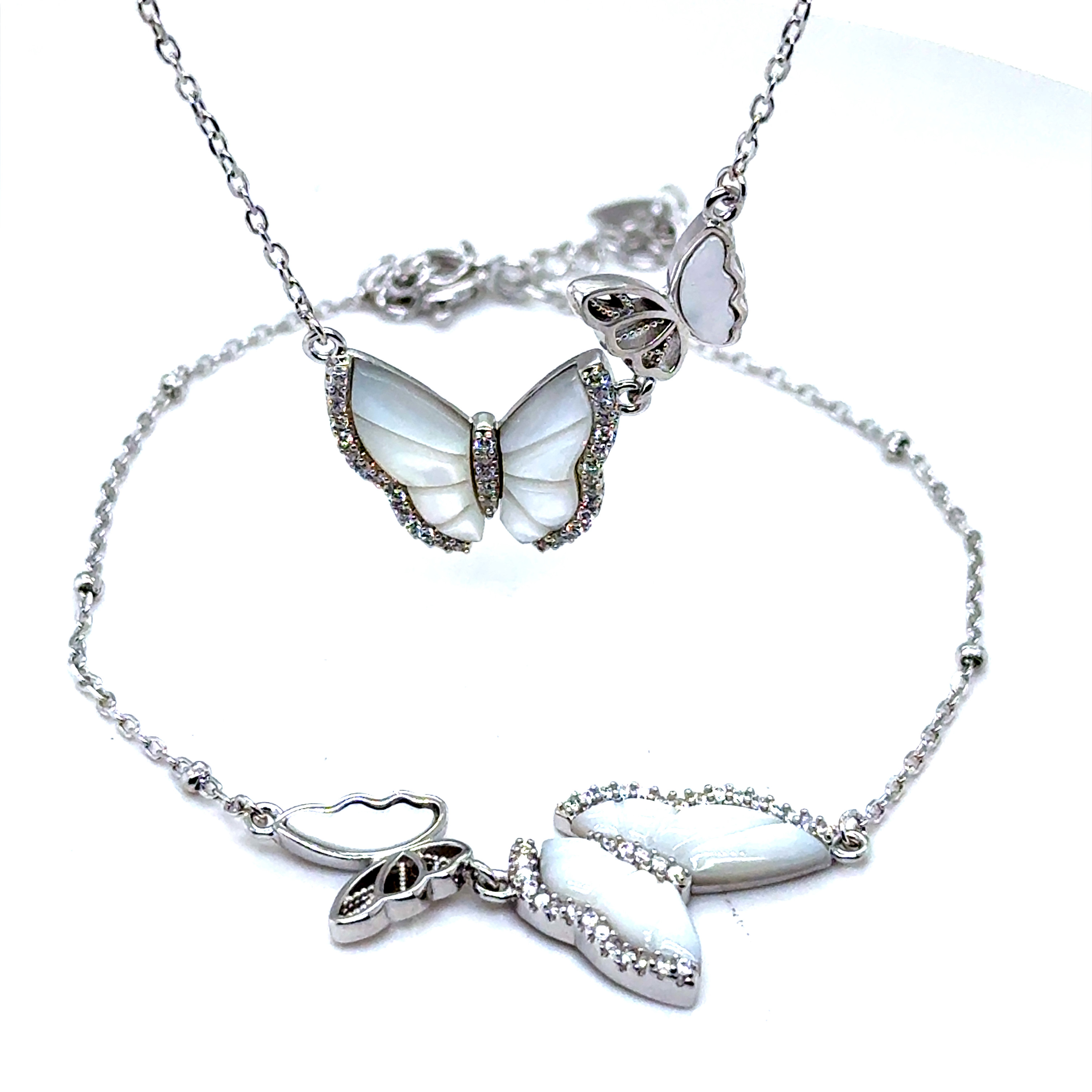 Комплект от колие и гривна от“Jacklin hugasian” в сребро със седеф и цирконии.