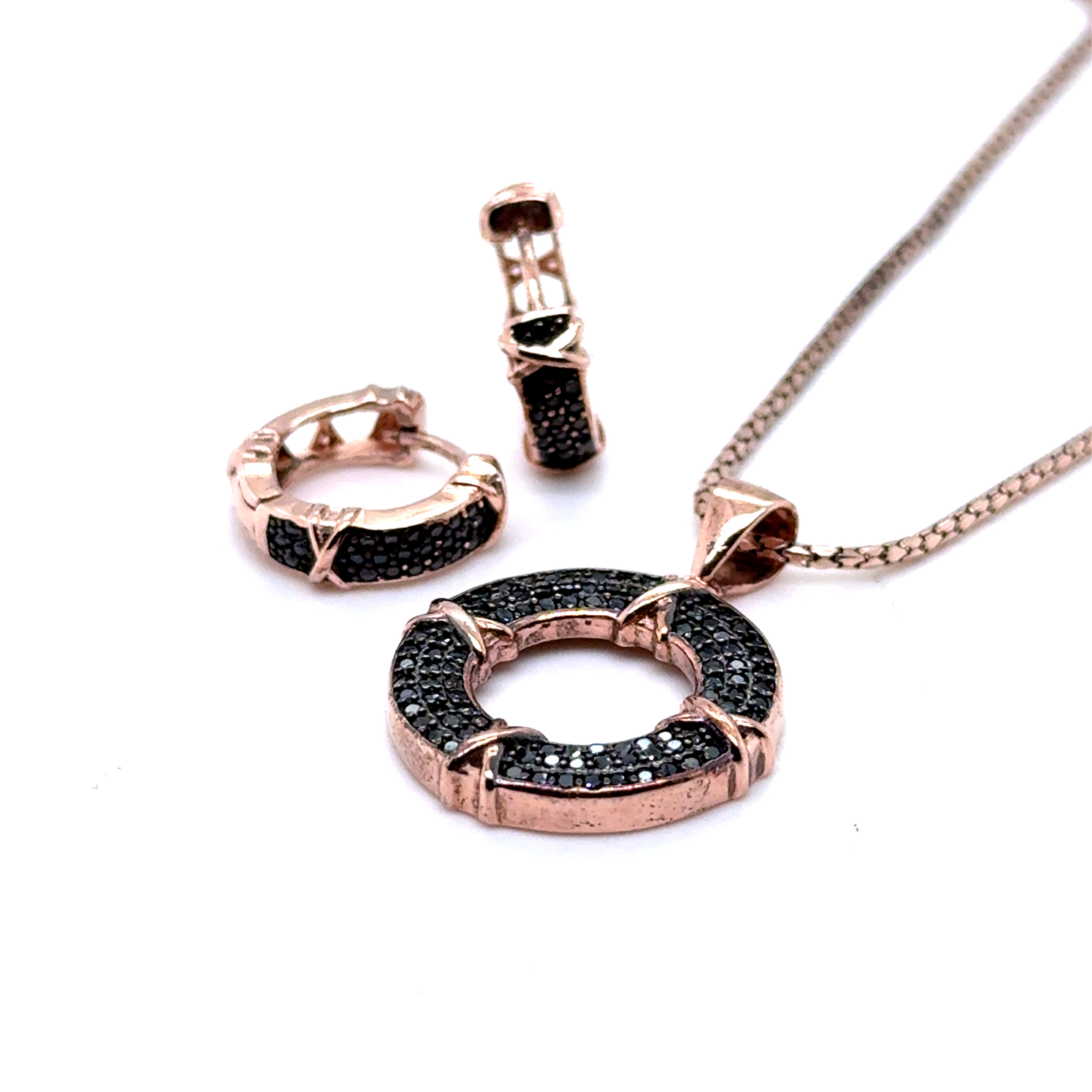 Комплект от "Jacklin hugasian" в розово сребро и оникс