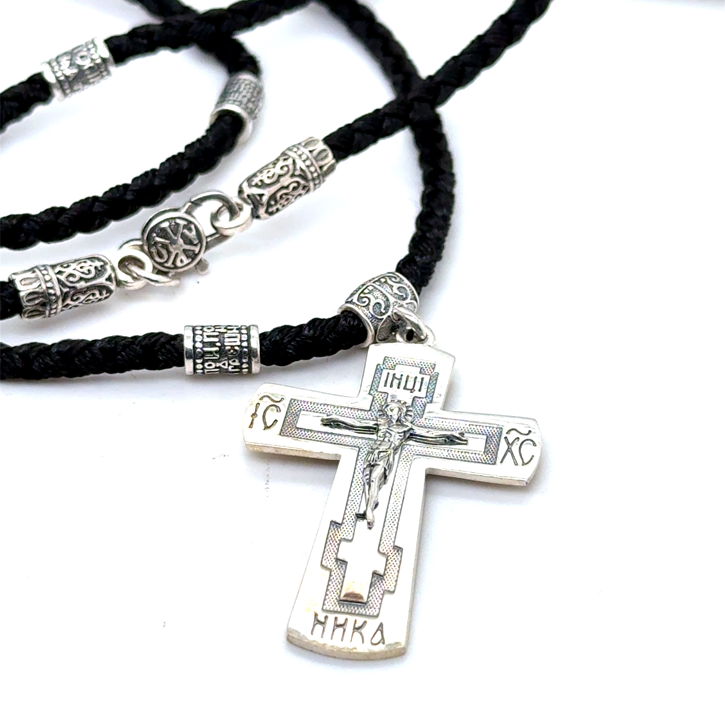 Колие от „Jacklin hugasian“ в сребро с оксидация и копринен конец .
