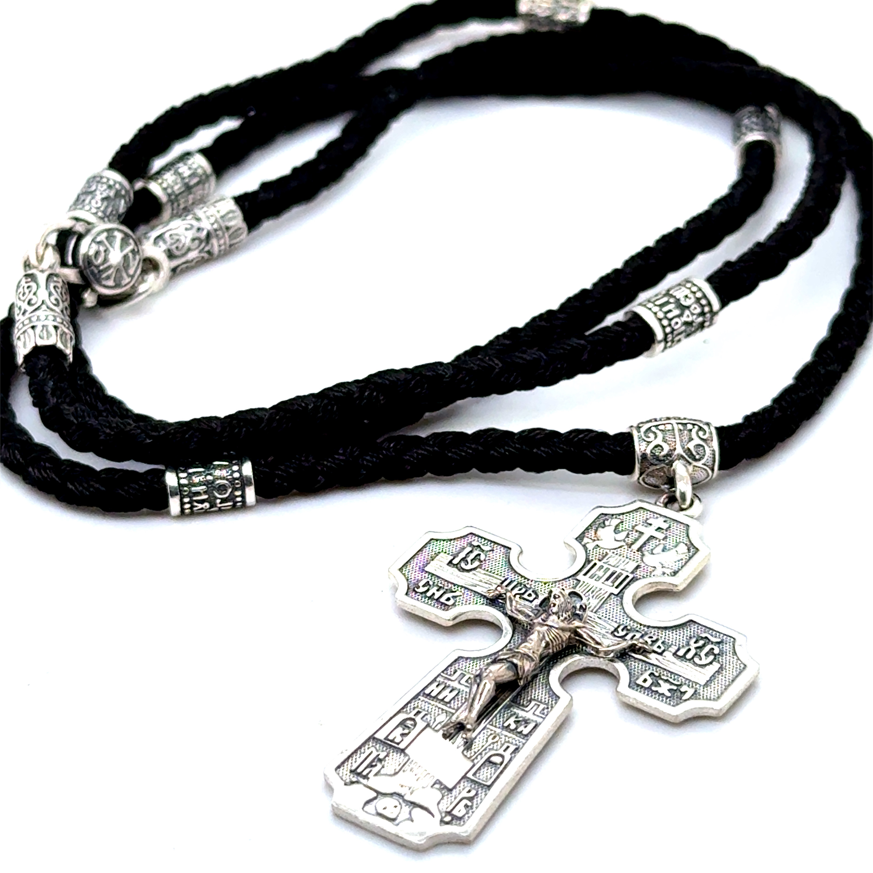 Колие от „Jacklin hugasian“ в сребро с оксидация и копринен конец .