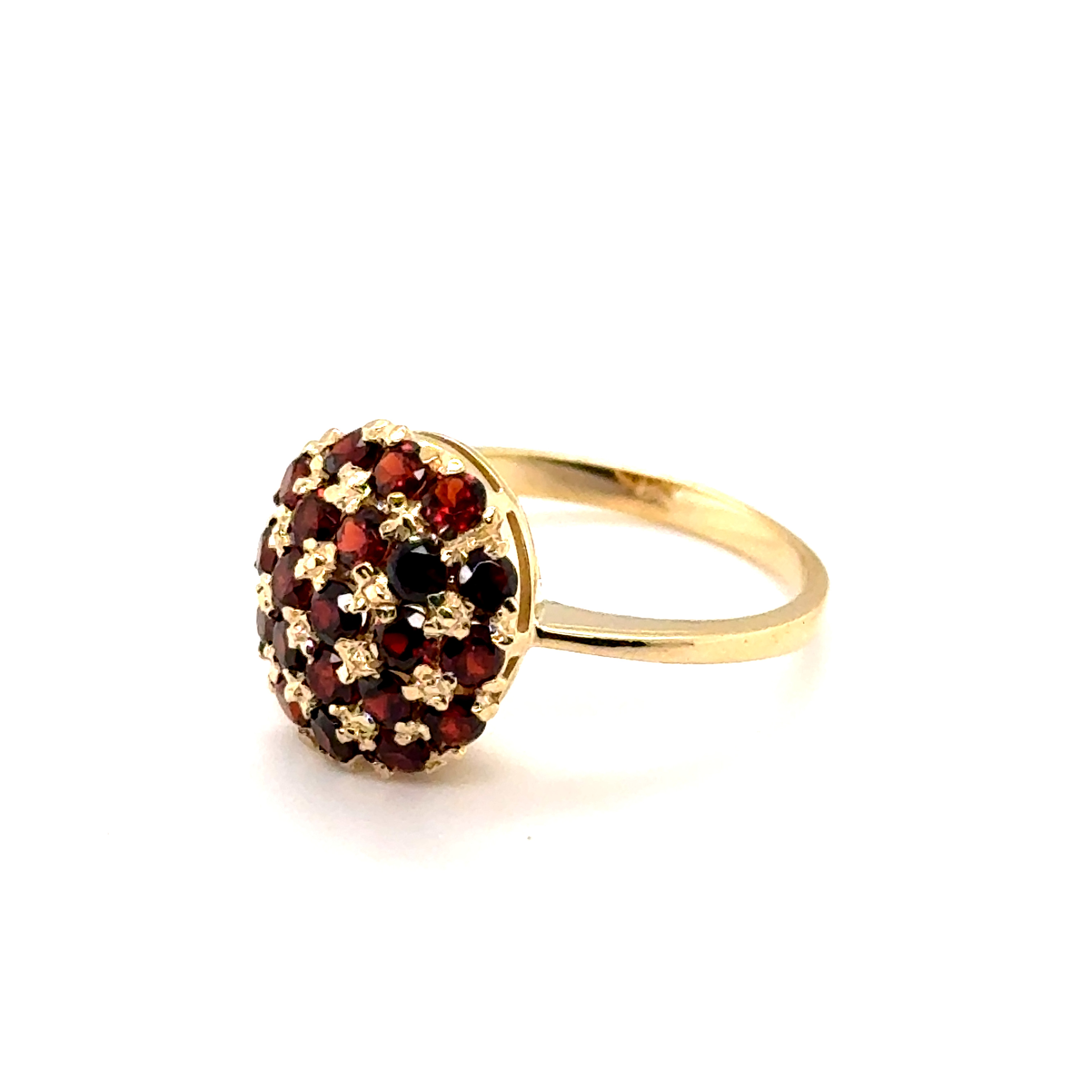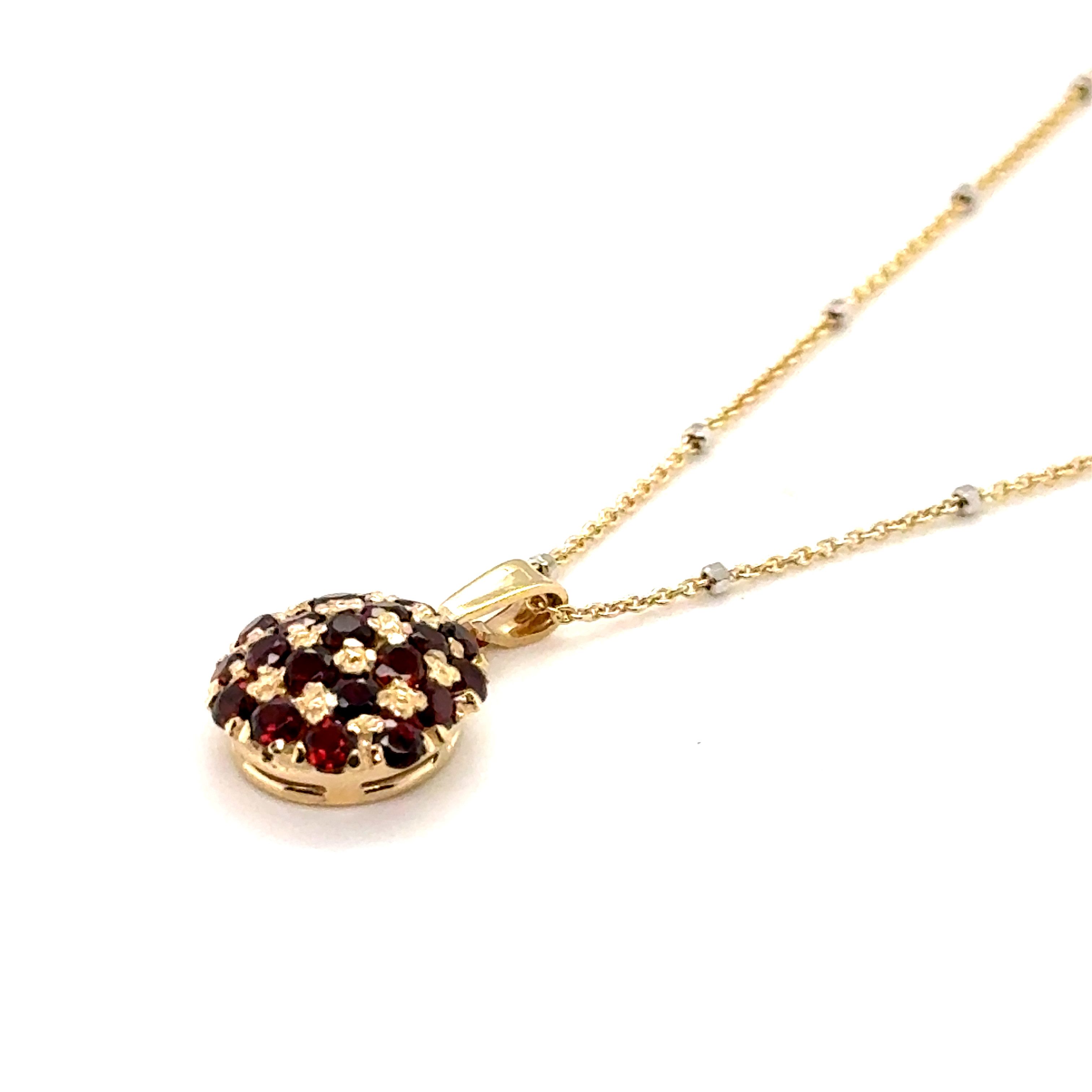 Комплект пръстен, обеци и висулка от “Jacklin hugasian” в жълто злато с гранат