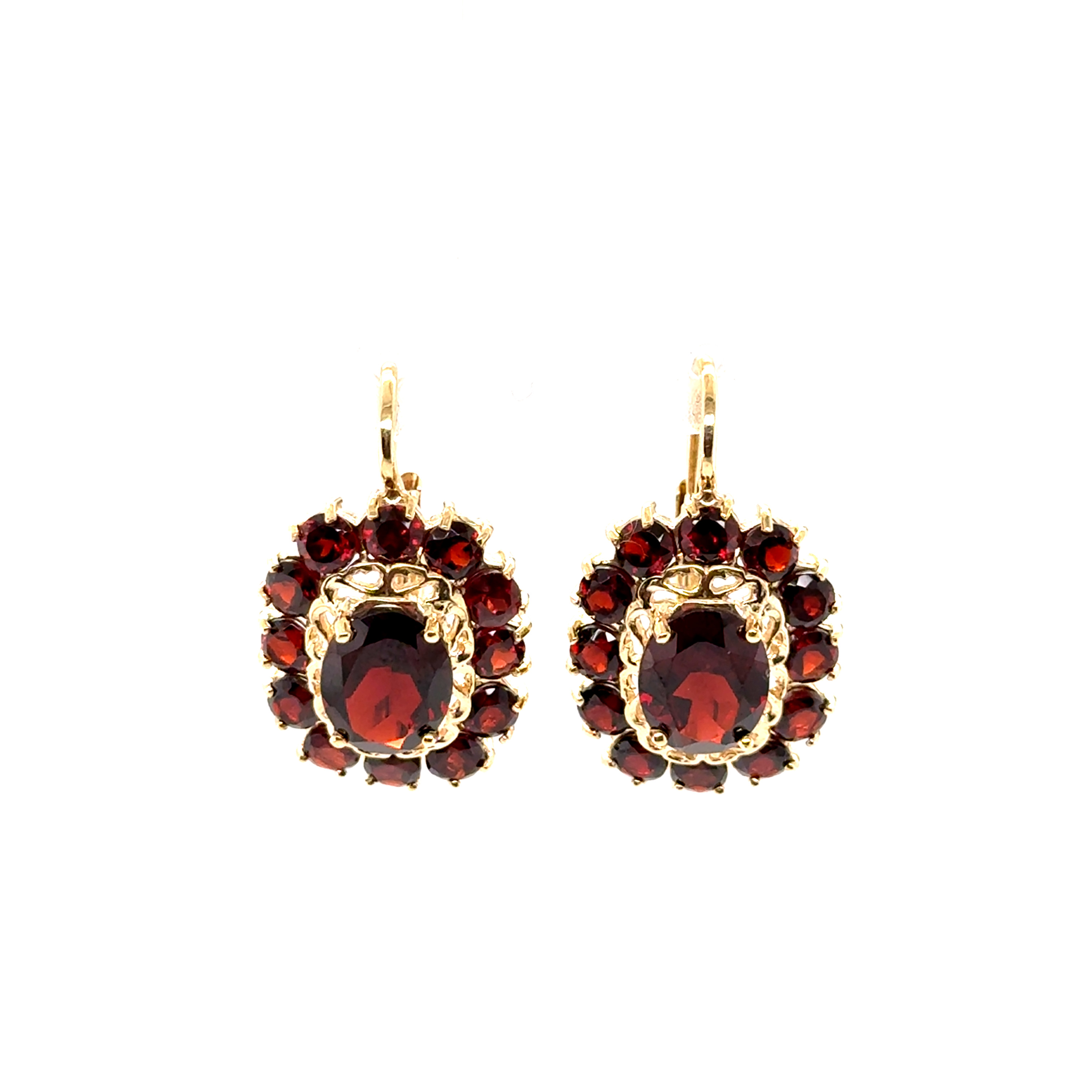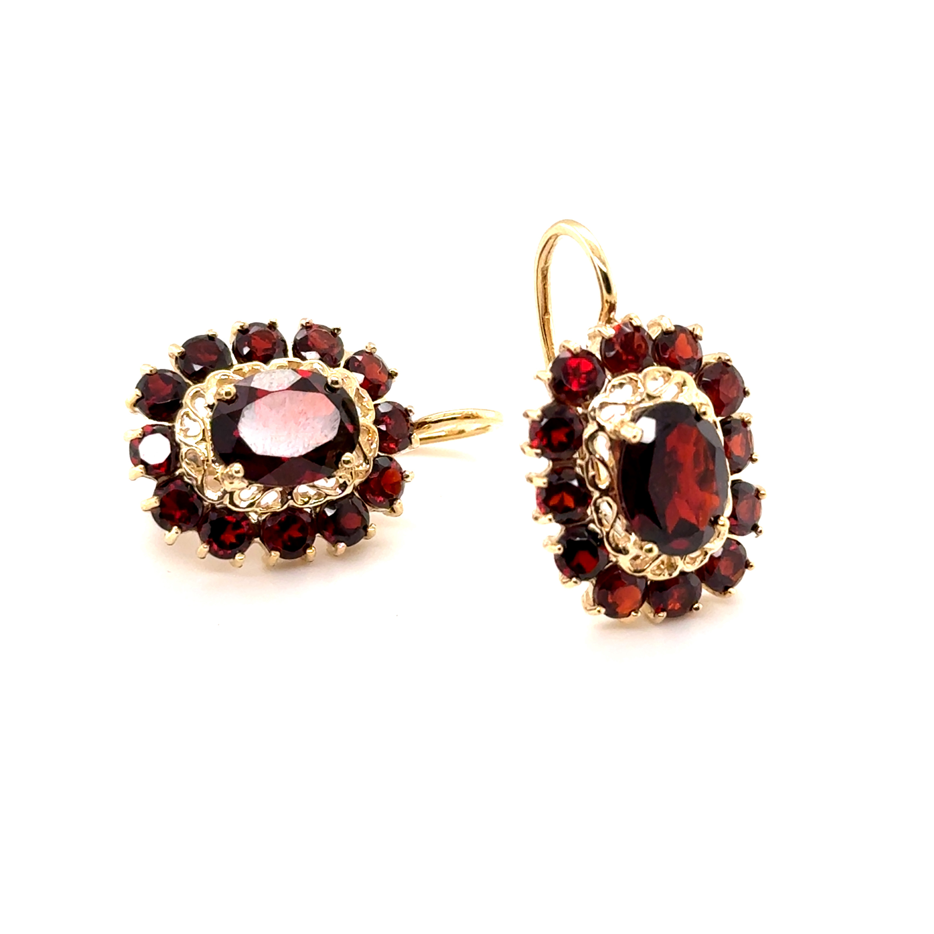 Комплект пръстен и обеци от “Jacklin hugasian” в жълто злато с гранат