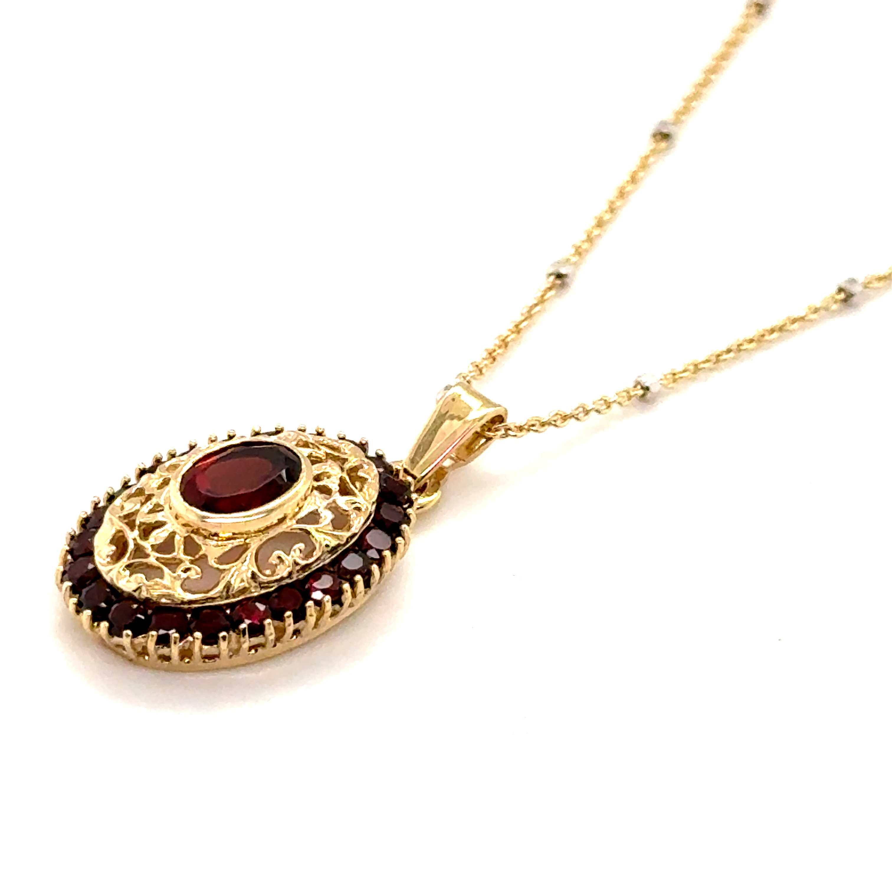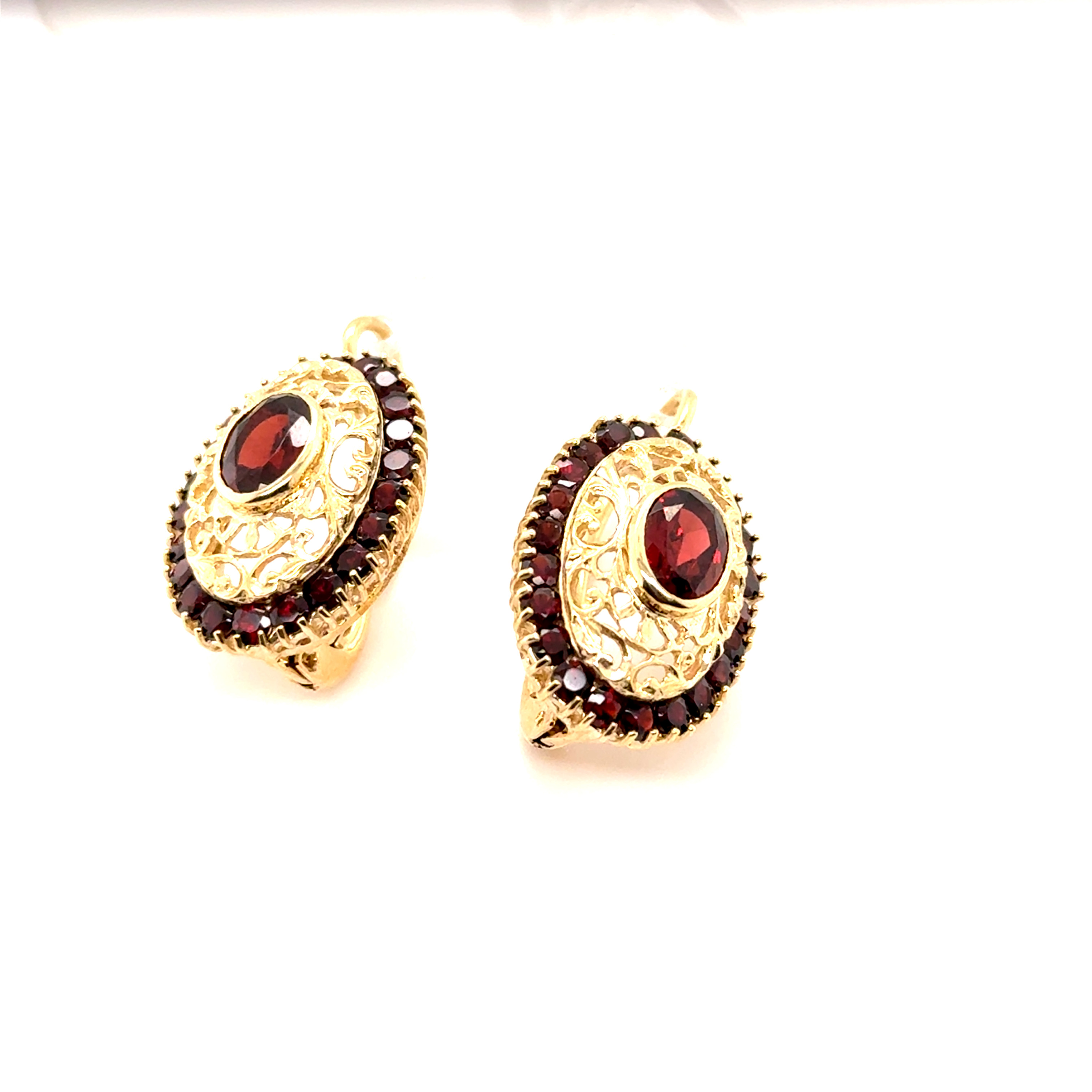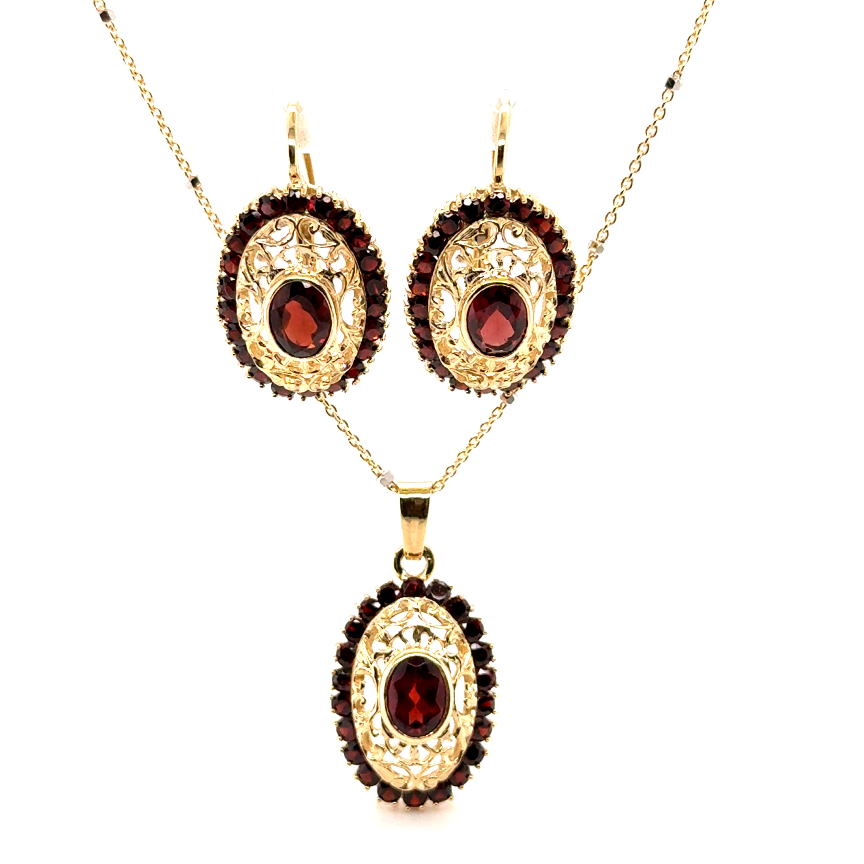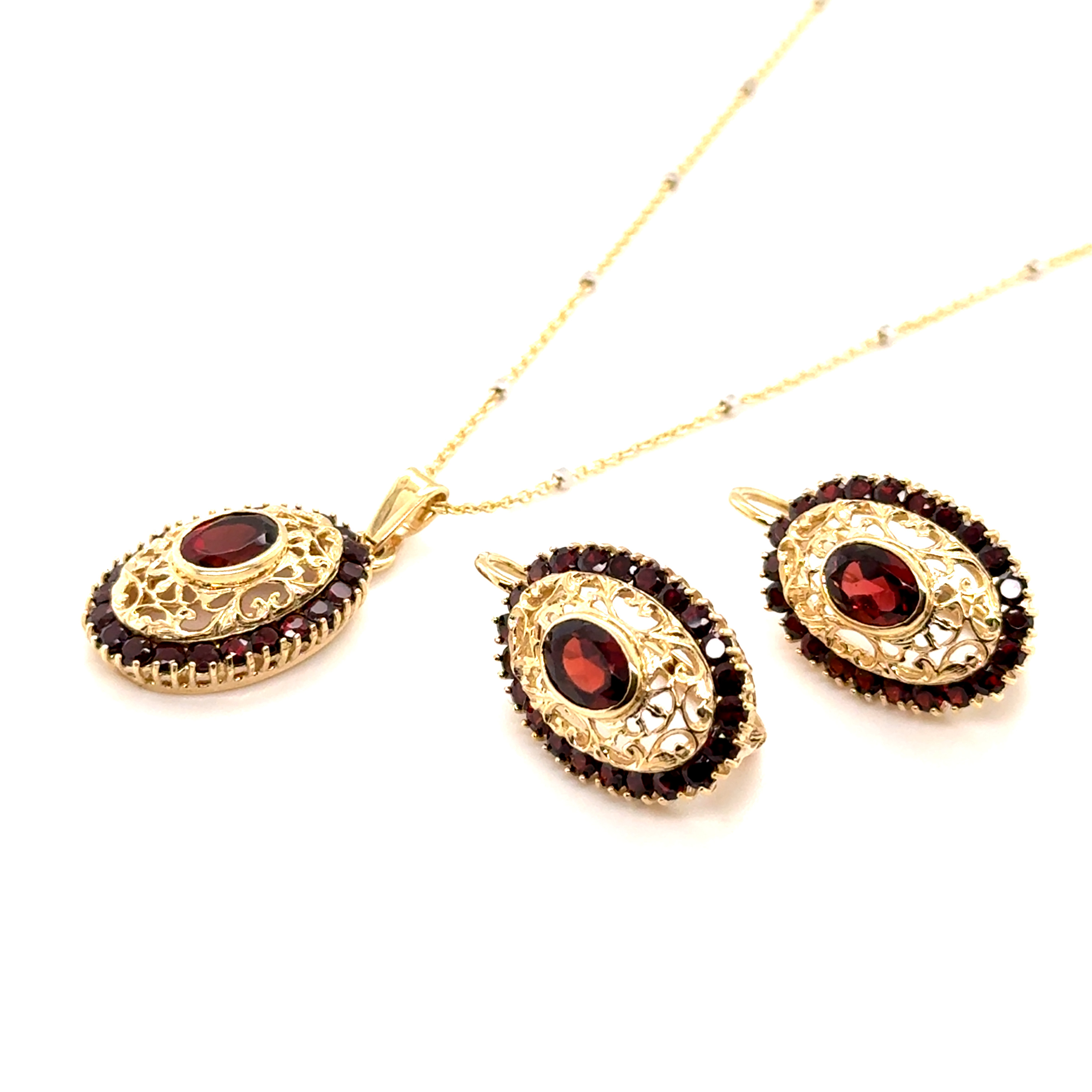 Комплект пръстен и обеци от “Jacklin hugasian” в жълто злато с гранат
