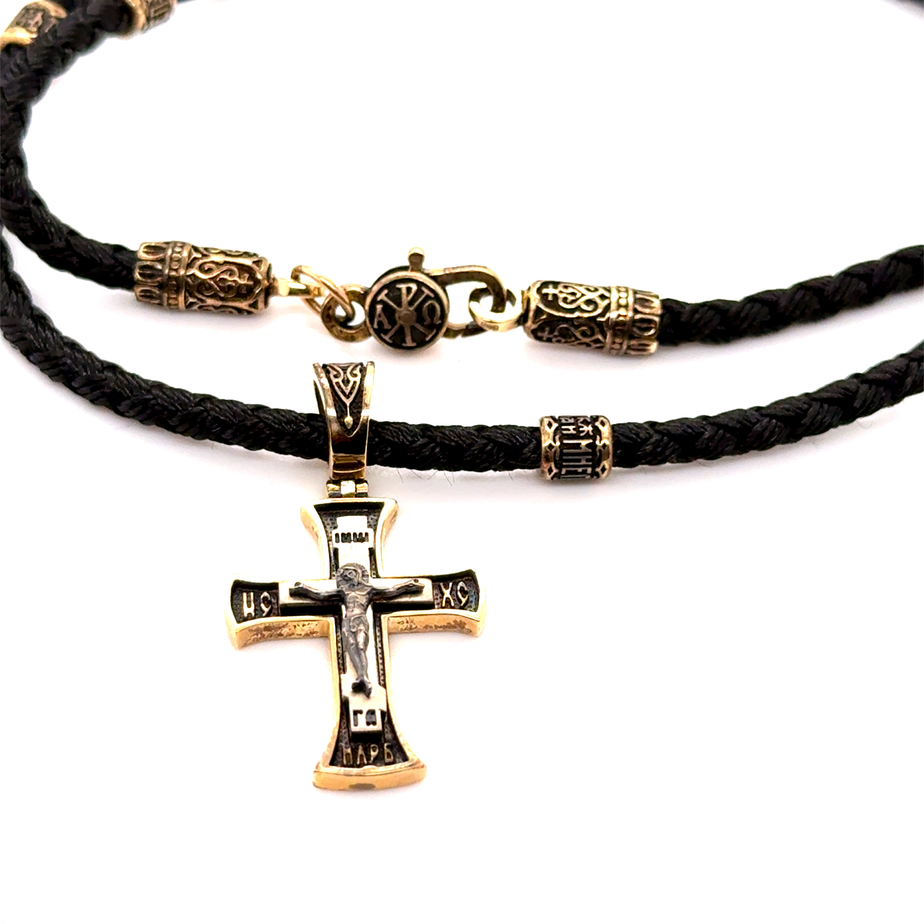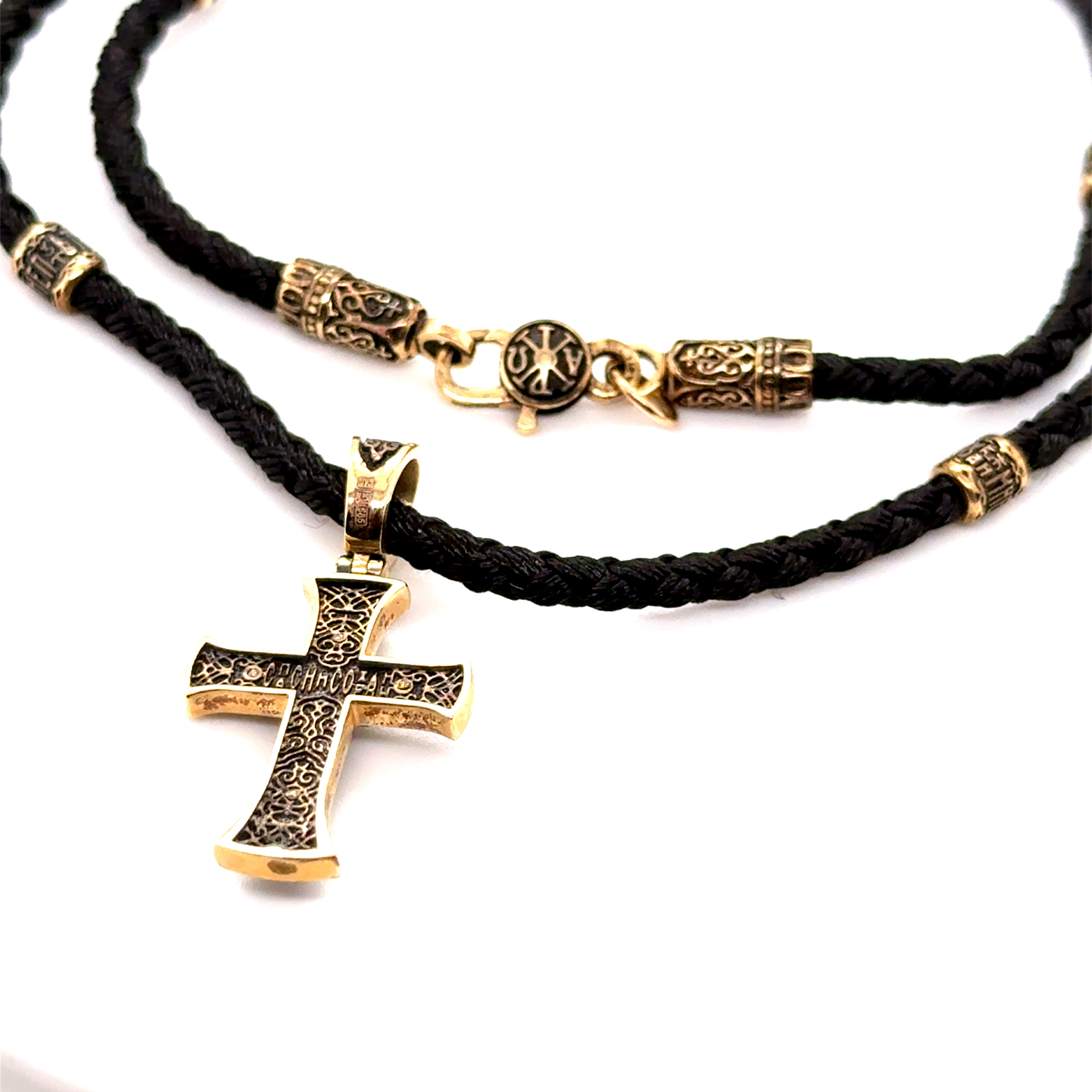 Колие от „Jacklin hugasian“ в злато с оксидация и копринен конец .