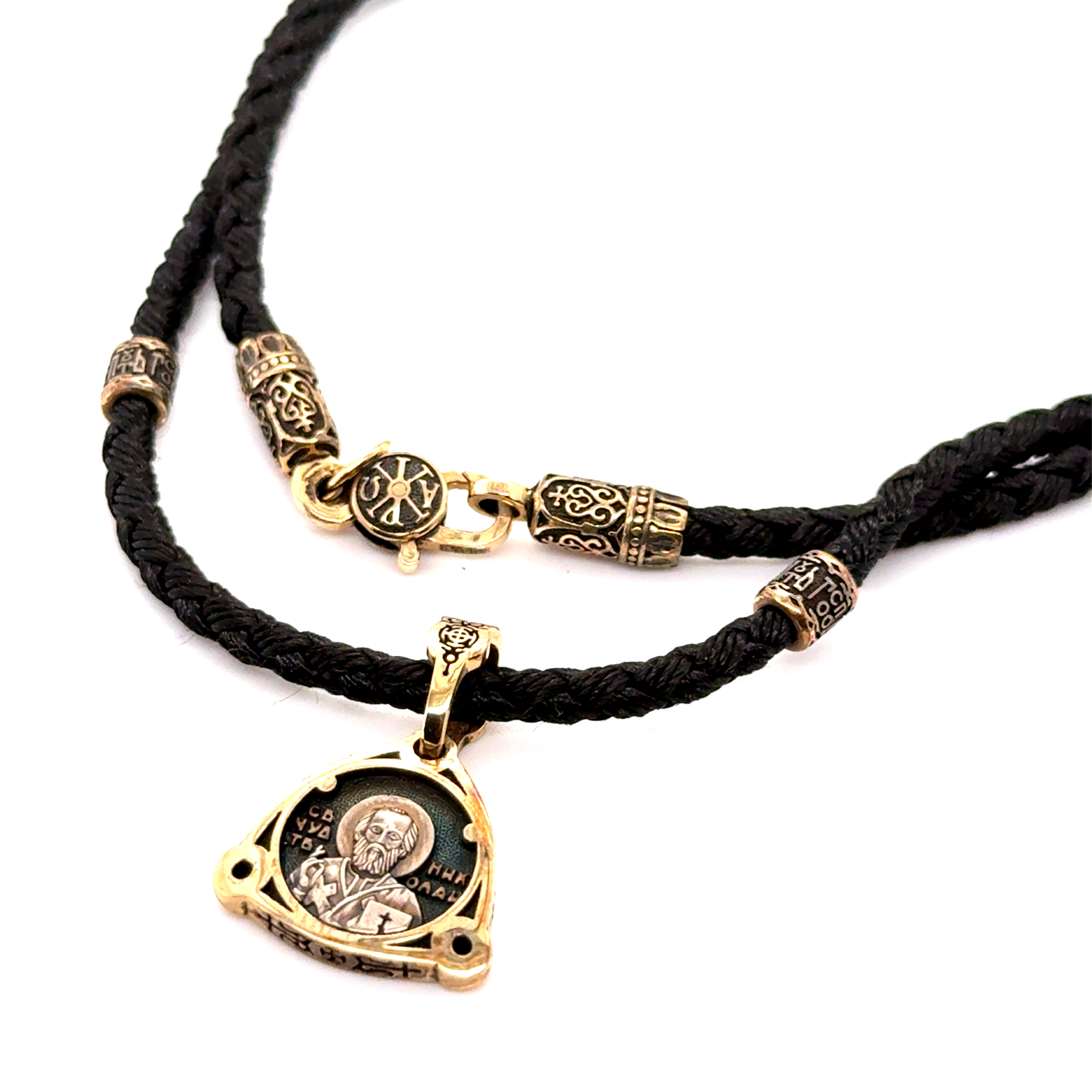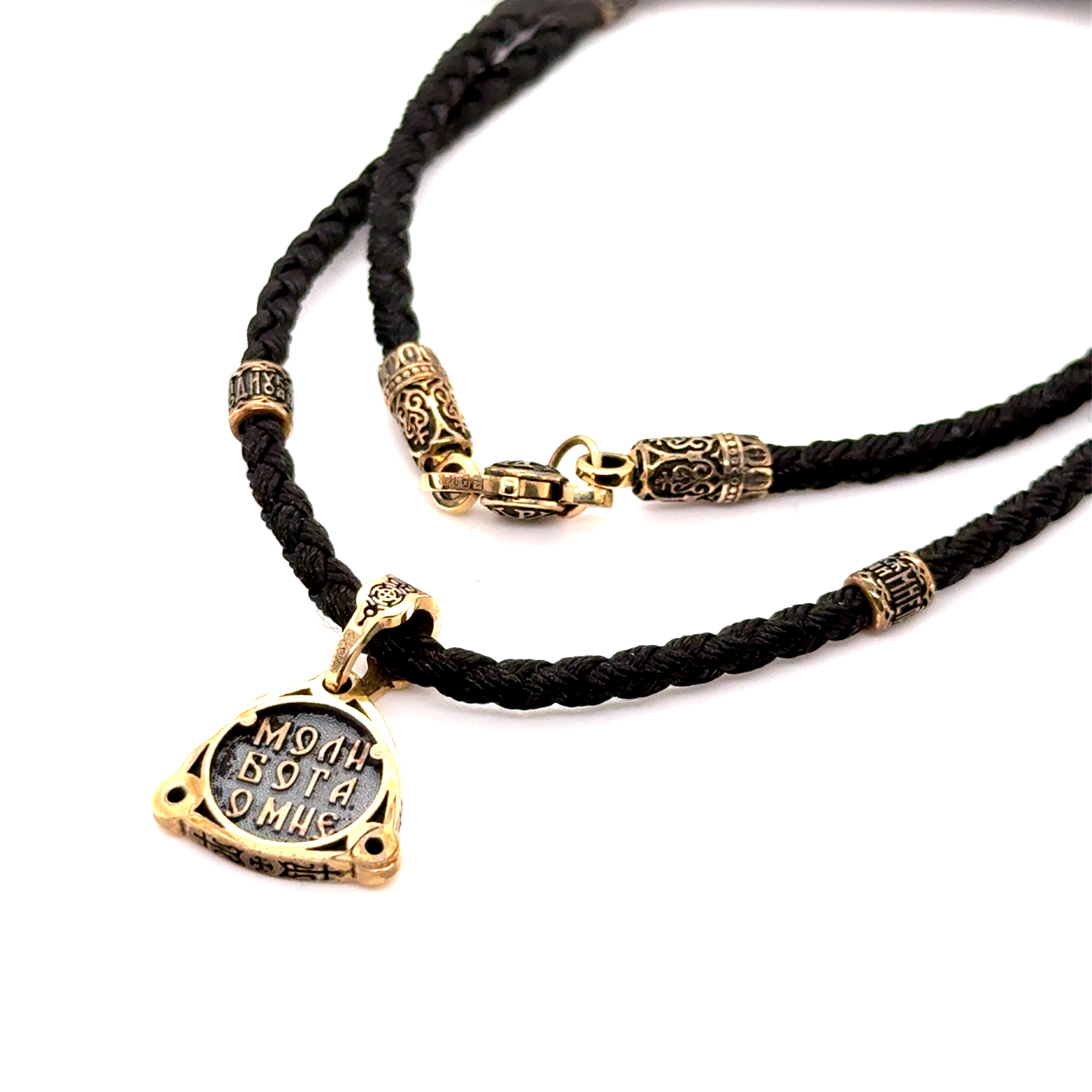 Колие от „Jacklin hugasian“ в злато с оксидация и копринен конец .