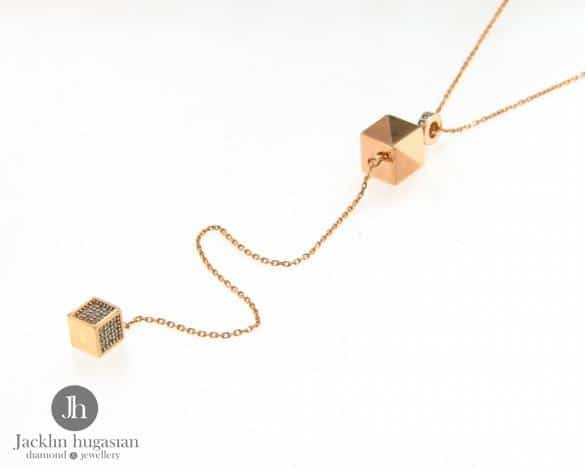 Колие "Квадрат" от "Jacklin hugasian" в розово злато гланц с цирконии. Дължина колие 44 см. Колекция " Yamachi ". Произход Италия