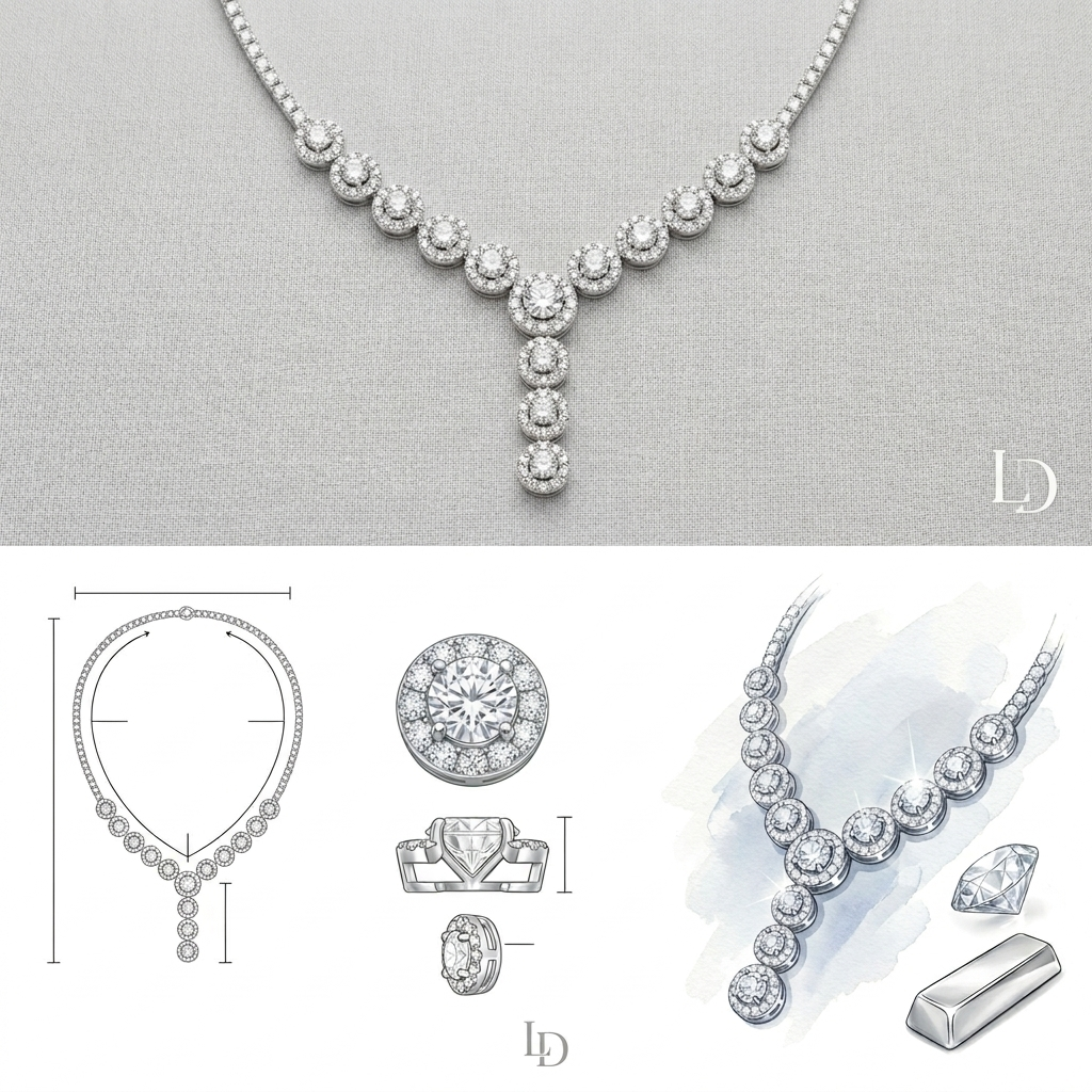 Колие от "Jacklin hugasian" в бяло злато с цирконии.