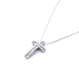 Колие от "Jacklin hugasian" в бяло злато с бял диамант и малки сини диаманти.Дължина 42 см.Колекция "Roberto Bravo".Произход Италия