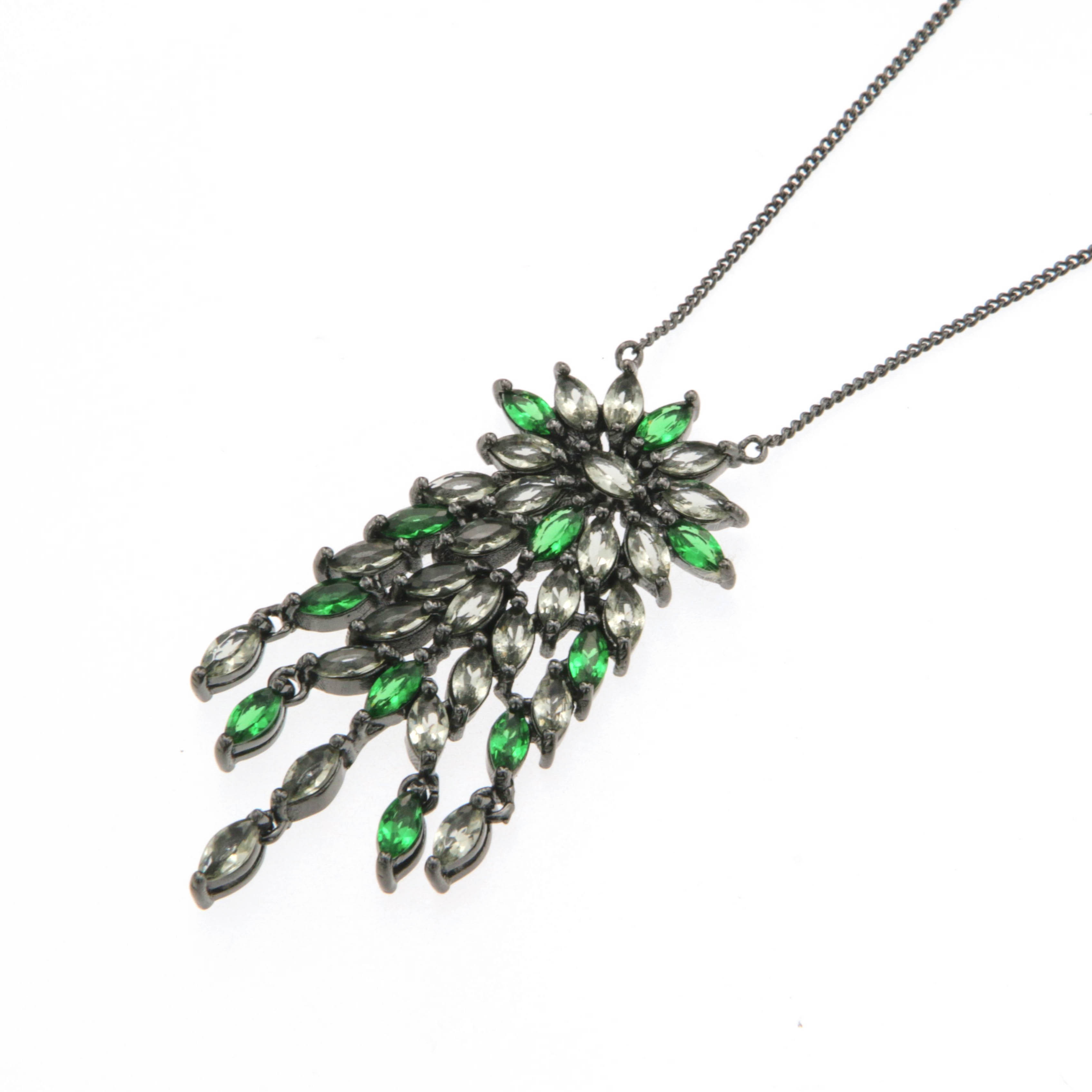 Колие от "Jacklin hugasian" в сребро с черен родий кварц и изумруд. Дължина колие 40 см./ с удължител/.
