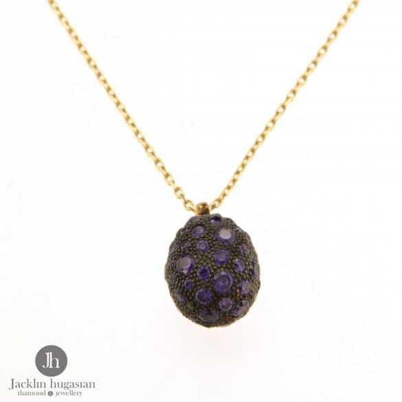 Колие от "Jacklin hugasian" в жълто и черно злато с аметист.